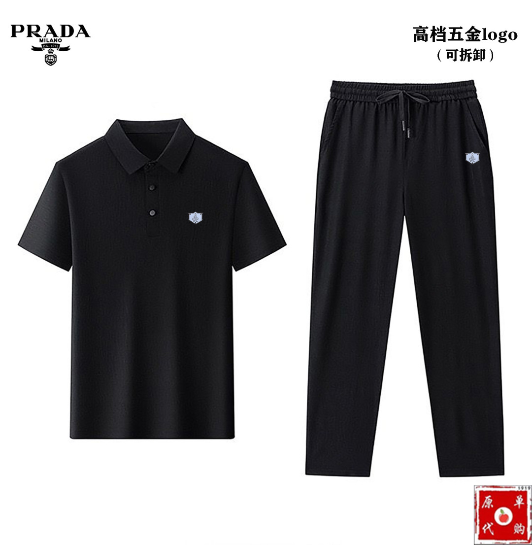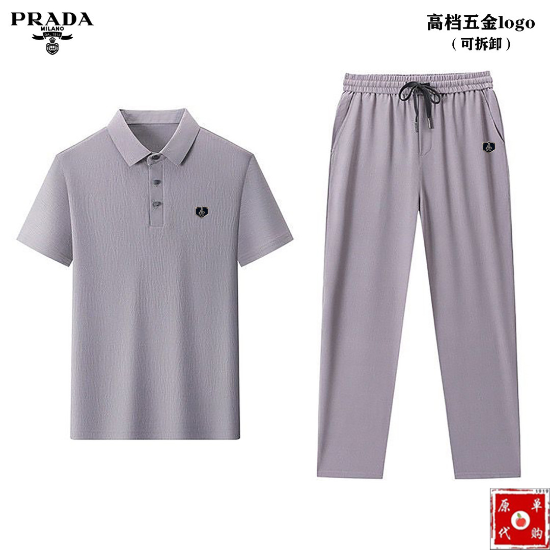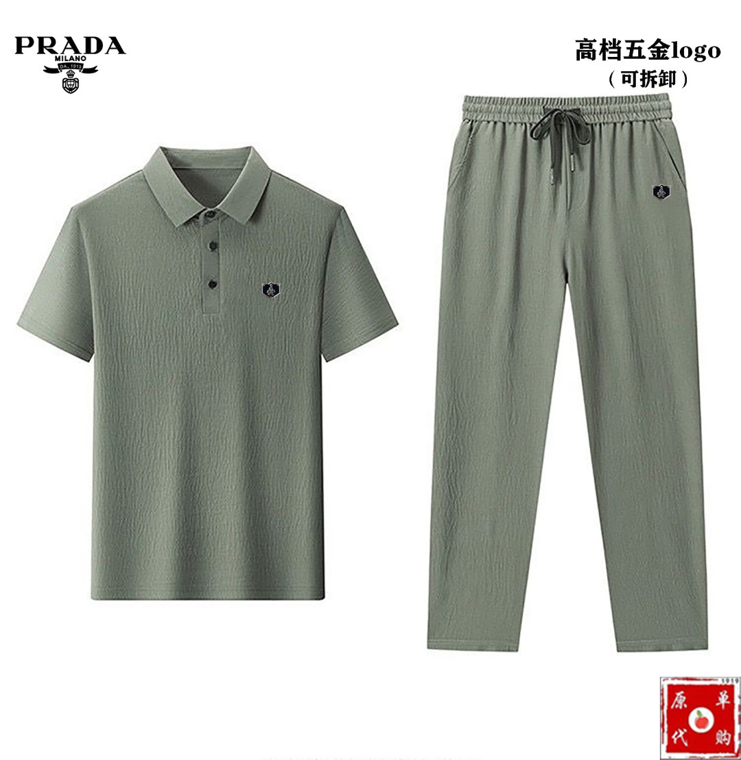 PRADA Summer Set: High-end custom fabric, Milan fashion show design. Soft, breathable, Italian quality. Versatile, fine tailoring. Sizes M-4XL.