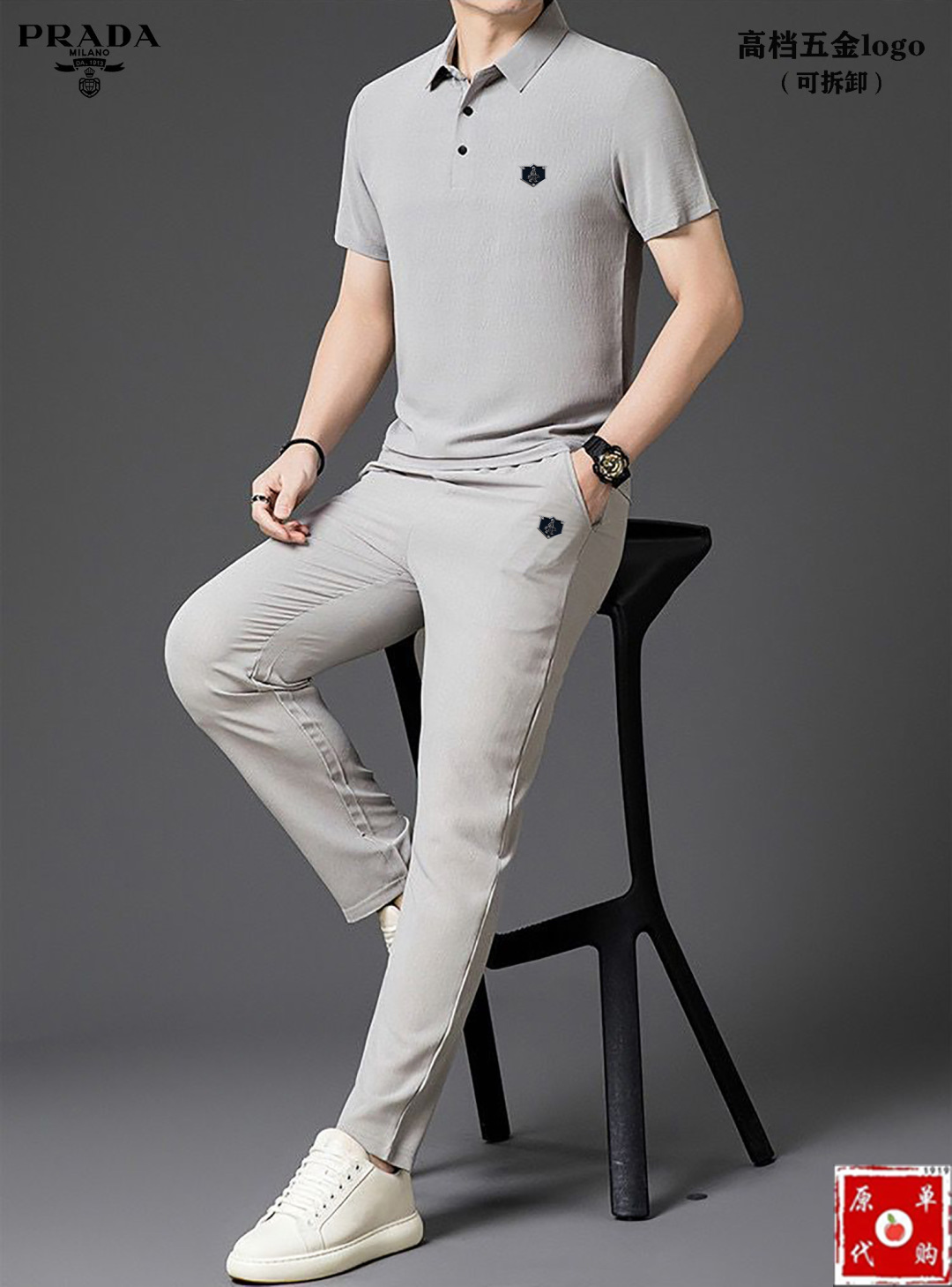Home • Apparel • Suit • Prada Summer New Set: High-end custom fabric, Milan fashion show style. True-to-life shoot, top quality, standard sizes M-4XL (up to 200 lbs). Italian custom texture, versatile design, fine workmanship.