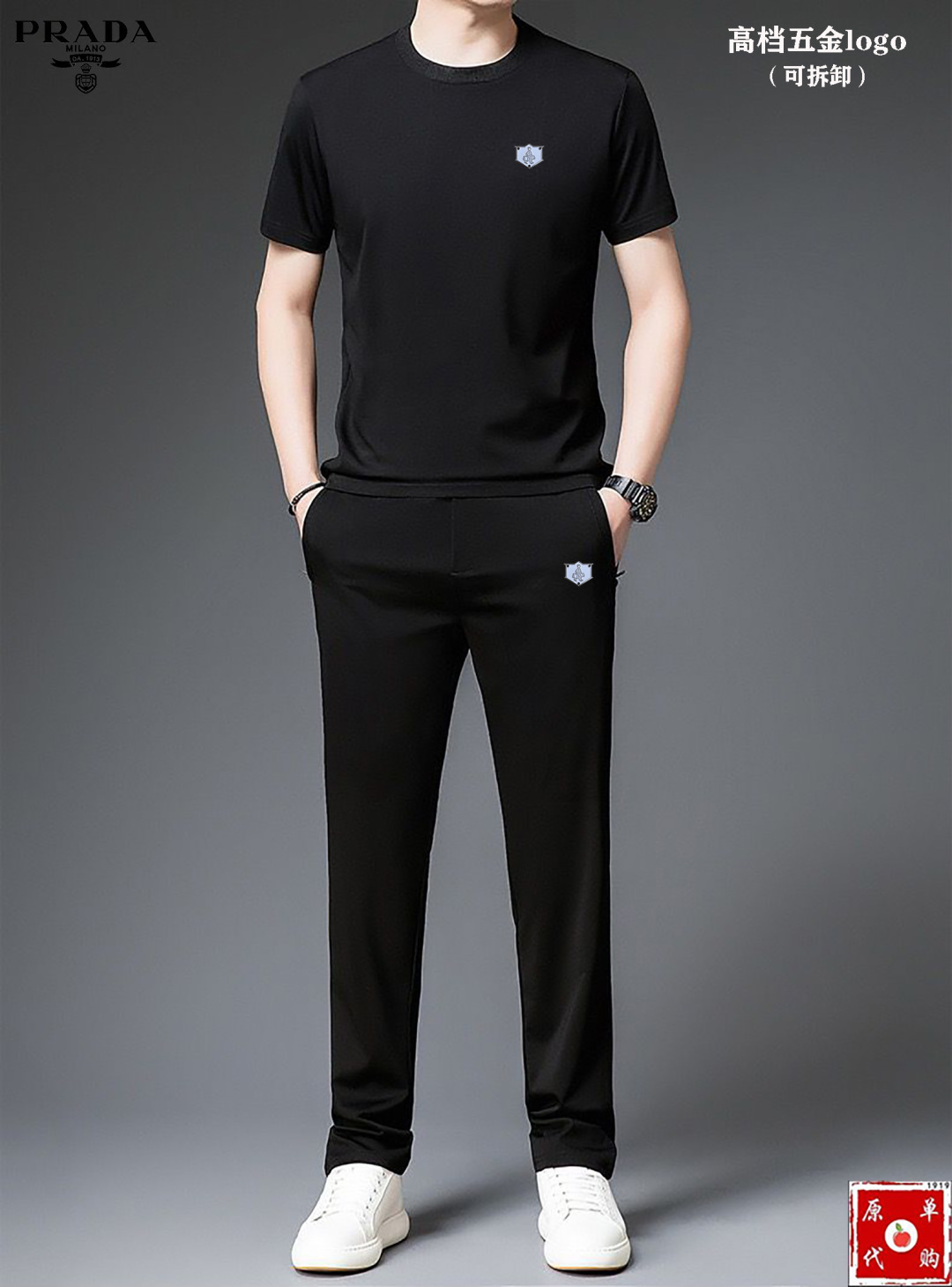 PRADA summer set. High-end custom fabric, Milan runway sync. True photos, premium quality. Sizes M-4XL. Italian imported texture, versatile fit. Comfortable, breathable, luxurious.