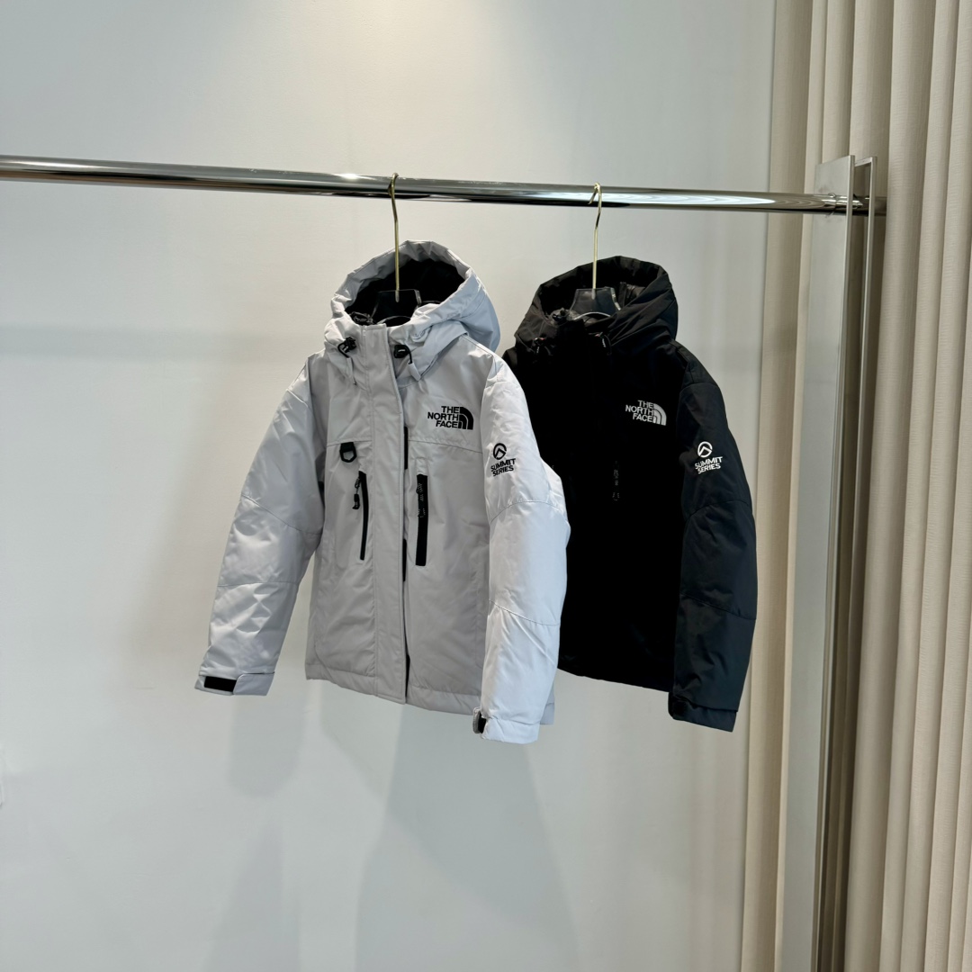 Newly designed The North Face series, using specialized fabric for outdoor mountaineering and ski wear, windproof, waterproof, and filled with 90% white goose down for excellent warmth. The placket features professional hook-and-loop fasteners for easier wearing and removal, making it a very suitable outdoor sports down jacket for children.