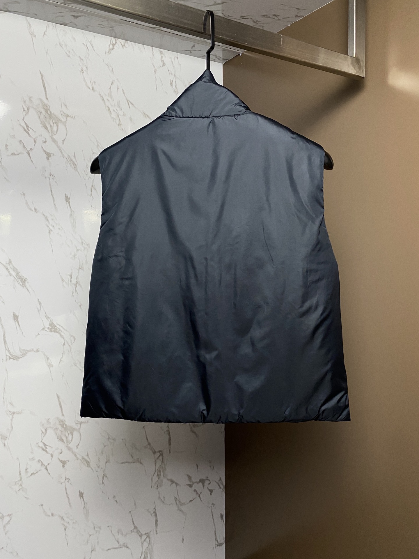 This piece is made from polyester fabric with a moderate sheen. The zipper pull is adorned with a metal M logo to create a sense of luxury. The ends of the drawstring on the hood feature metal components, which is also a highlight.