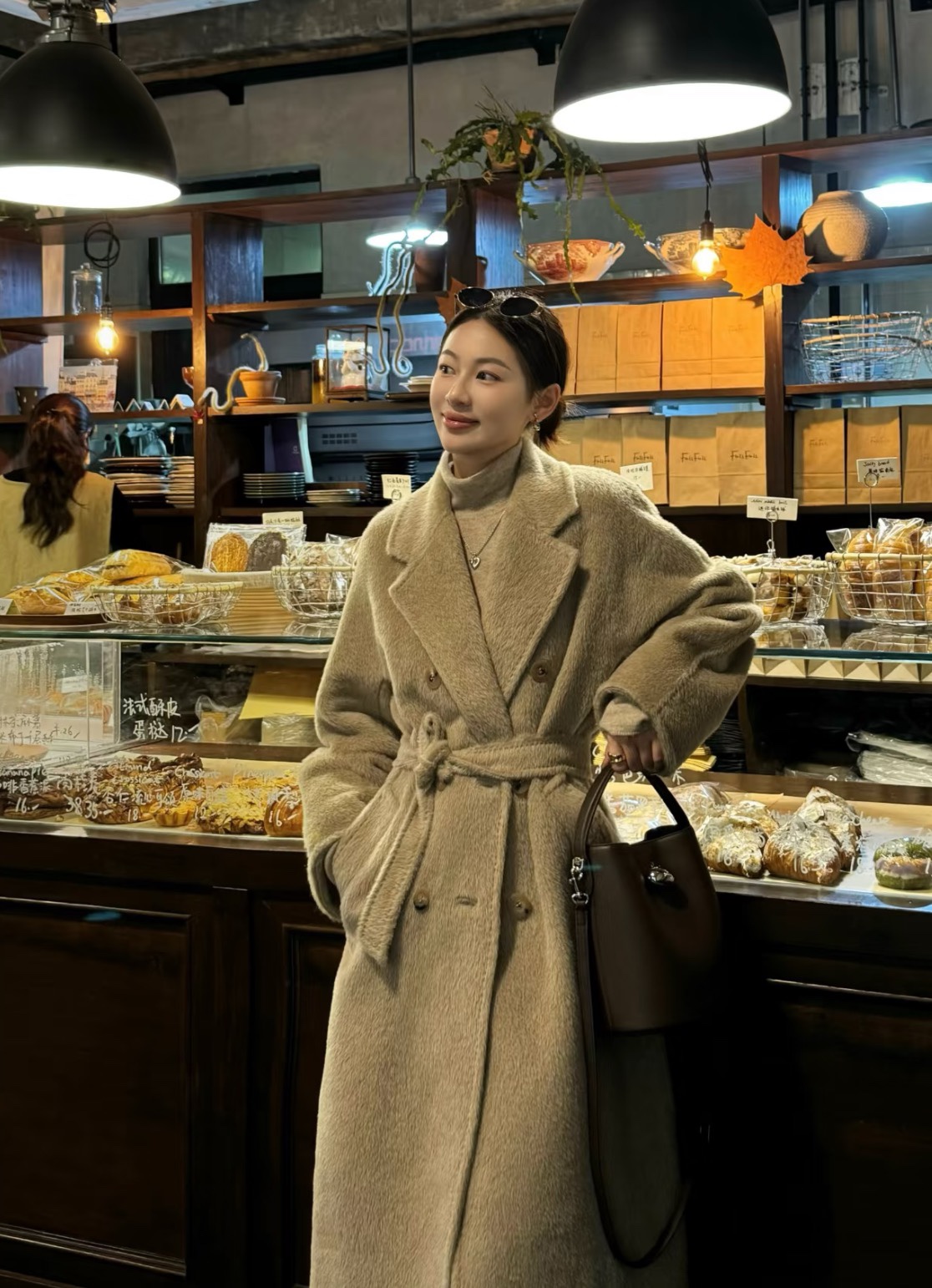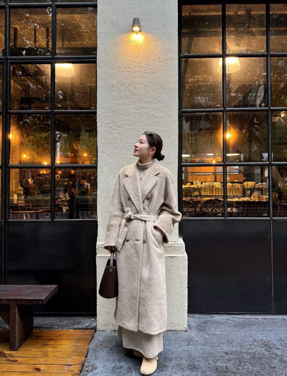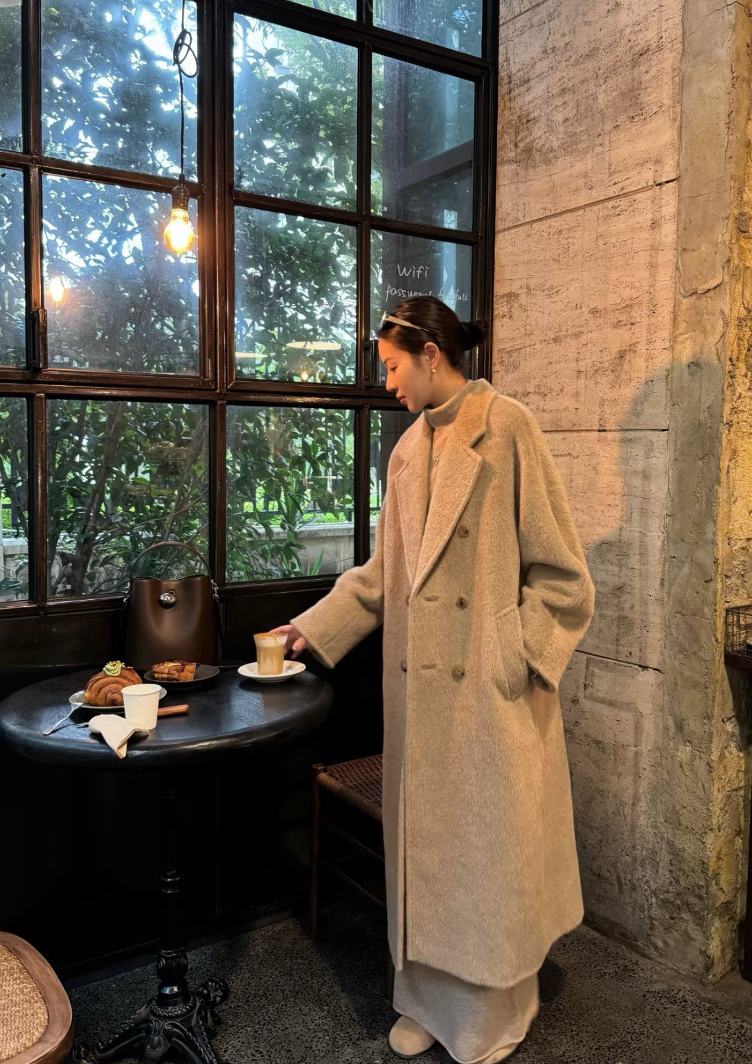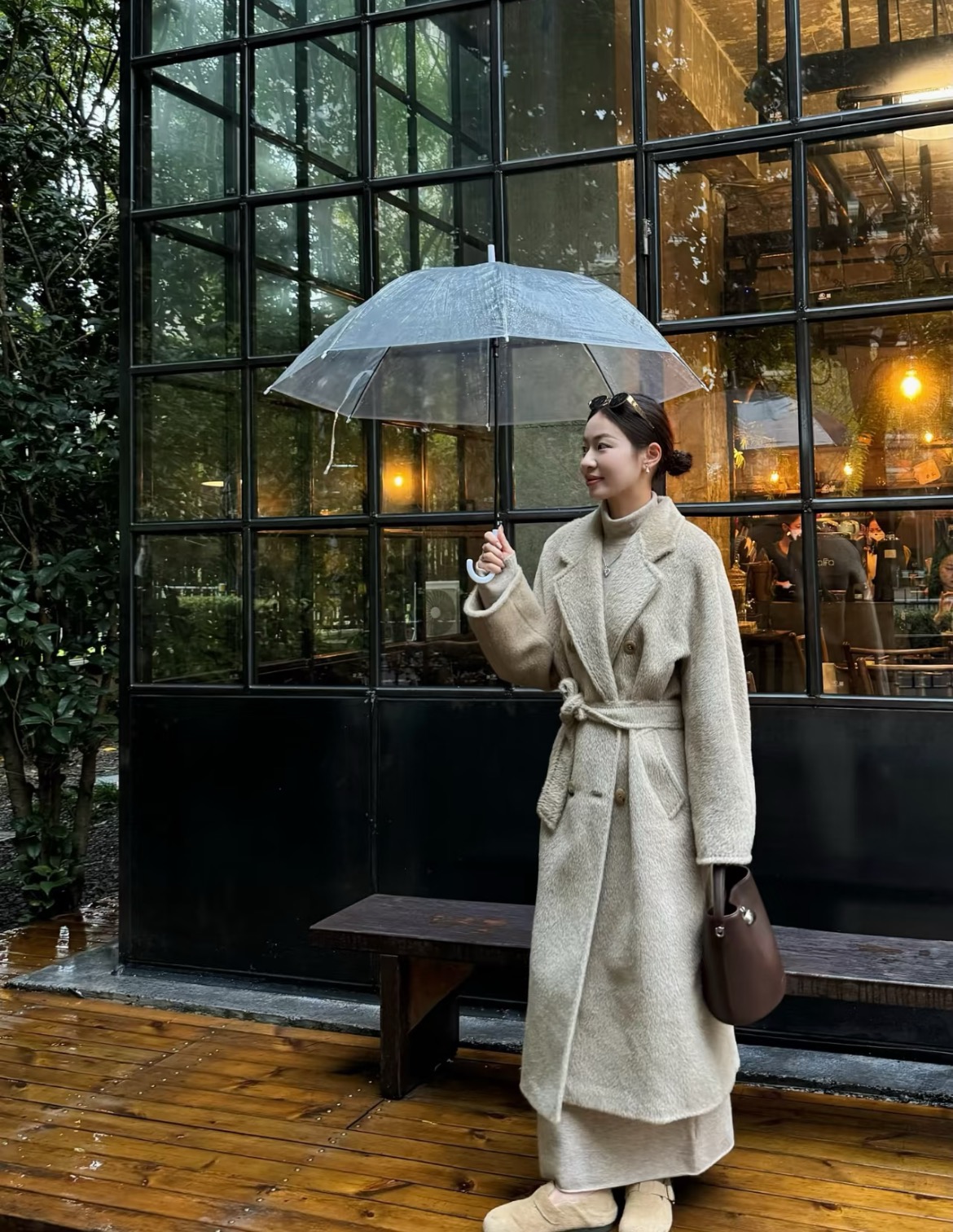 Paired with a same-color dress to highlight an elegant and gentle temperament