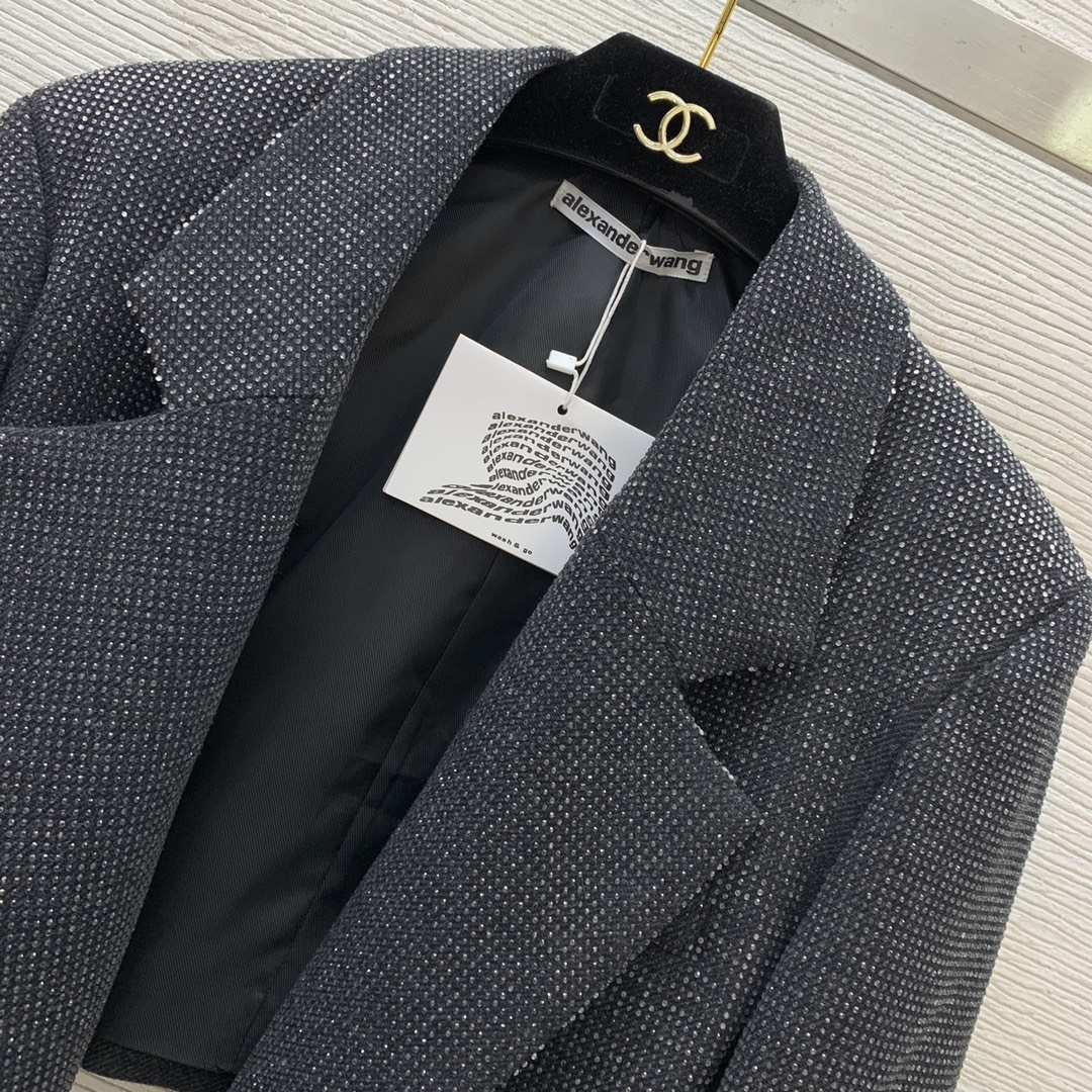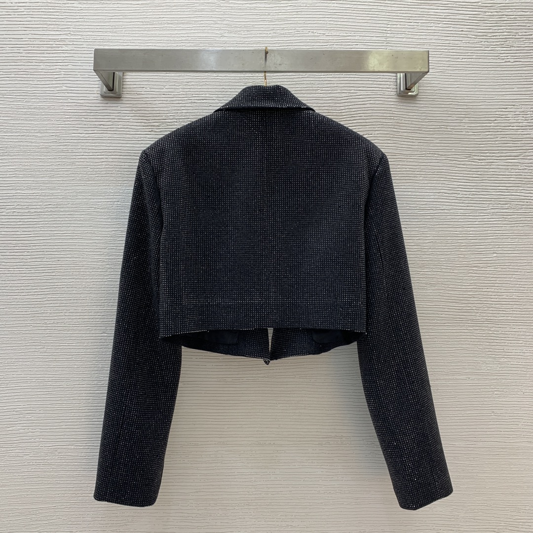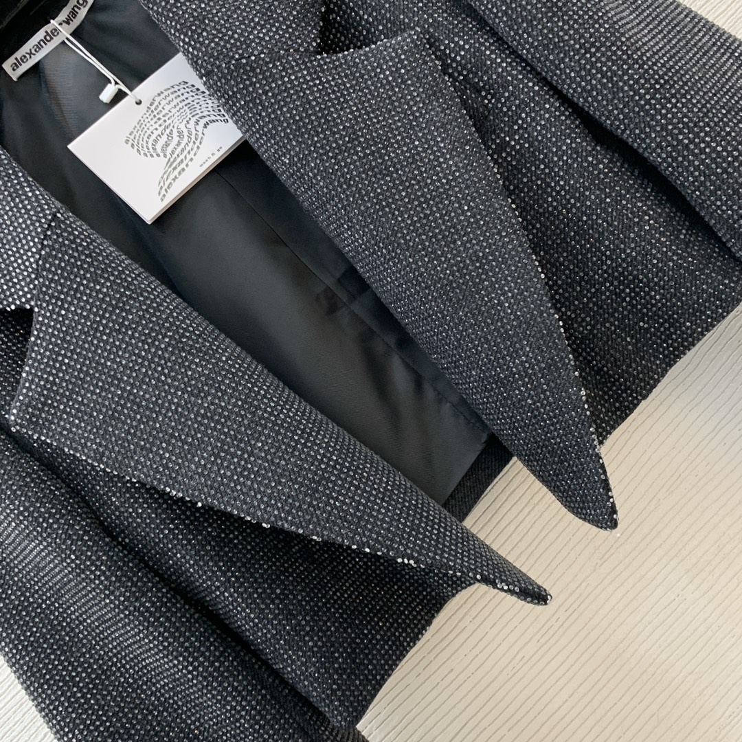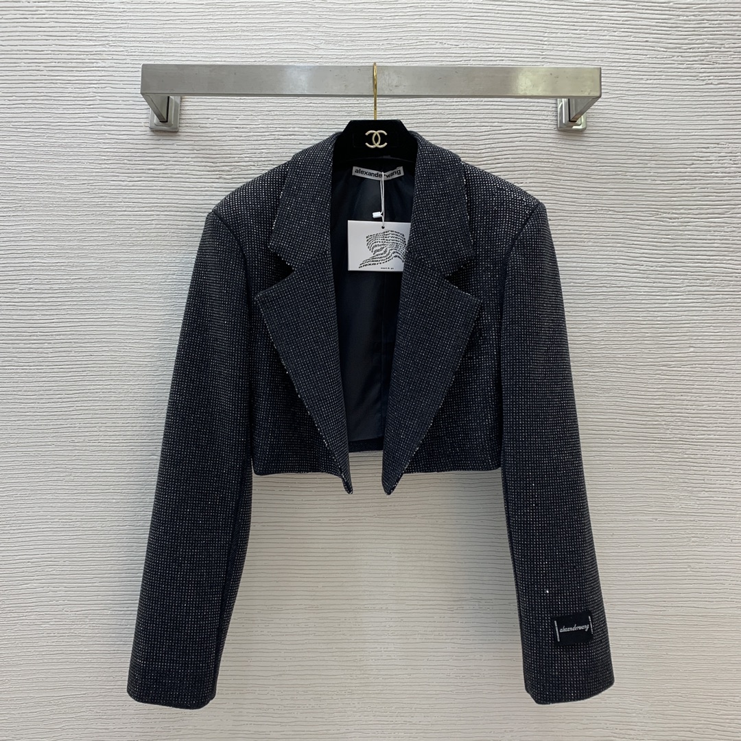Item No. G24122718 Alexander Wan* King's New Arrival Full of sparkling rhinestone cuffs, logo fabric tag decoration, fashionable and versatile short blazer! Gray, SML (Size M: Bust 98, Sleeve Length 60, Front Length 45/39) Blazer
