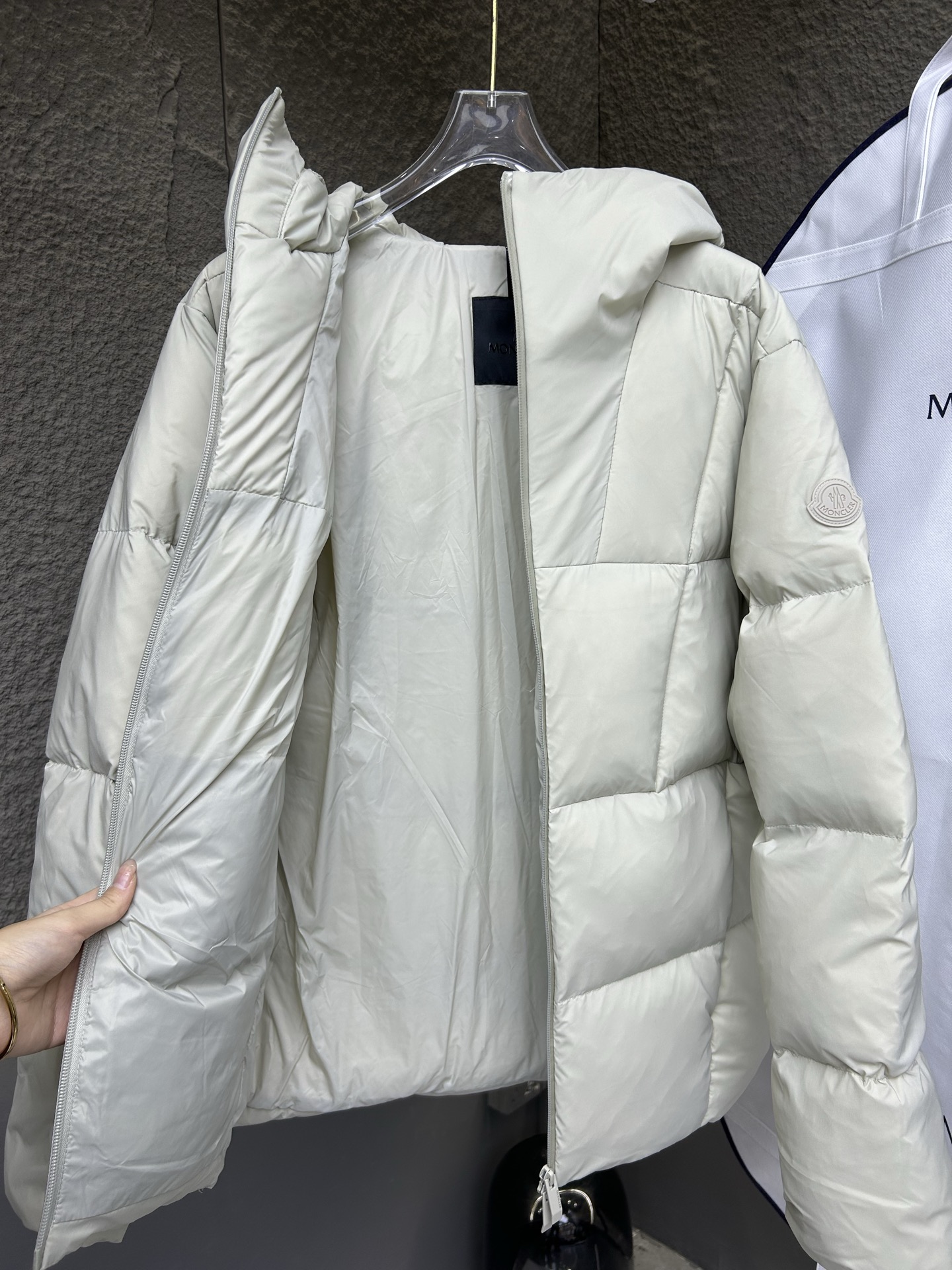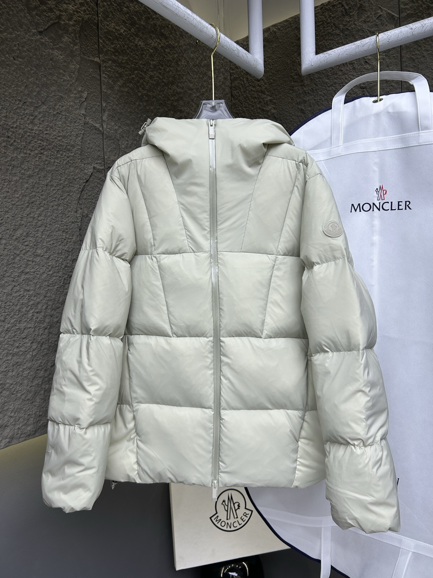 Moncler Montcler winter new Fusain short down jacket design inspiration comes from thrilling racing, echoing the three-dimensional cutting and dynamic structure of the racing driver's uniform. Construct a warm barrier with diamond quilting, lightweight fabric but full of fluffy warmth. The silhouette is sharp and not bloated, the hood design adds casualness, made of quilted nylon fabric, with excellent warmth and protection. It is both a textured armor against the cold wind during commuting and a fashion weapon for creating minimalist high-end style on the street, allowing you to grasp the dual elegance of temperature and style with just one down jacket in the harsh winter. Short design, paired with reflective zipper, highlights modern style.