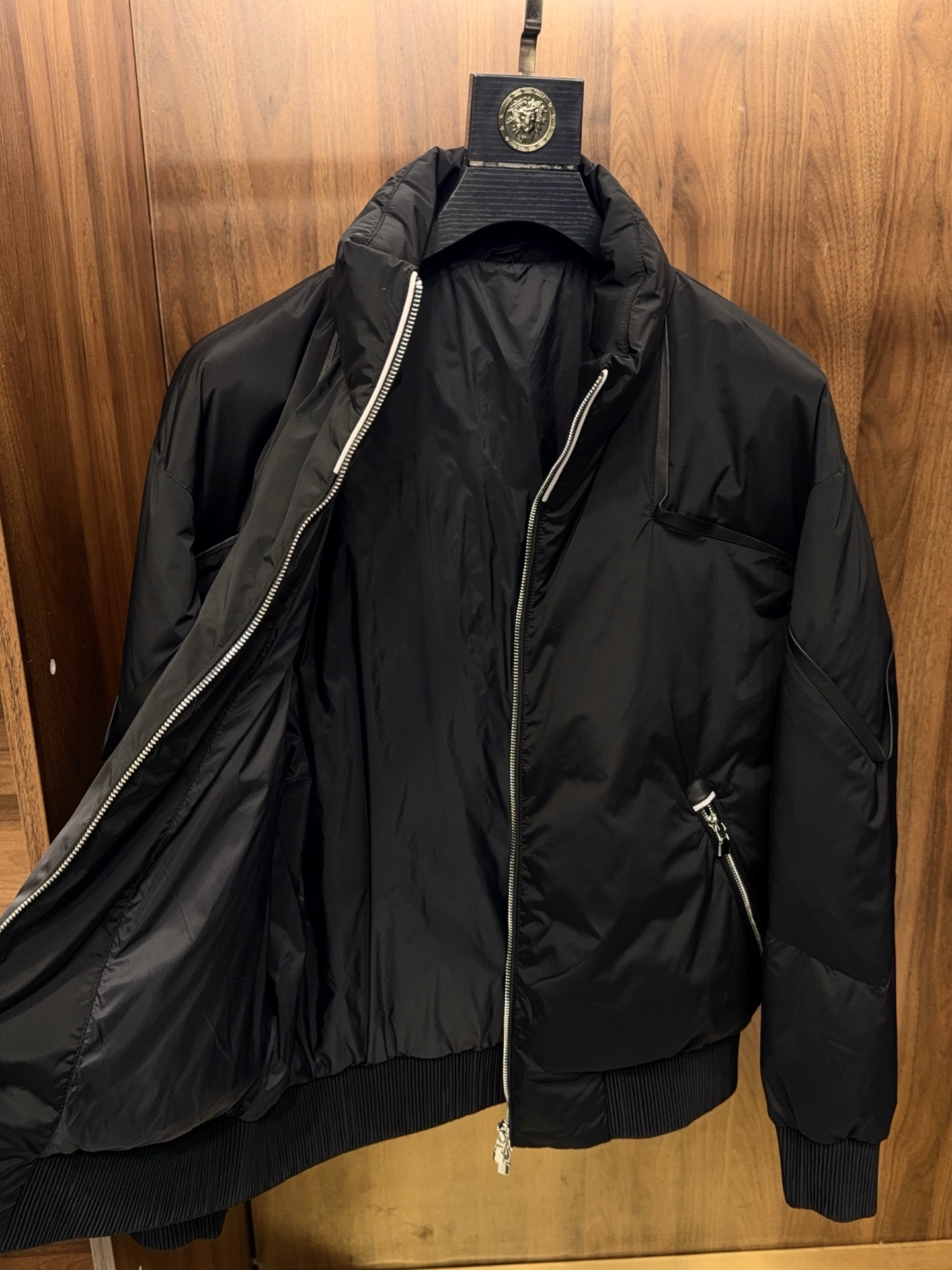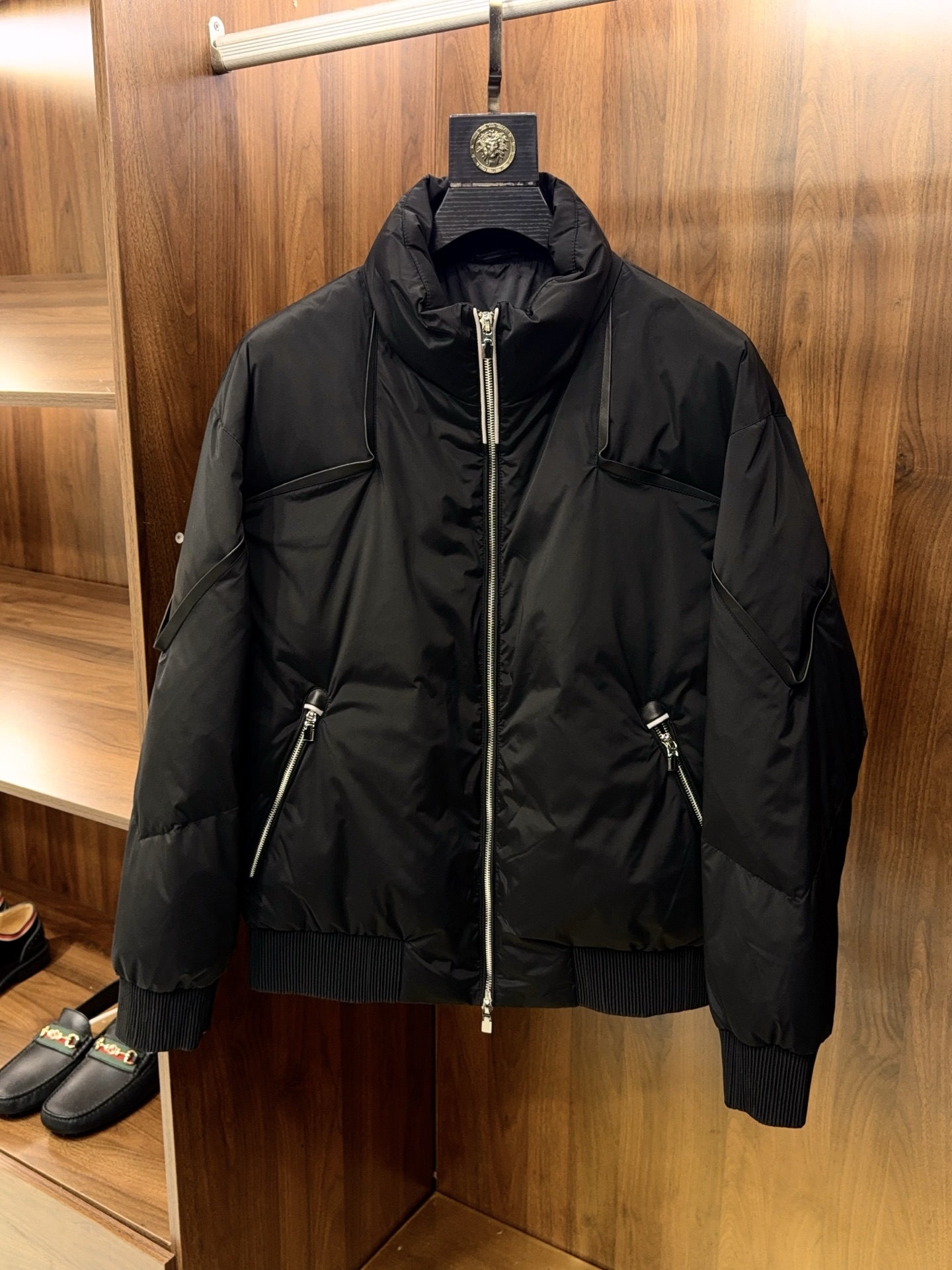 When Italian luxury craftsmanship meets the essential need for winter warmth, this BV jacket-style down jacket, featuring selected 90% white goose down and intricate lamb leather trim detailing, breaks away from the traditional bulky stereotype of down jackets. It creates an essential winter item for high-end men, combining lightweight texture with style and presence.