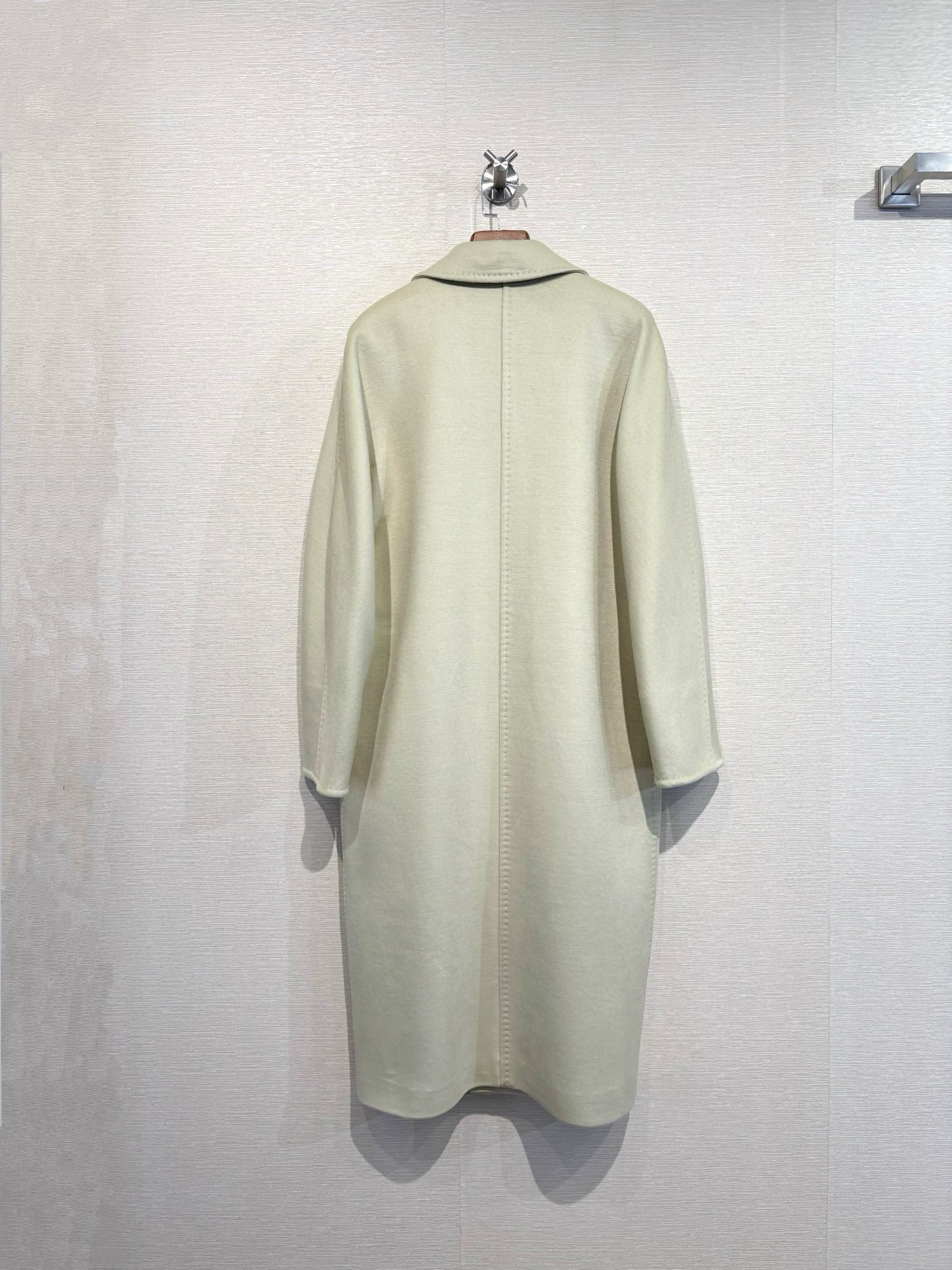 Counter-level 101801, pay attention to the collar size and curve. Hangs freely to present a cocoon-shaped silhouette. Placket is concave, Z-stitch buttons, hem with W-shaped edging, made with special寰宇 machinery. Wrapped rope buttons, surface-mounted buttons, details are perfect! Superfine merino wool fabric, soft and comfortable touch!