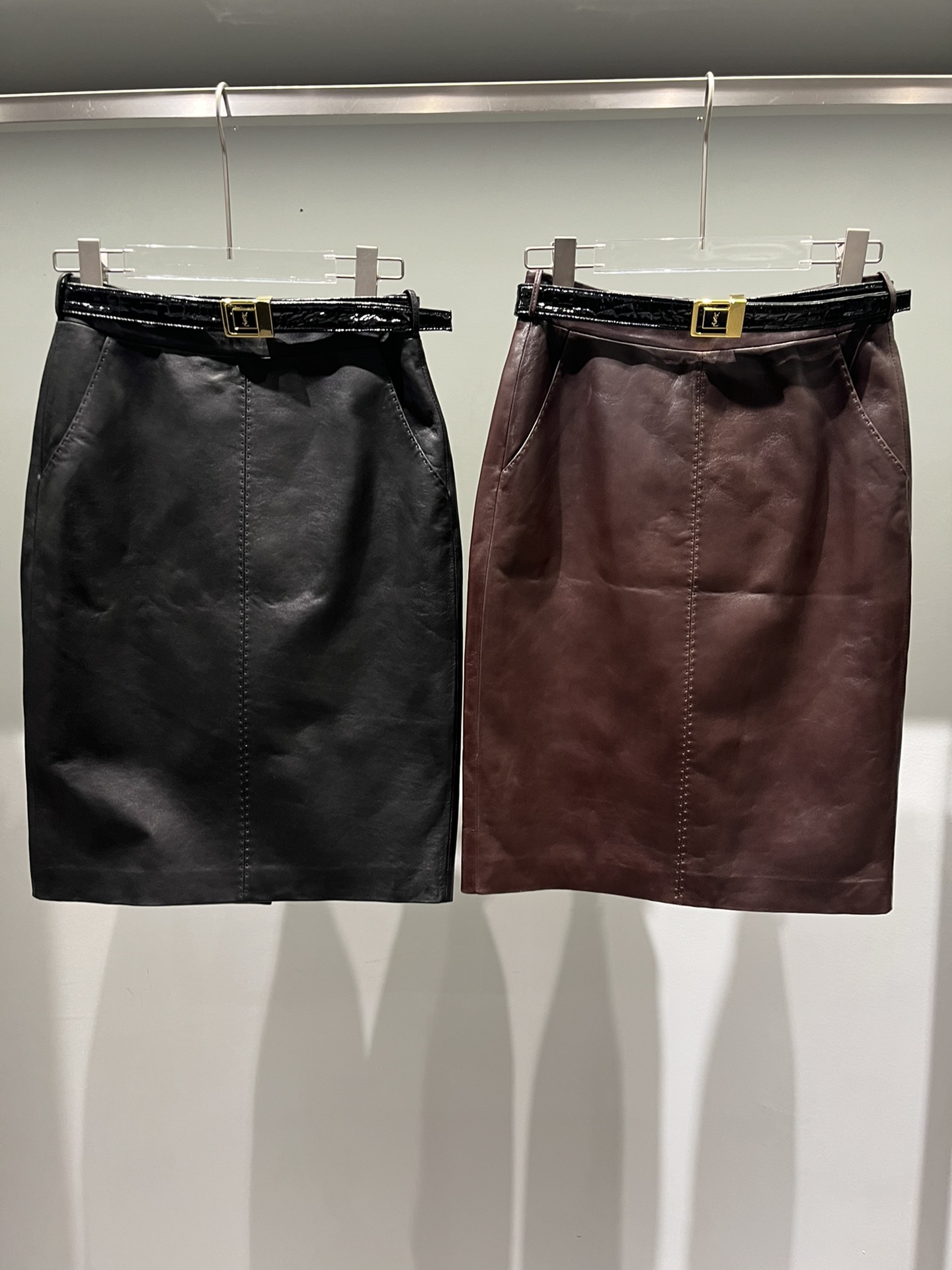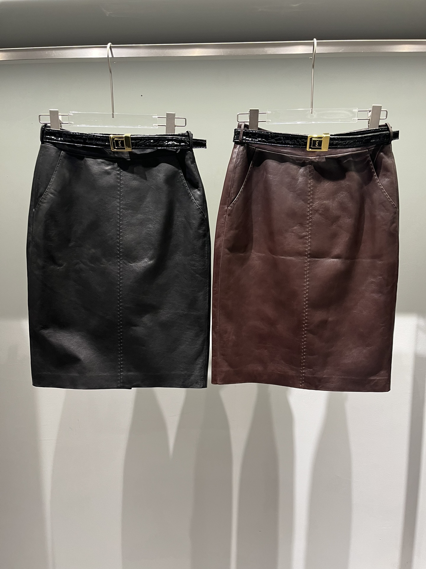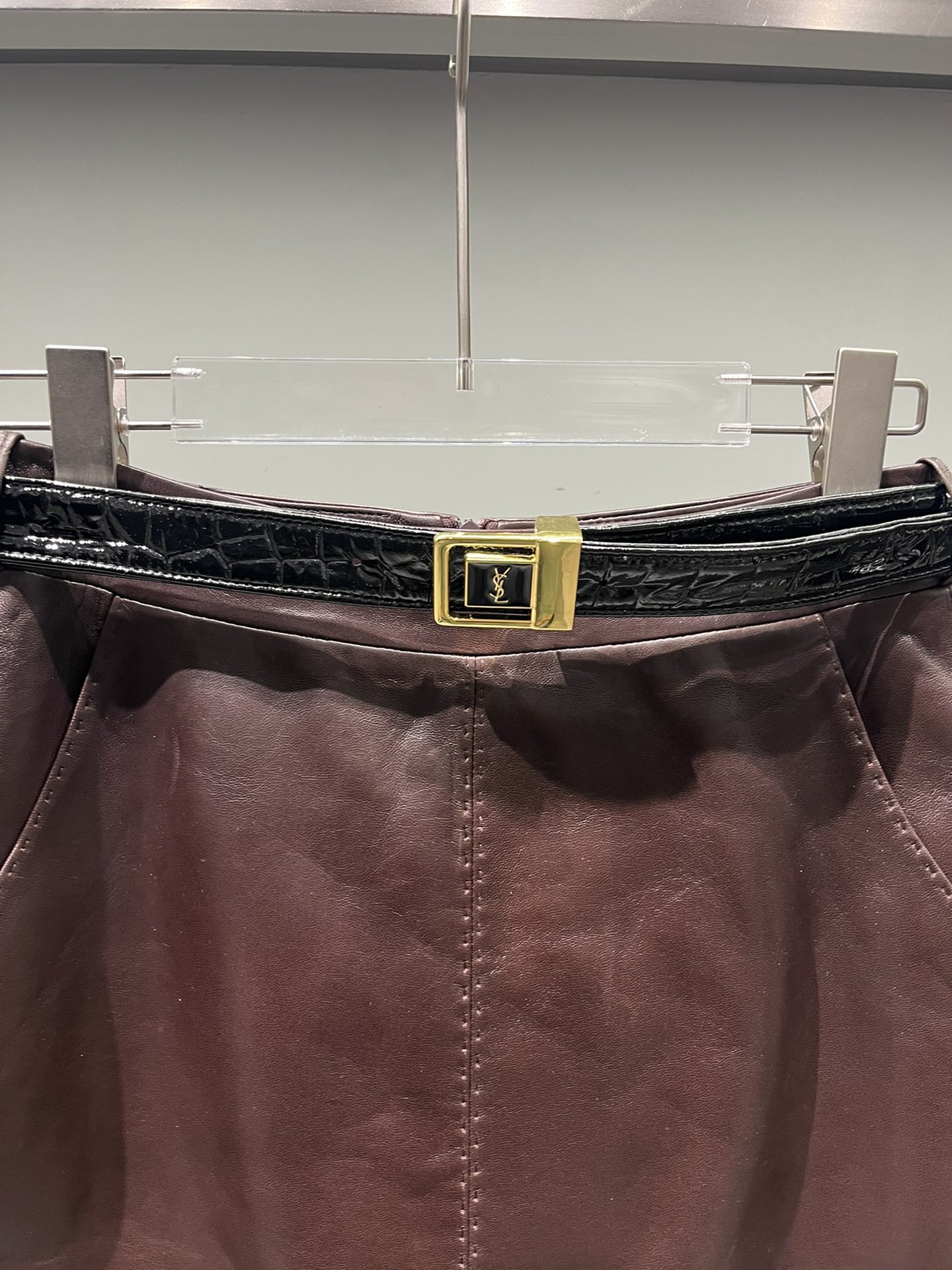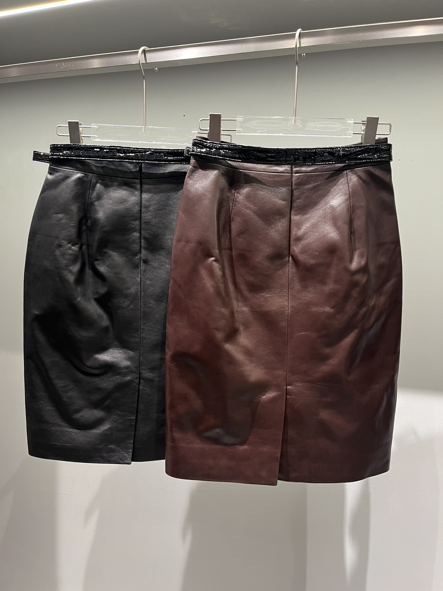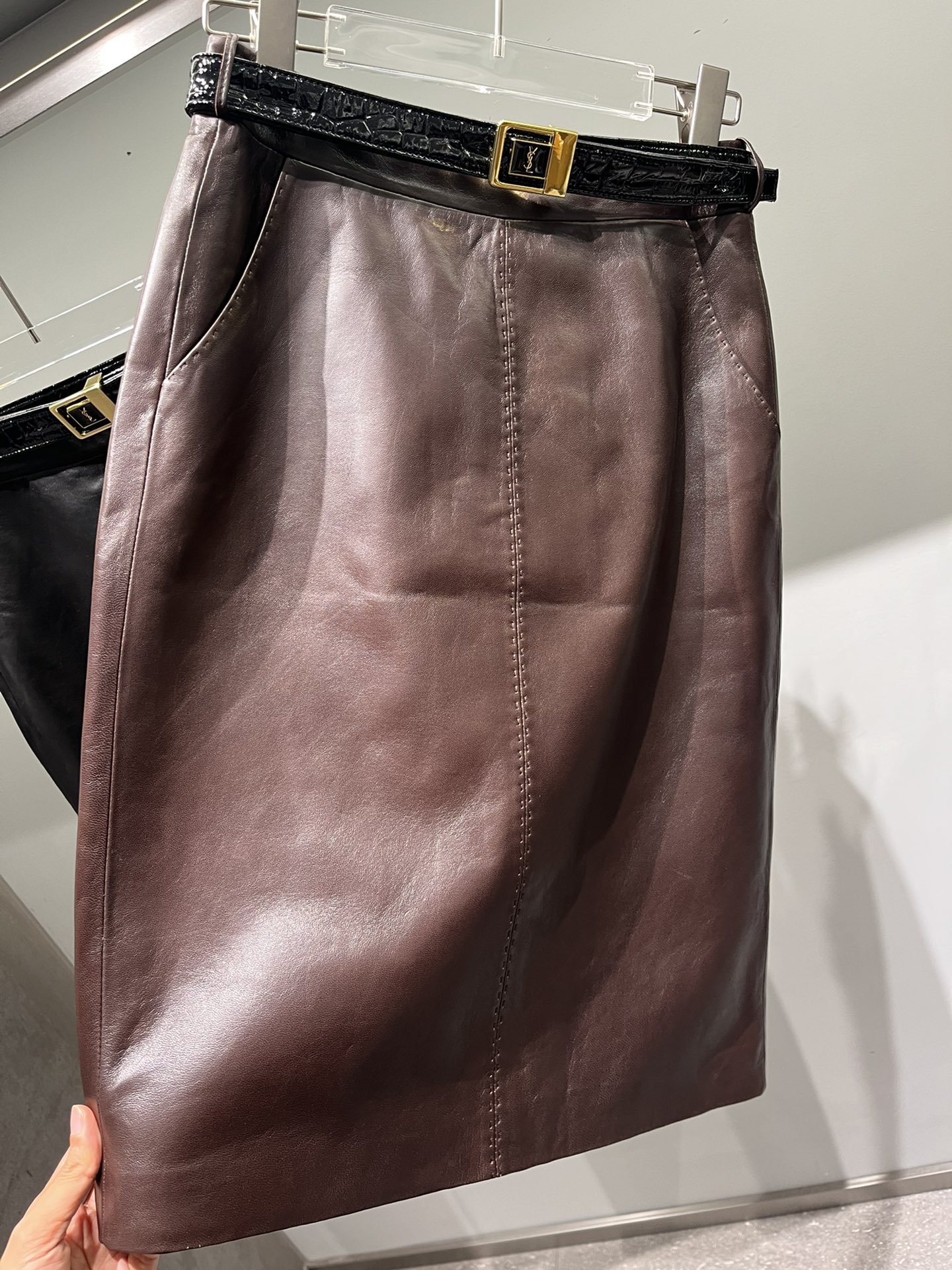 P480, Saint Laurent vegetable-tanned lambskin skirt, last year's design had a front slit, this year's design has a back slit.