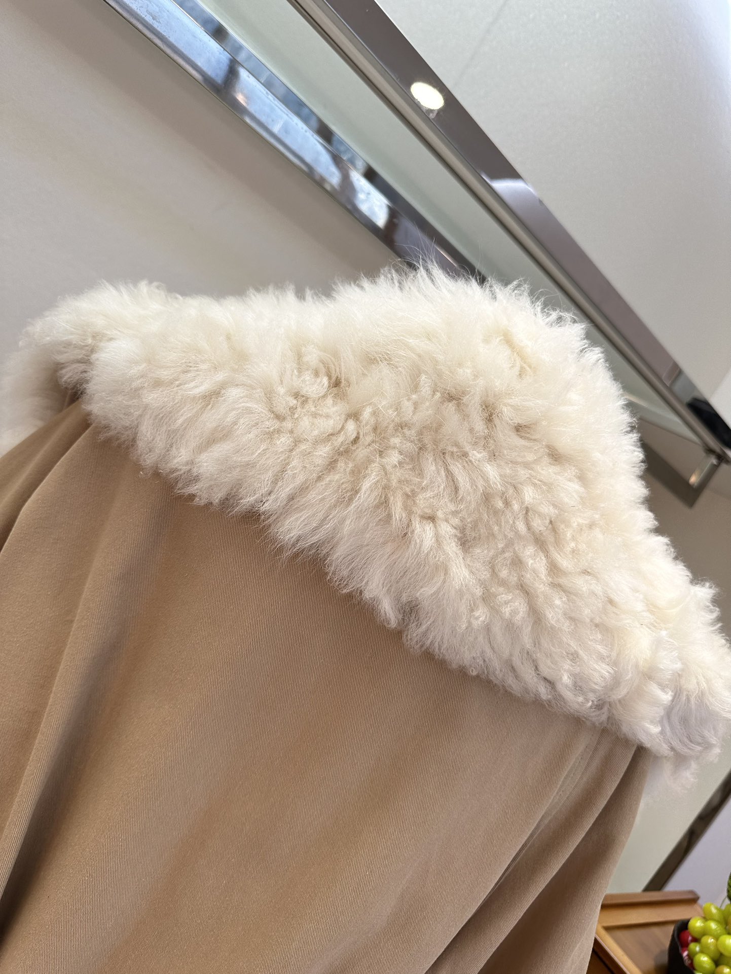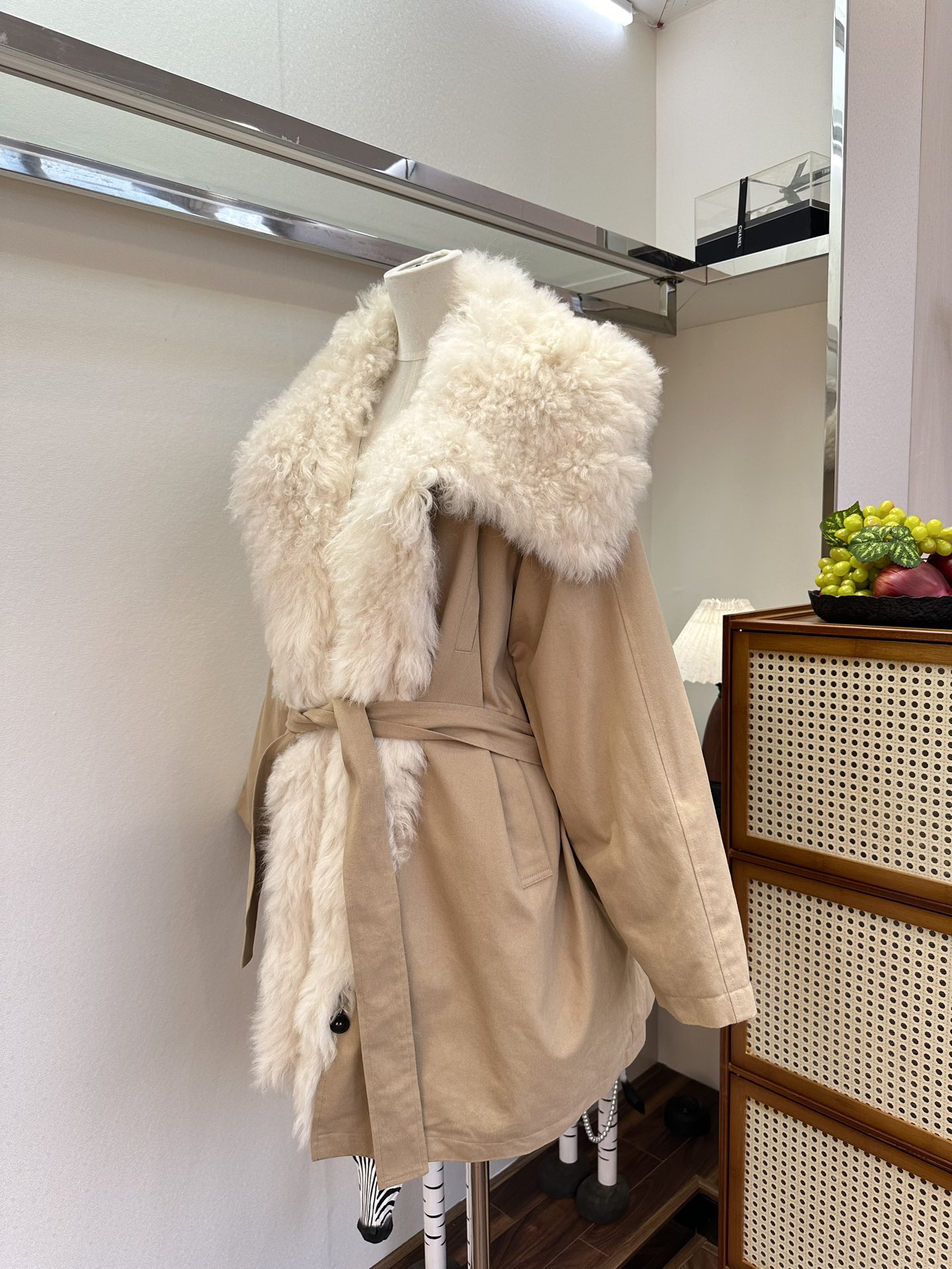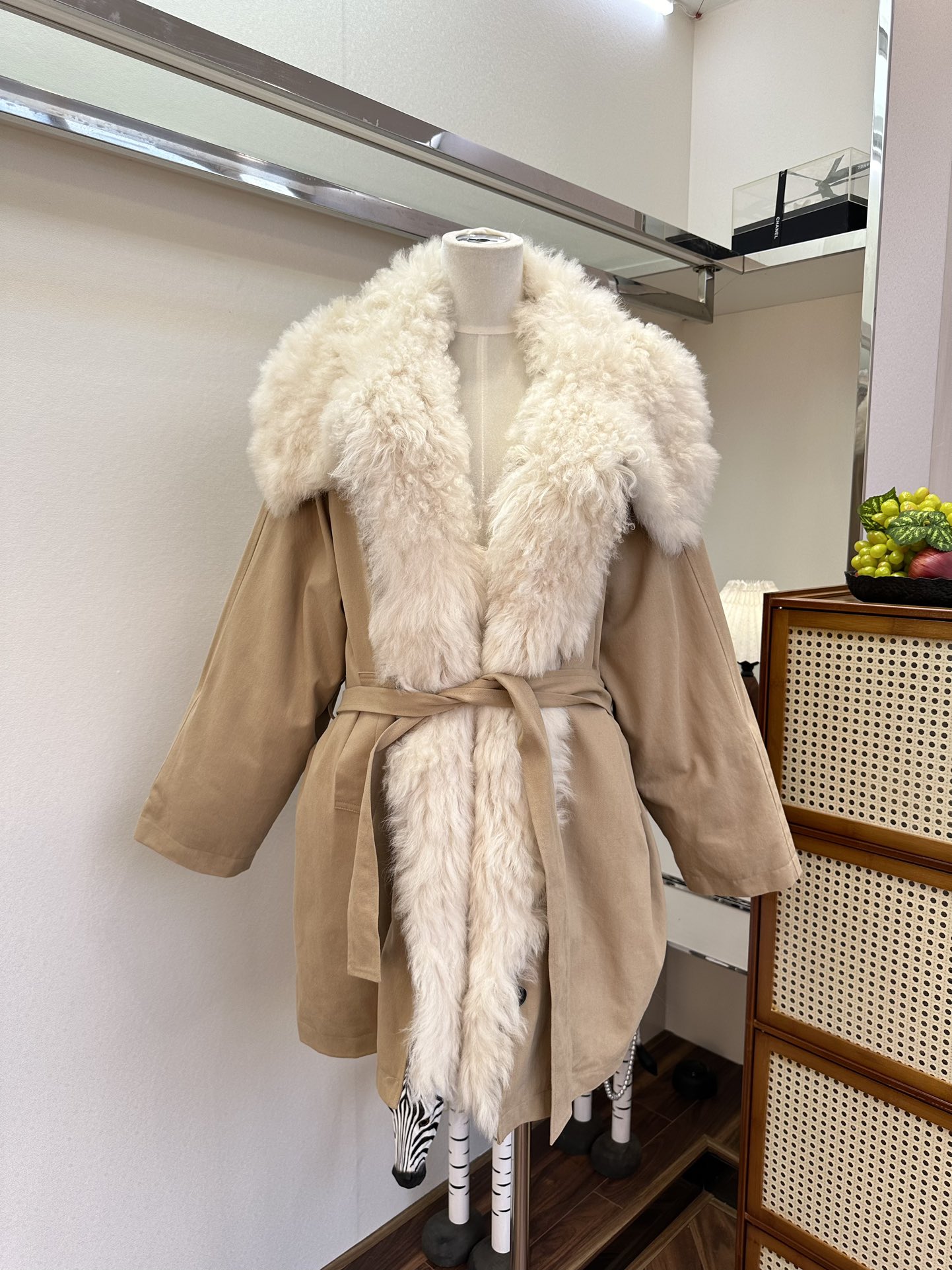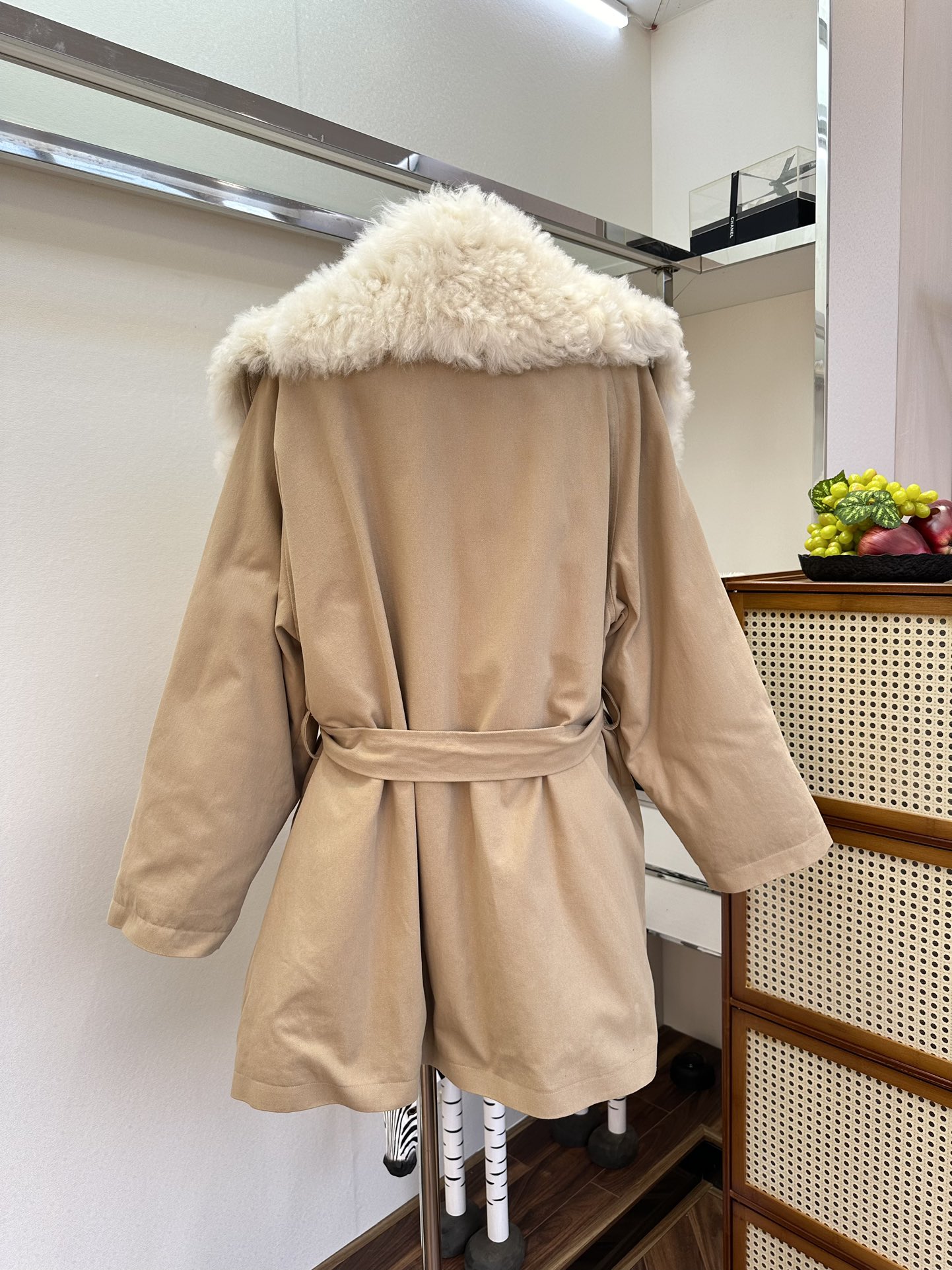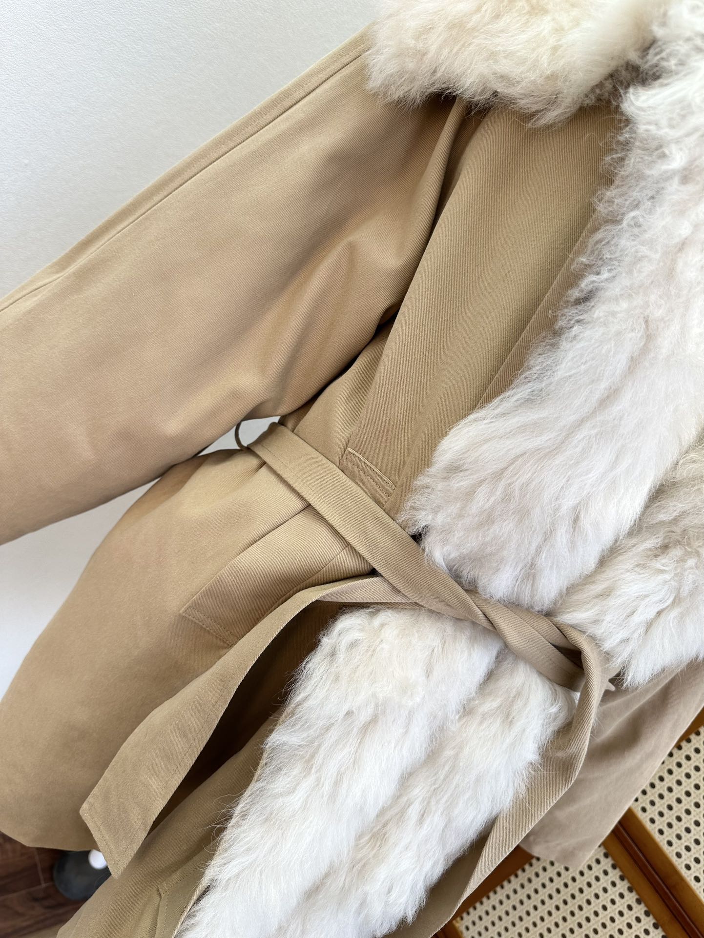 25 F Wandering in the bitter cold of winter, I always hope for a piece of clothing that can be like a warm harbor, gently sheltering me. And this patchwork Tuscan large-lapel parka, with its lingering poetry, has entered my winter world just like that. The Tuscan leather, with its delicate and unique texture, seems like traces carefully carved by time. Patched onto the parka, it resembles an artistic canvas of interwoven colors. Every patch is just right, showcasing unparalleled refinement and elegance. The large lapel design rests lightly on the shoulders. It is soft yet structured, like a touch of tenderness in winter, gently caressing the cheeks. When the breeze blows, the lapel flutters in the wind, as if telling a story of warmth and beauty. And the goose down filling inside is the soul of this parka. The goose down is light and fluffy, clustering together densely to form a warm barrier that keeps the cold at bay. Wearing it feels like being wrapped in a soft cloud, with every cell immersed in warmth and comfort.