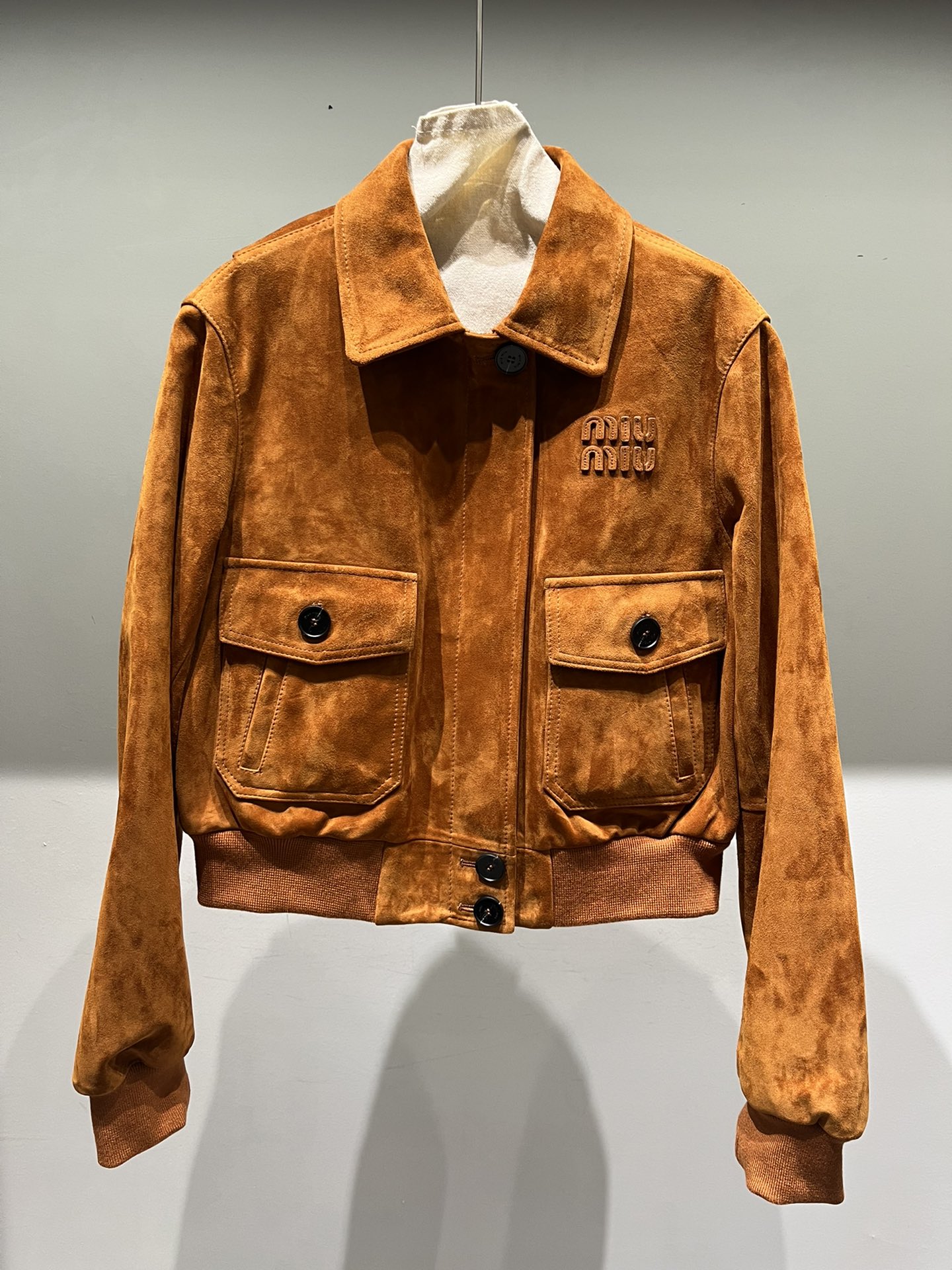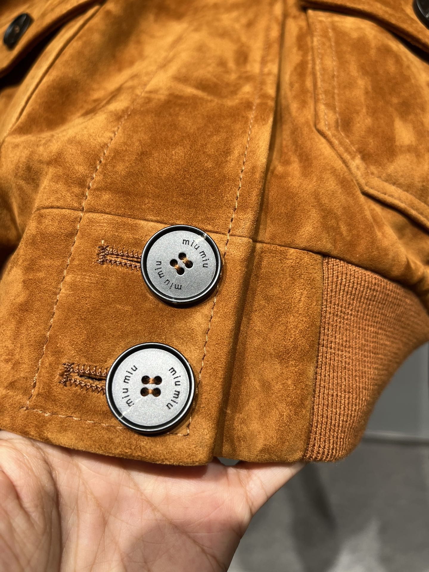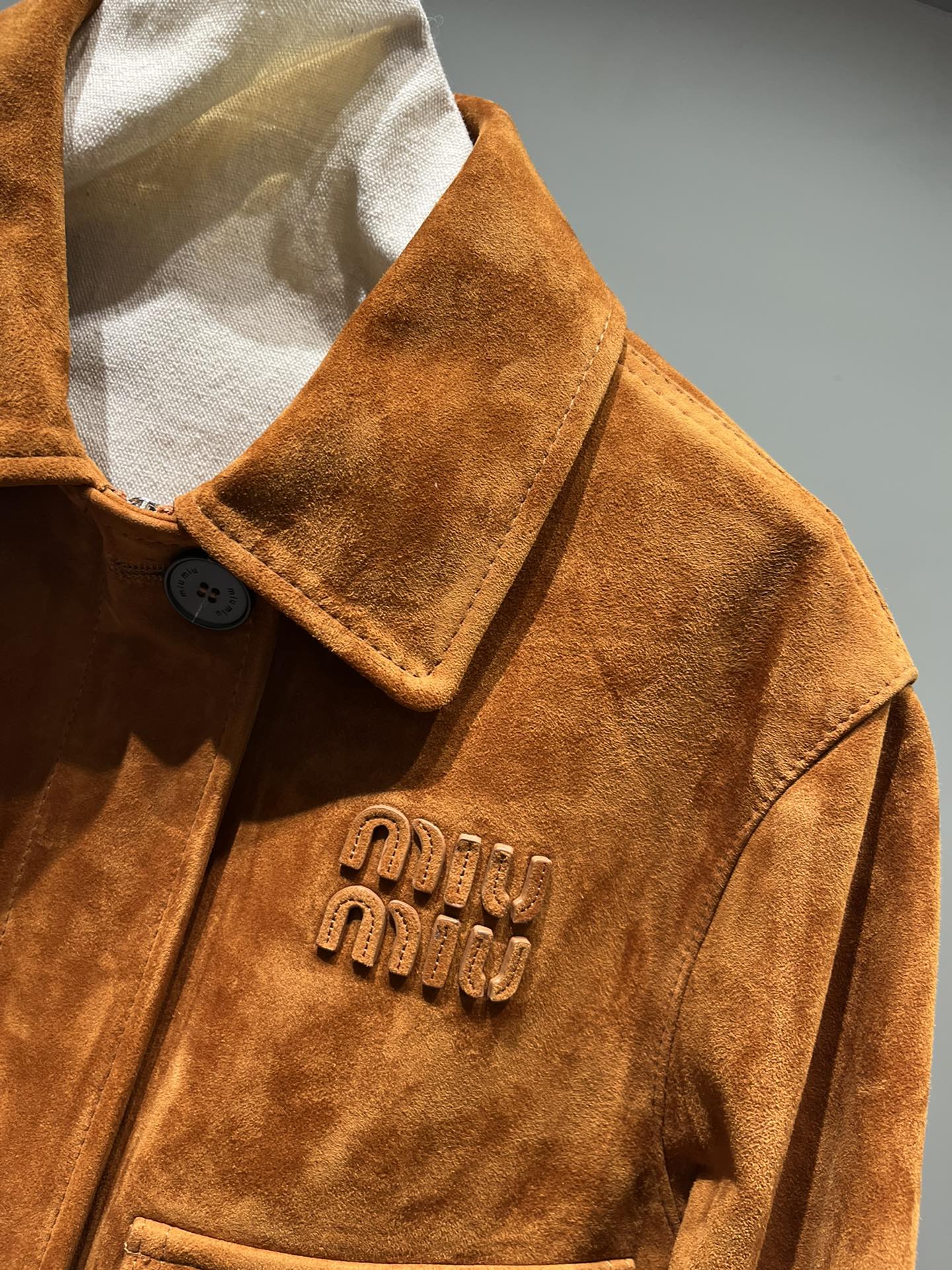 Camel color series leather available in both light and dark shades, brown can also be made. Miu Miu letters feature edge coating process for a three-dimensional effect, buttons with logo, short design.