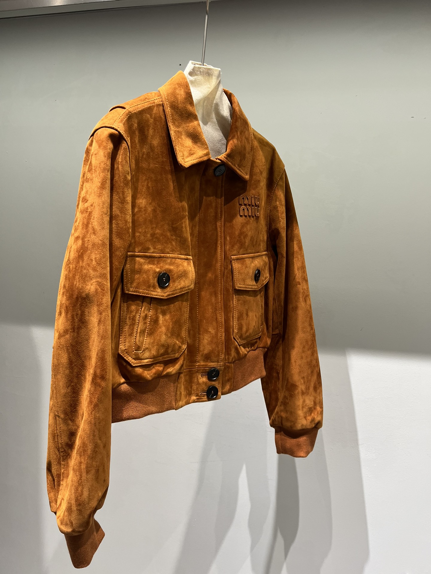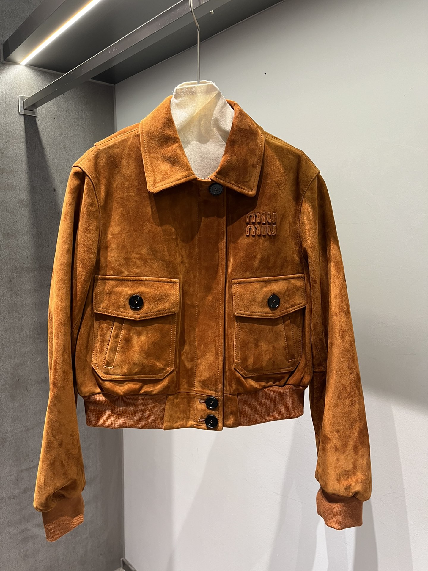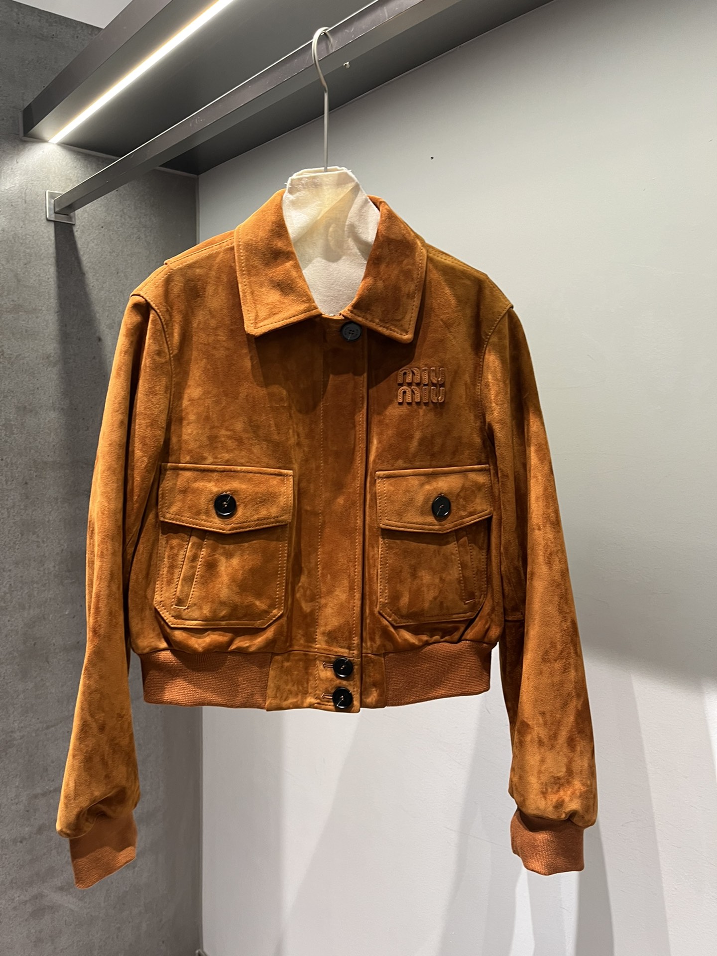 Camel color series leather available in both light and dark shades, brown can also be made. Miu Miu letters feature edge coating process for a three-dimensional effect, buttons with logo, short design.