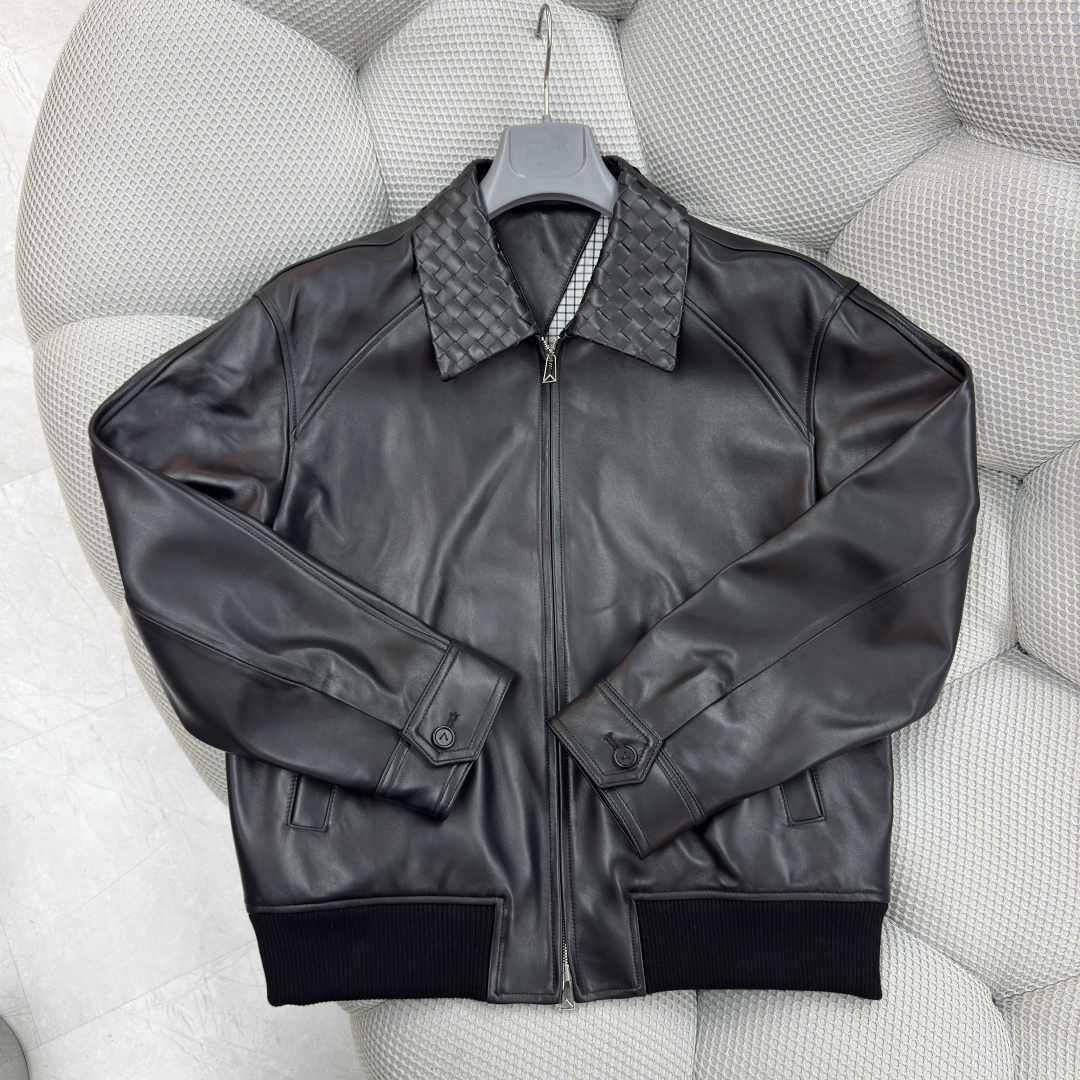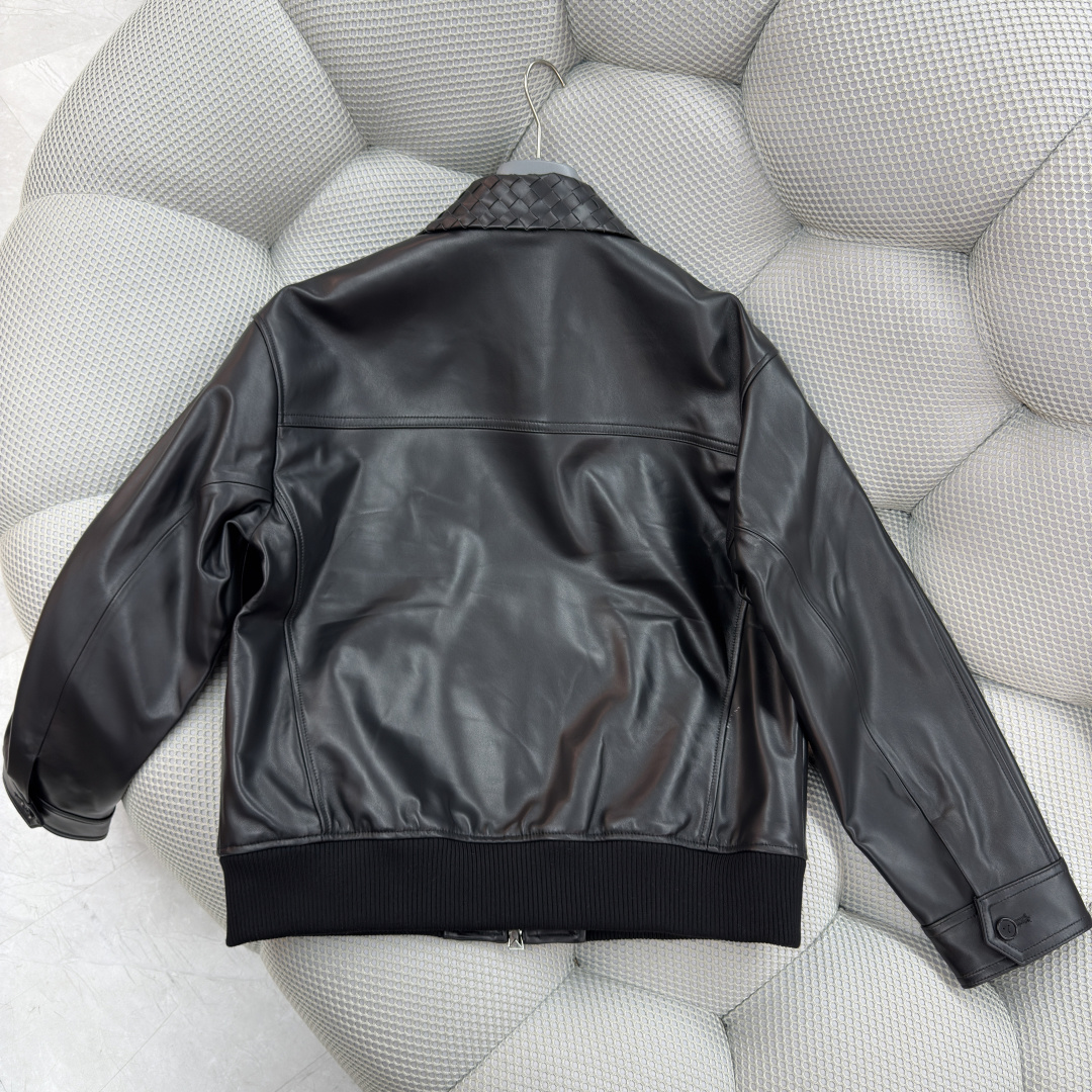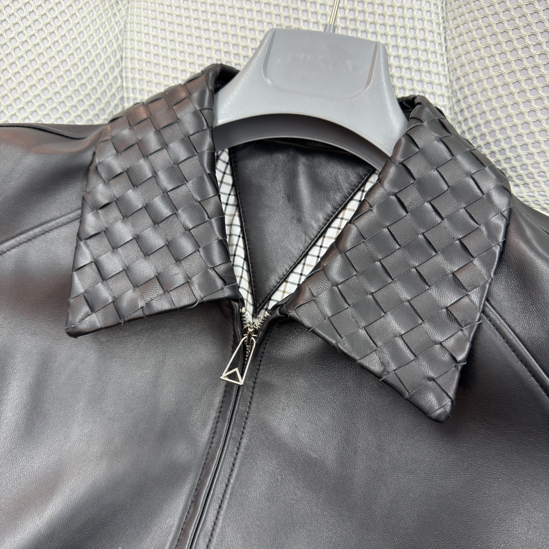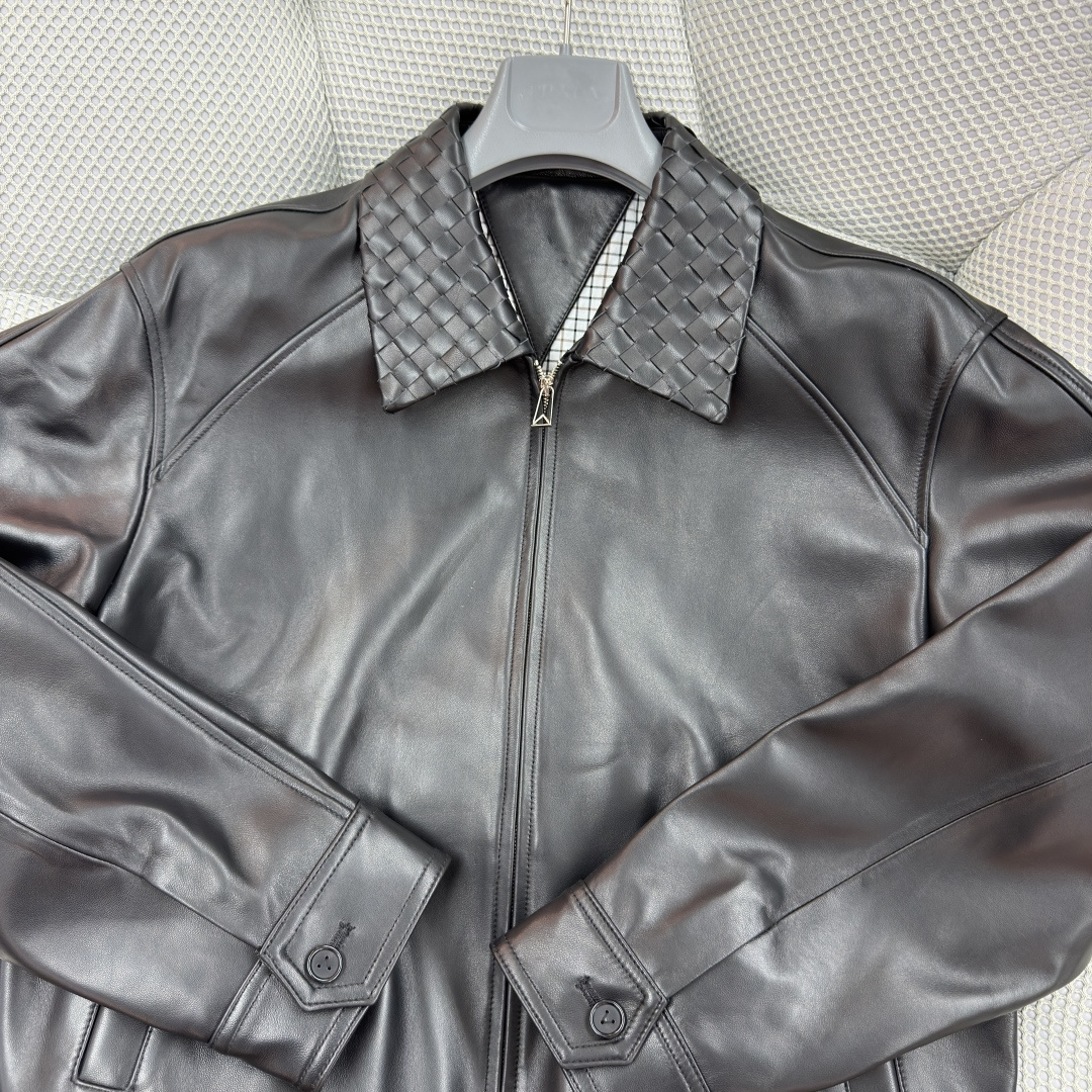 BOTTEGA VENETA 25 new woven leather jacket coat Handwoven lamb leather waist-tie short leather jacket Urban fashion style Versatile casual commuting essential item Sizes: 48-58