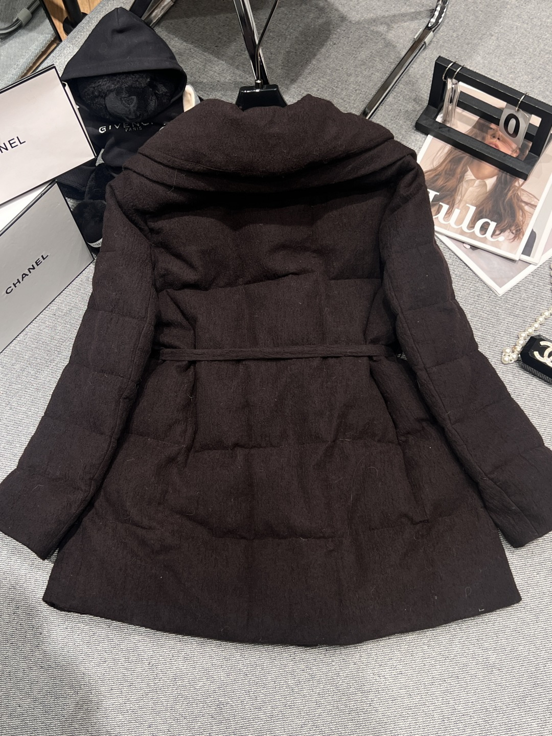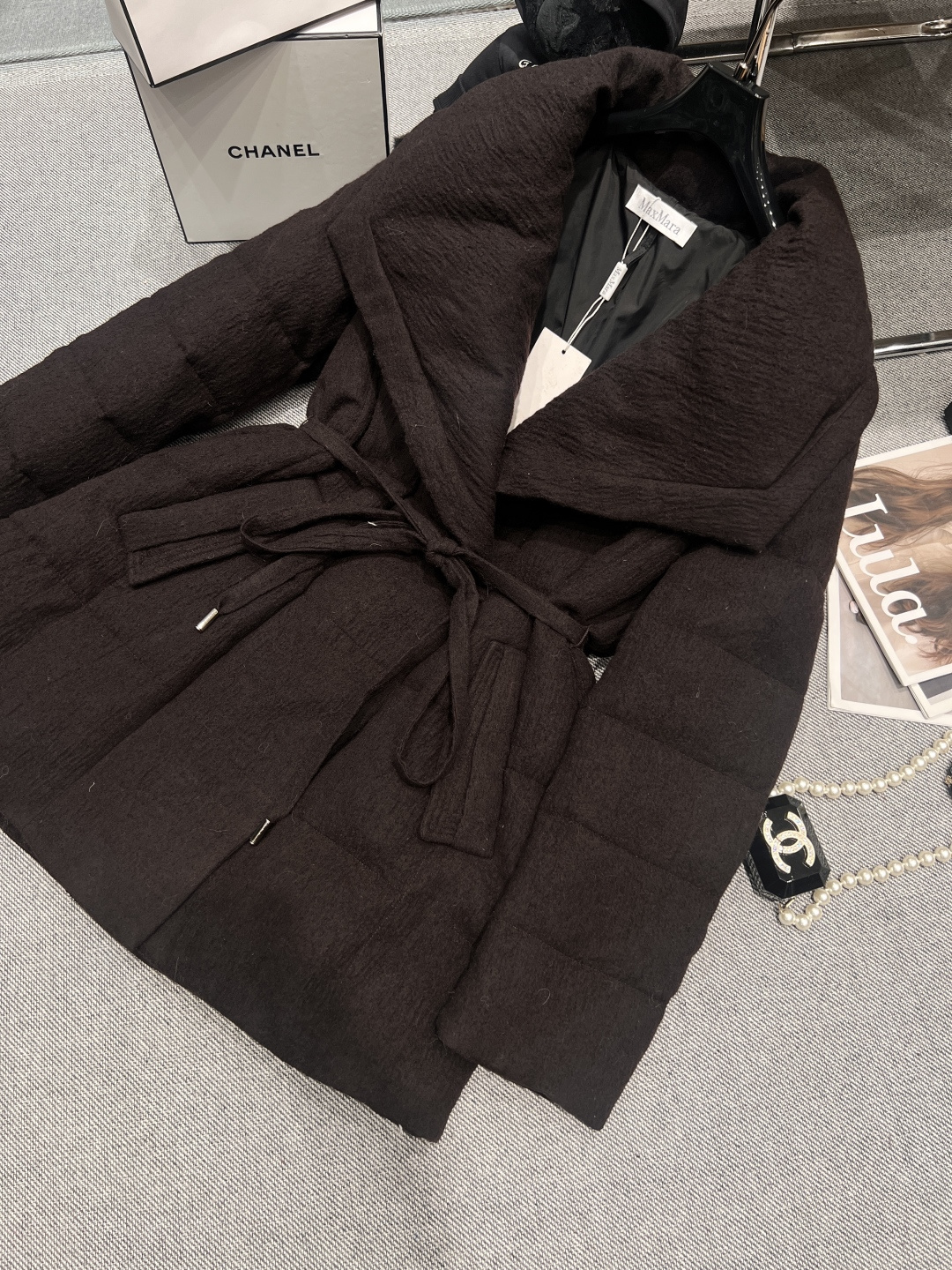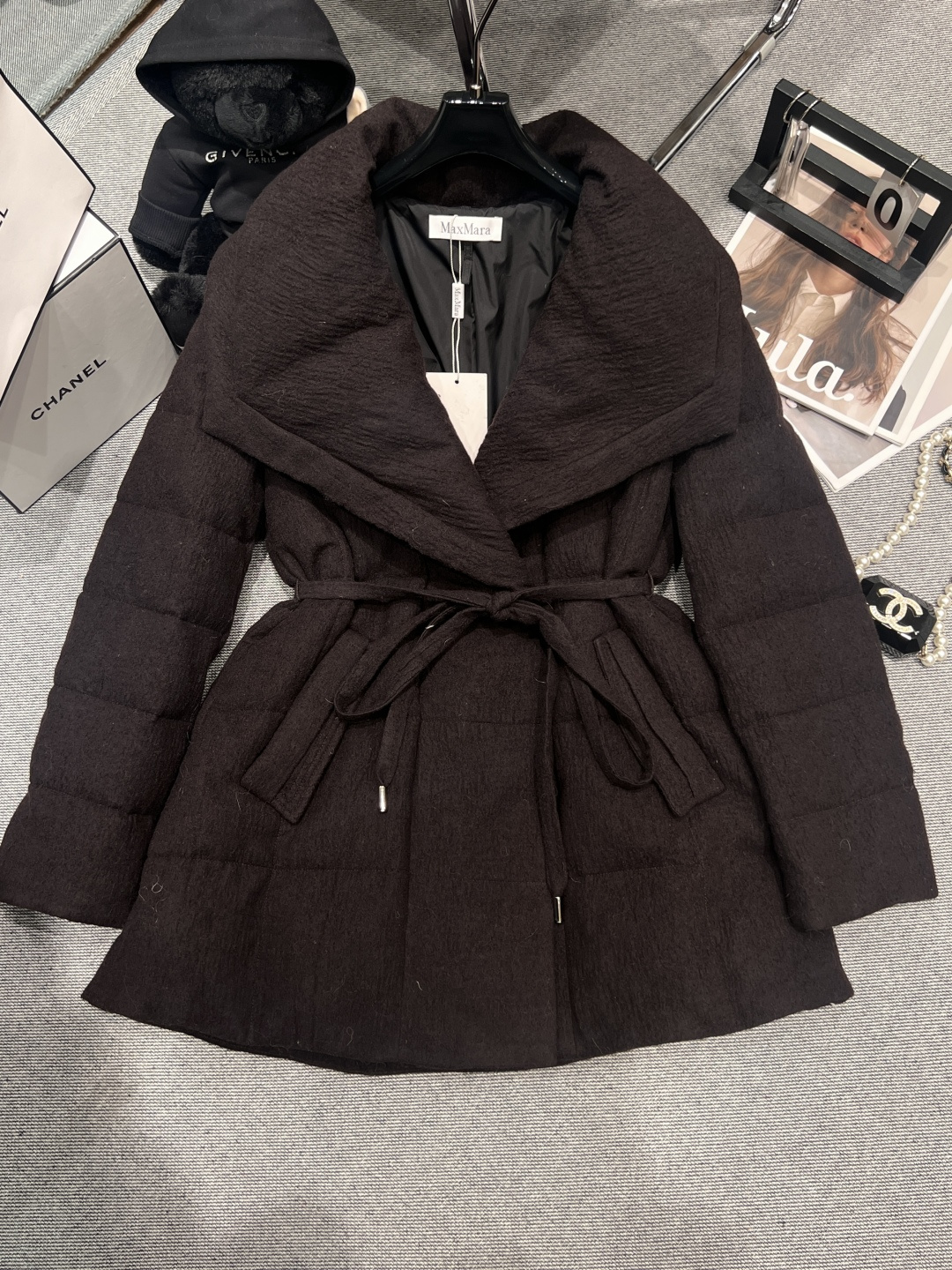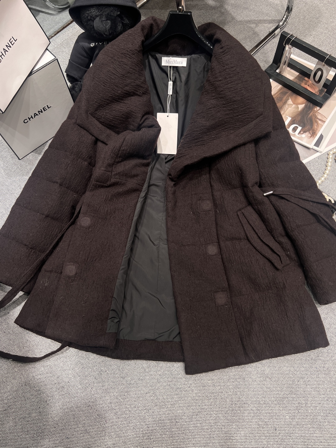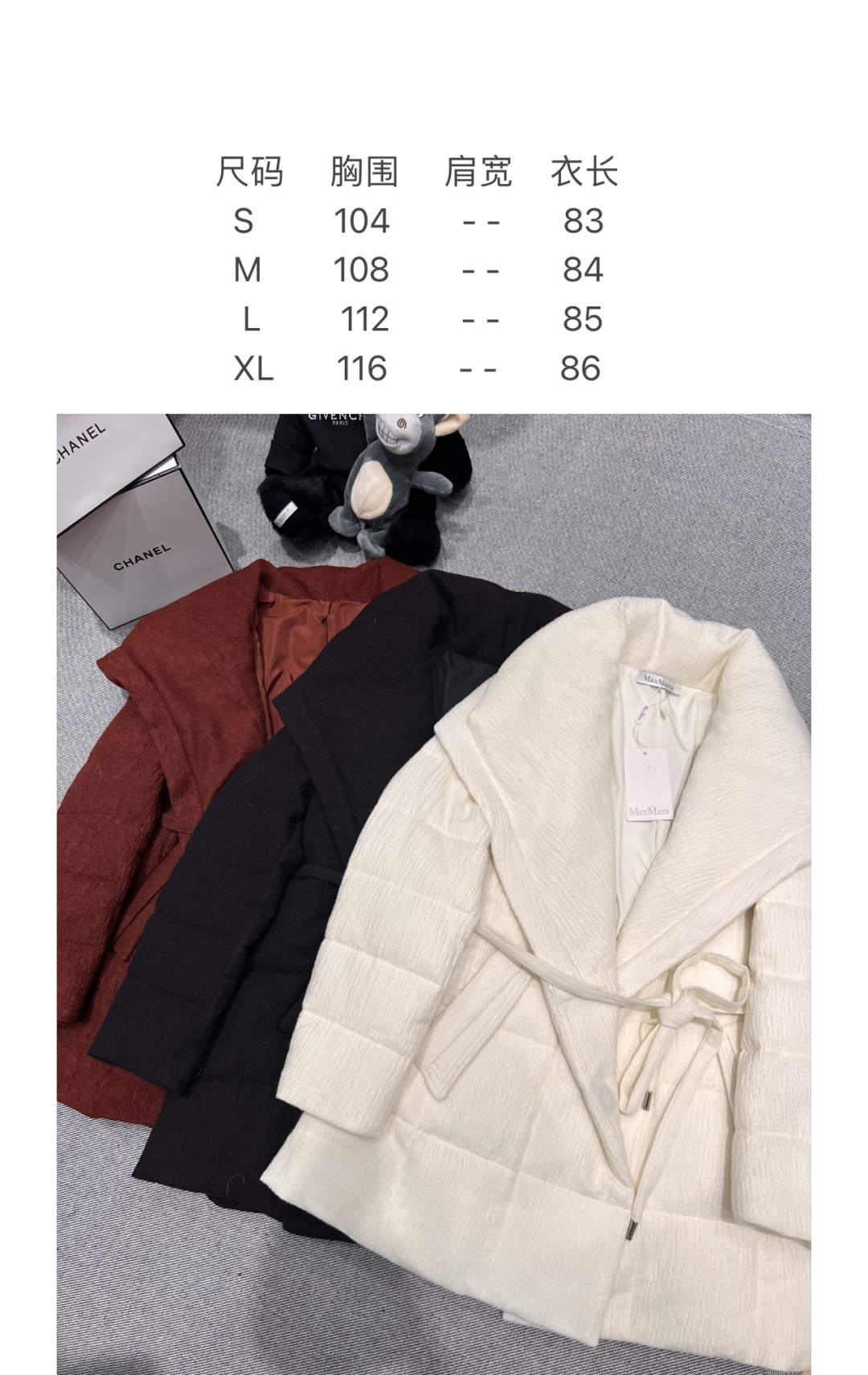 ——MXX MAR*——2025 Autumn/Winter New Goose Down Coat, oversized lapel design, outer material is wool, inner lining filled with 90% white goose down, buttons feature hidden magnetic snap closures with a belt, super slimming when worn, truly achieving a silhouette that is both slimming and elegant, Sizes S M L XL