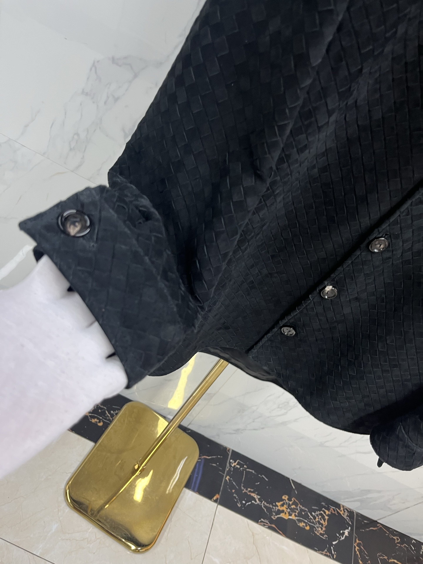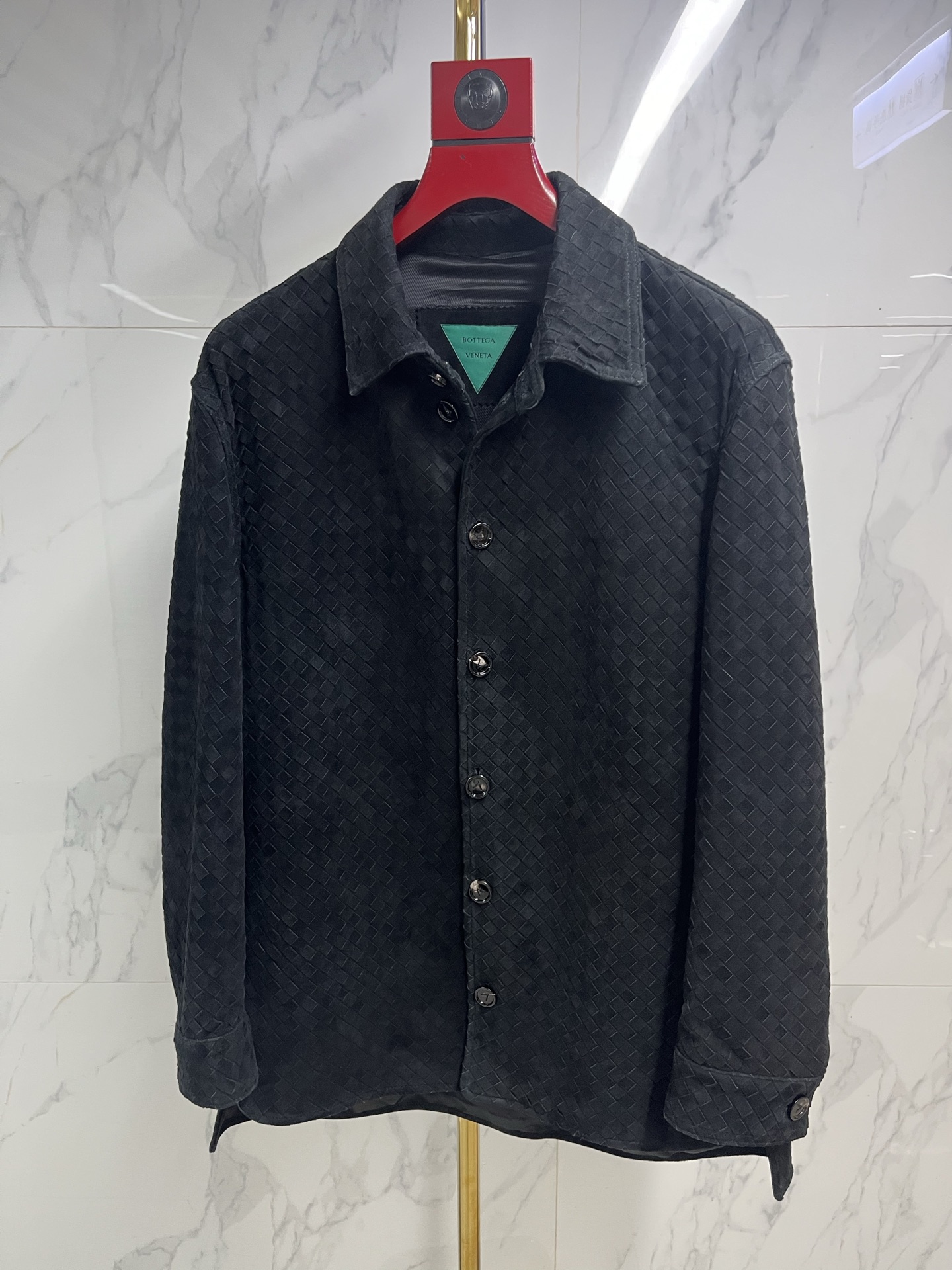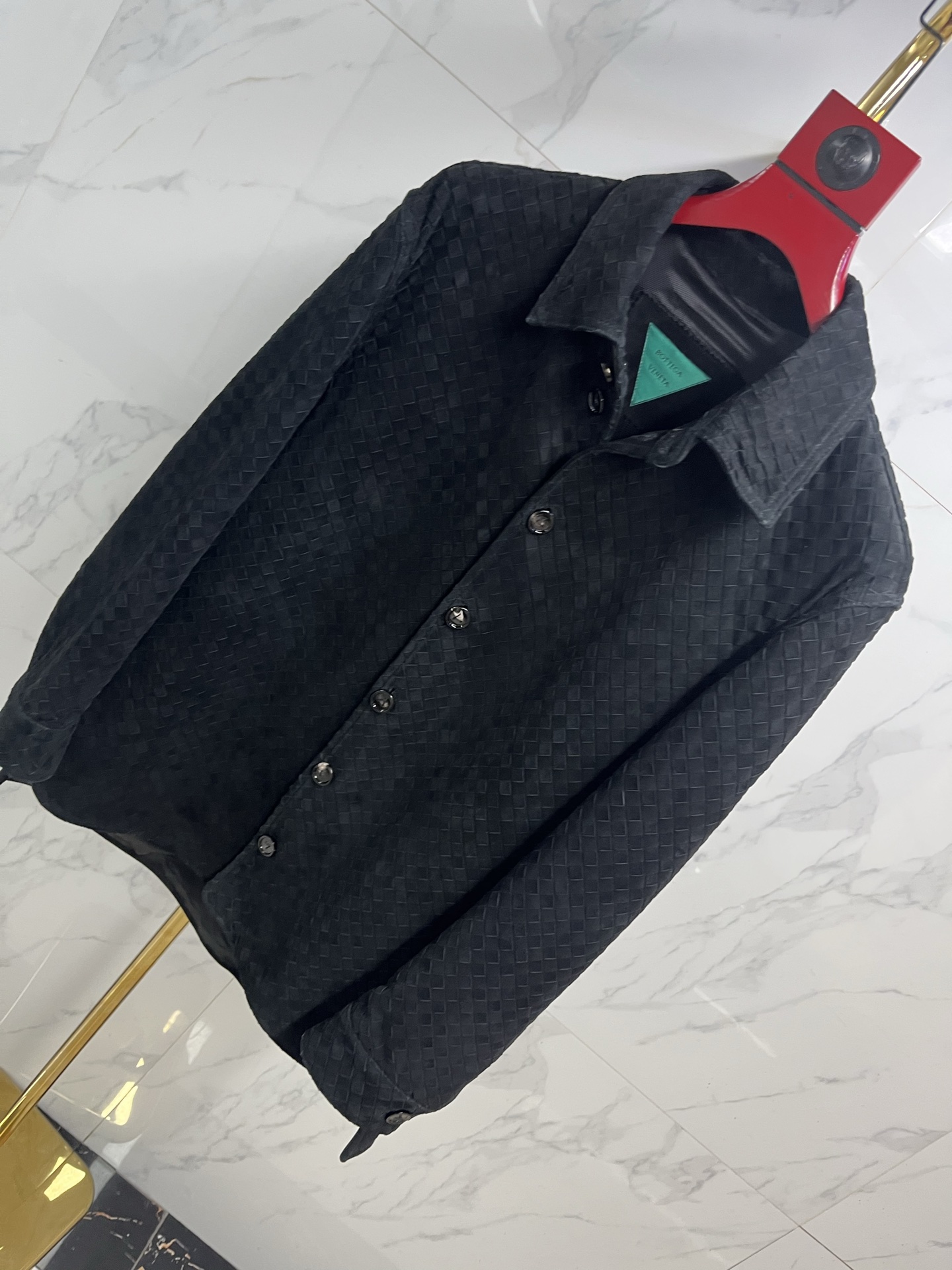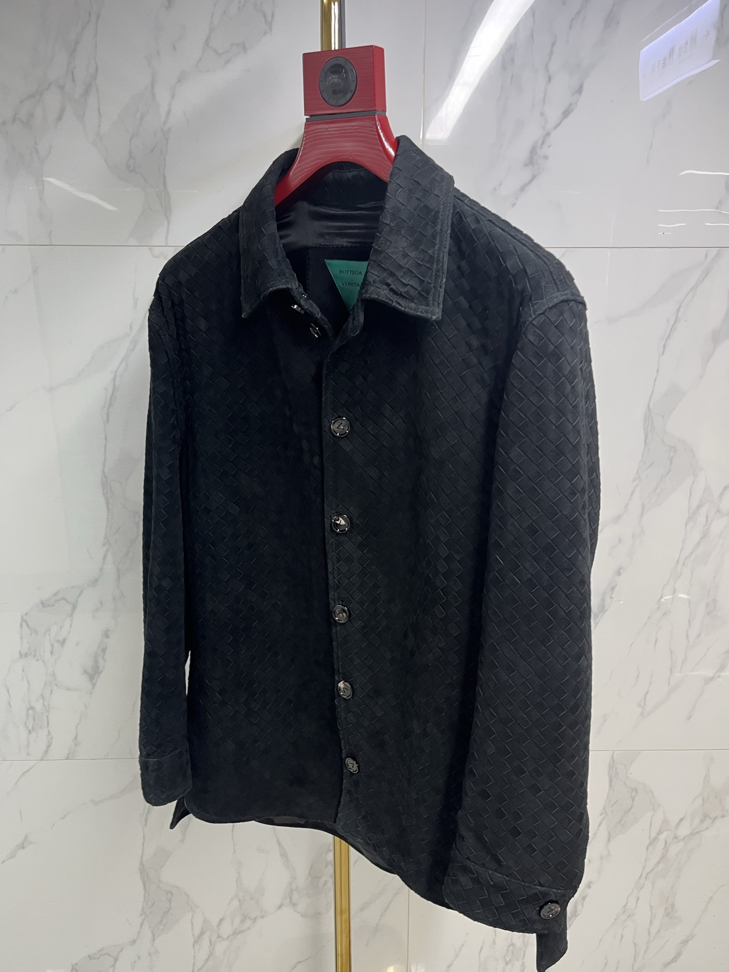 Hong Kong counter synchronous import mixed sheep suede lapel shirt style leather jacket ✨BV✨ belongs to the typical urban aristocratic luxury brand, synonymous with high-end and fashionable. The wearing effect is surprisingly good. If worn by a mature and steady gentleman, it looks even more handsome and charming. Short, three-dimensional chest patch pocket leather jacket makes the whole body proportion look very good and legs appear longer. Imported suede genuine leather, casual fashionable urban style three-dimensional cut woven bag! The leather jacket feels very good to the touch, the material used is equivalent to two garments, giving a substantial feel when lifted, the weight is just right, yet the leather is very soft, truly worth the price. The hardware gives a very luxurious feel, definitely not comparable to ordinary metal materials. The counter price of nearly over a hundred thousand per piece is truly precious, but every man's wardrobe should have one. The inner lining of the leather jacket is satin-style fabric with high density, tight texture, and strong durability, wearing effect is smooth as silk. Whether in appearance or feel, it is top-notch! A combination of youthful maturity and fashion, you will find it still in style many years later.