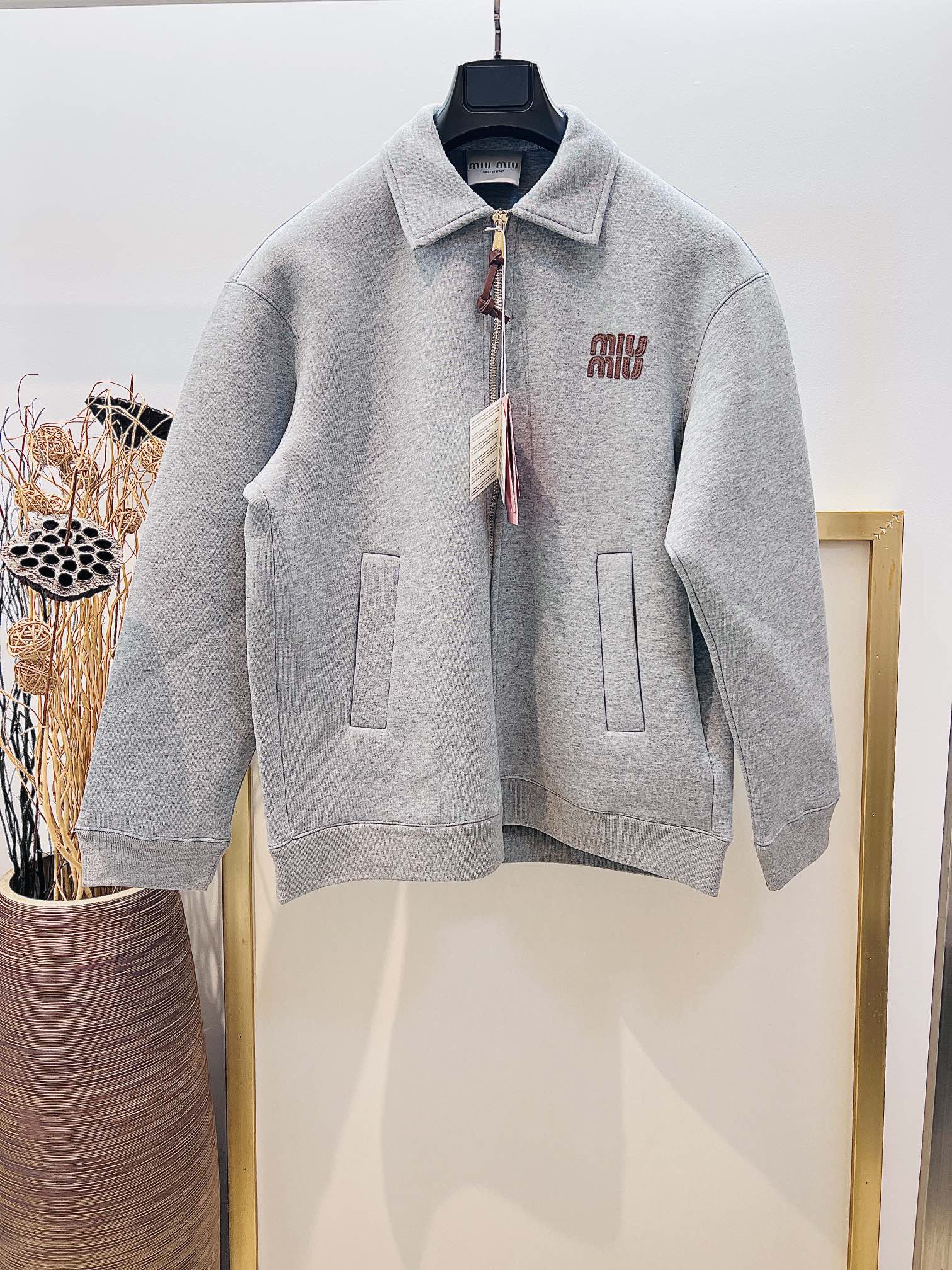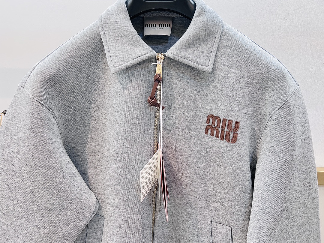 Miumiu High-tech fabric triple-layer composite thickened loose silhouette lapel jacket embroidered genuine leather logo letter zipper coat truly understands fashion