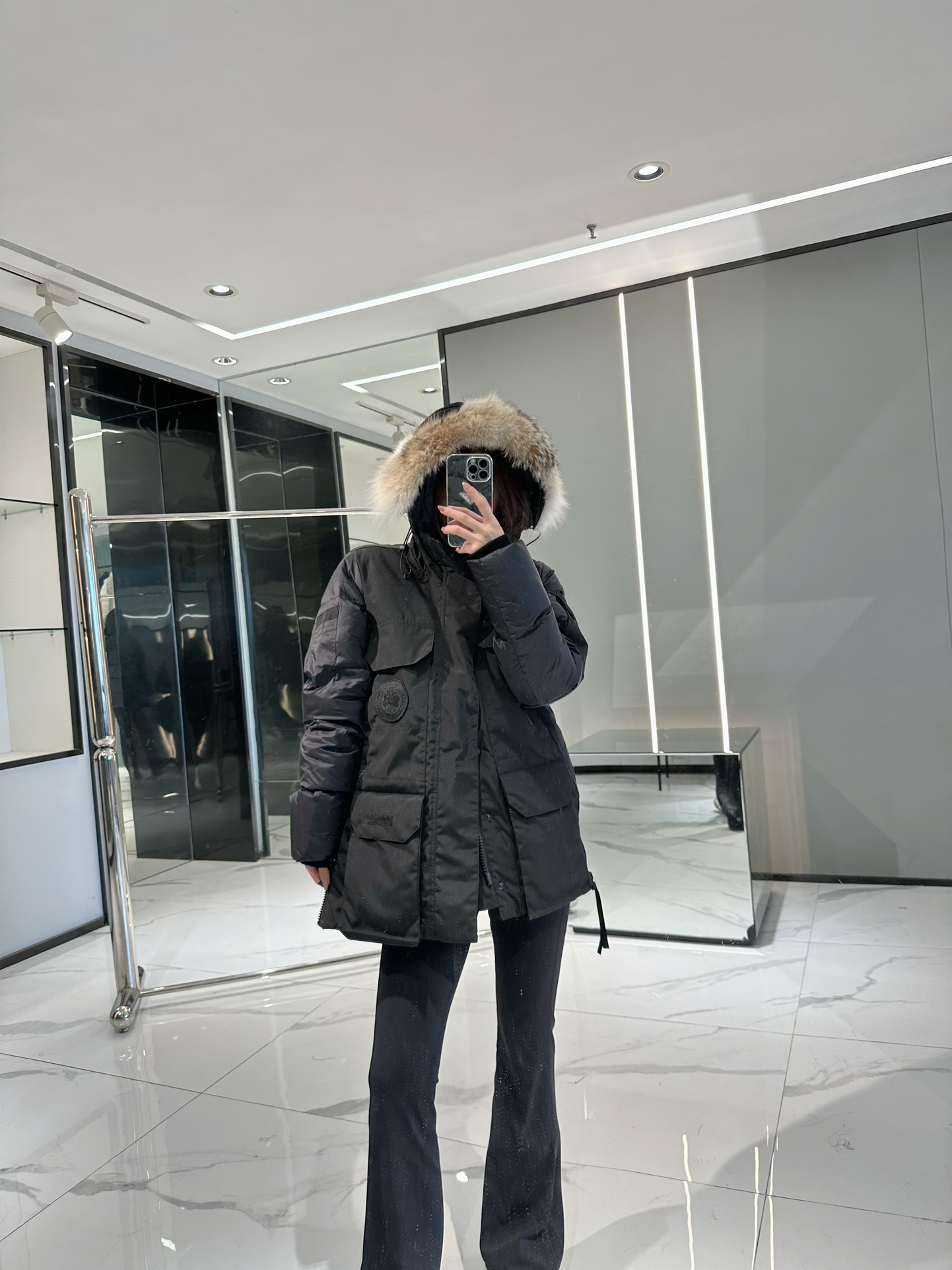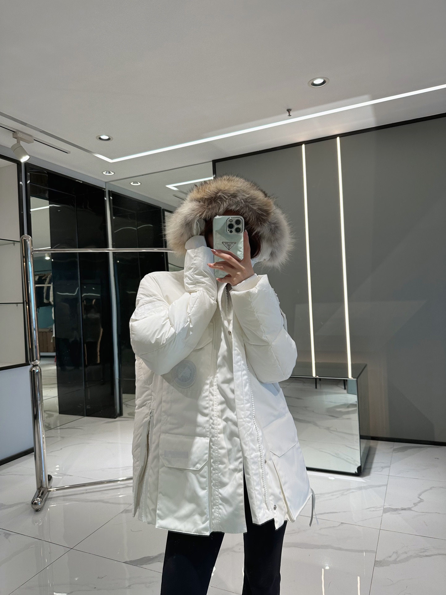Compared to the classic version, this one is much lighter, weighing 302g, so it won't feel heavy when worn, but the cold resistance level remains unchanged! It features matching embroidery, toning down the chest logo. Fur trim is optional.