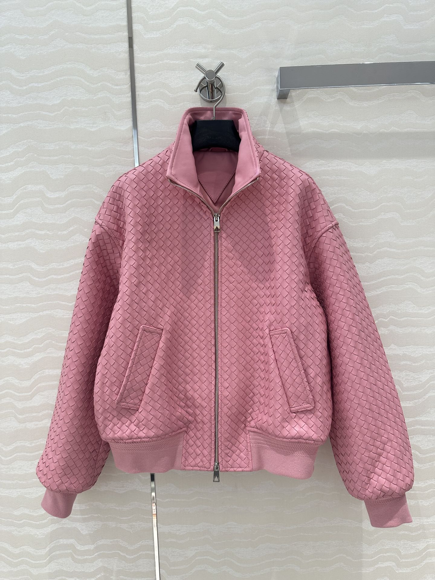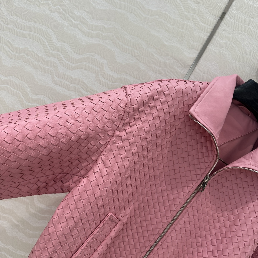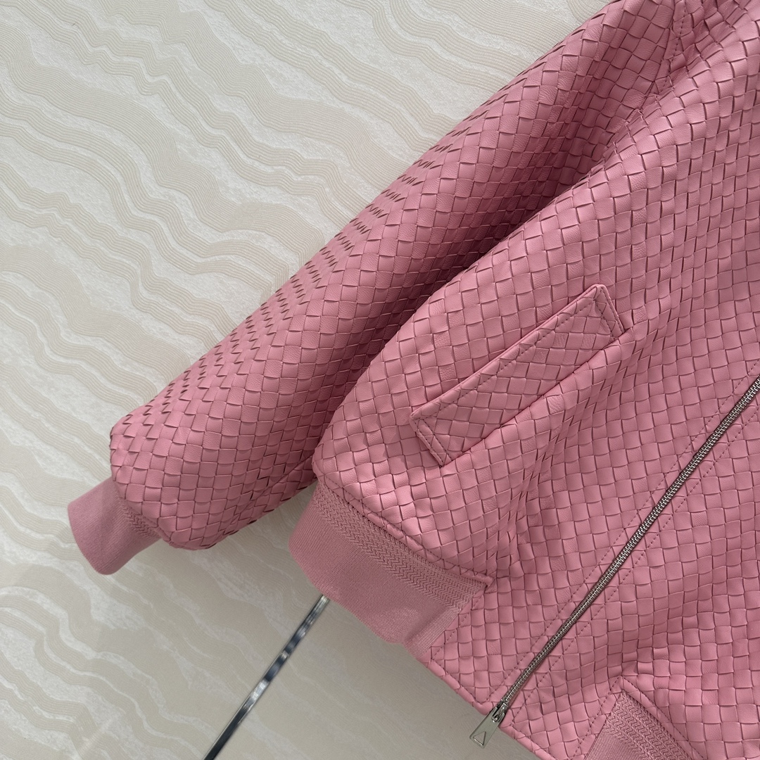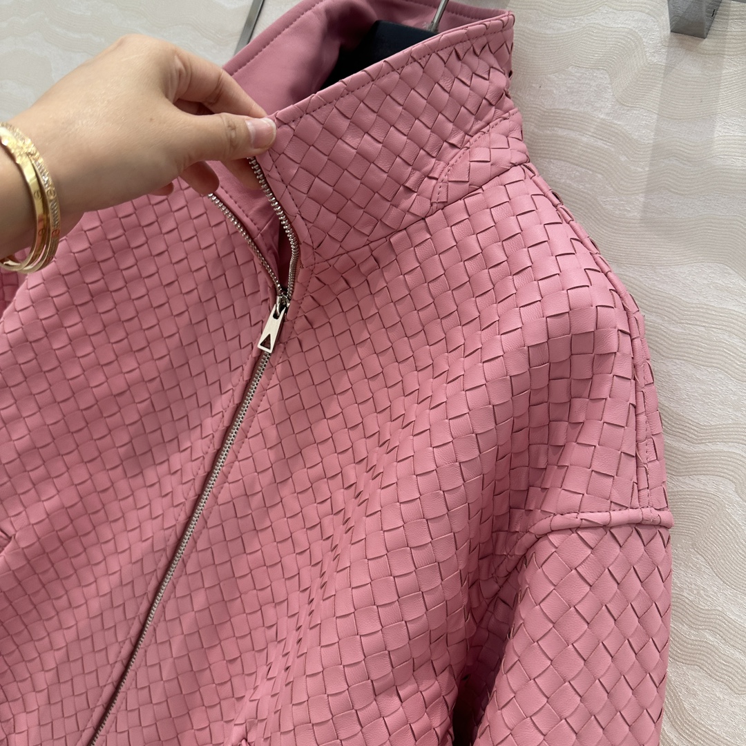 Exclusive First Release High-end Original Quality, BV Weaving Craft Retro Modern Fashion Must-Have Leather Jacket! Double Zipper Design Baseball Jacket Coat! Imported 100% Lamb Skin Weaving Craft, Leather Texture Meaty, Oily, Soft, and Fine! Unisex Retro American Academic Style Classic Design Super Loved! Custom Ribbed Splicing Design, Both Edgy and Chic Casual Lazy Style, Elegant, Fashionable, and High-End! Perfect Silhouette, Wearing It Looks Both Edgy and Chic! Strongly Recommended for Personal Keep! 4 Colors S-L Size. S Size: Bust 110, Length 57.