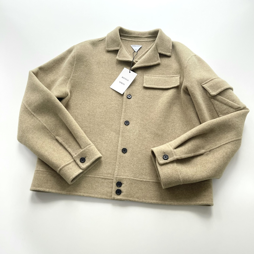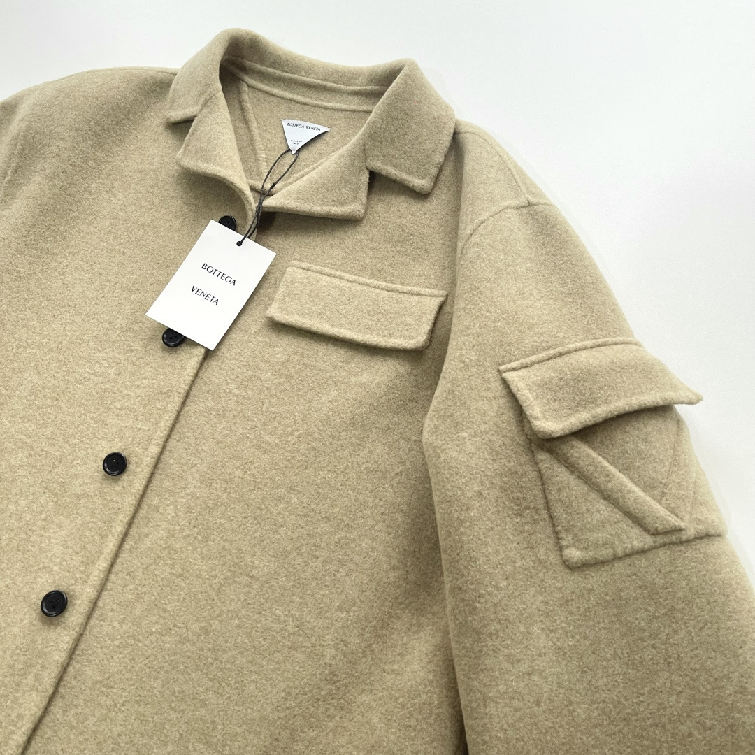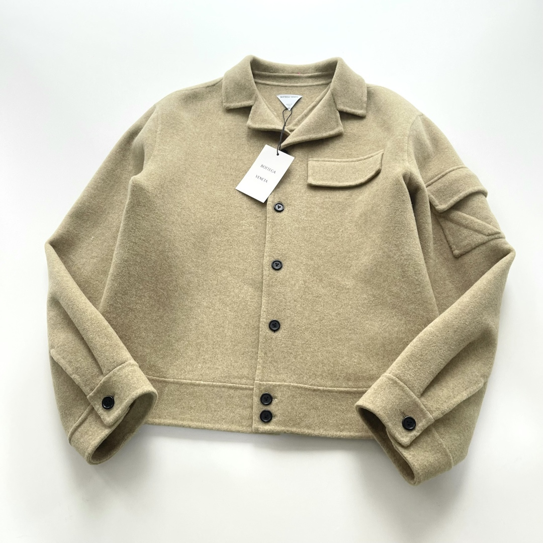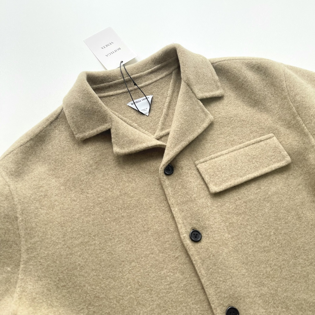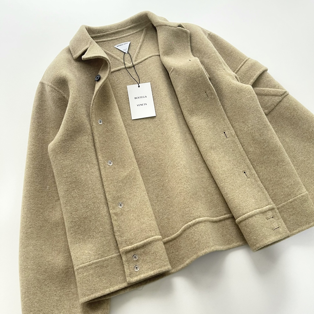 Autumn and winter new arrivals BOTTEGA VENETA BV soft mist yellow short wide wool jacket 800g double-sided woolen wool material 80% Australian wool 20% graphene Follow the original custom dyeing Minimum order quantity 2000 meters Double-sided hand stitching V-shaped signature open pocket on shoulder and sleeve Back V-shaped seam lifting makes the jacket more three-dimensional and stylish when worn Special machine button straight eye Hand-stitched 3-eye buttons High quality Four sizes S M L XL In stock