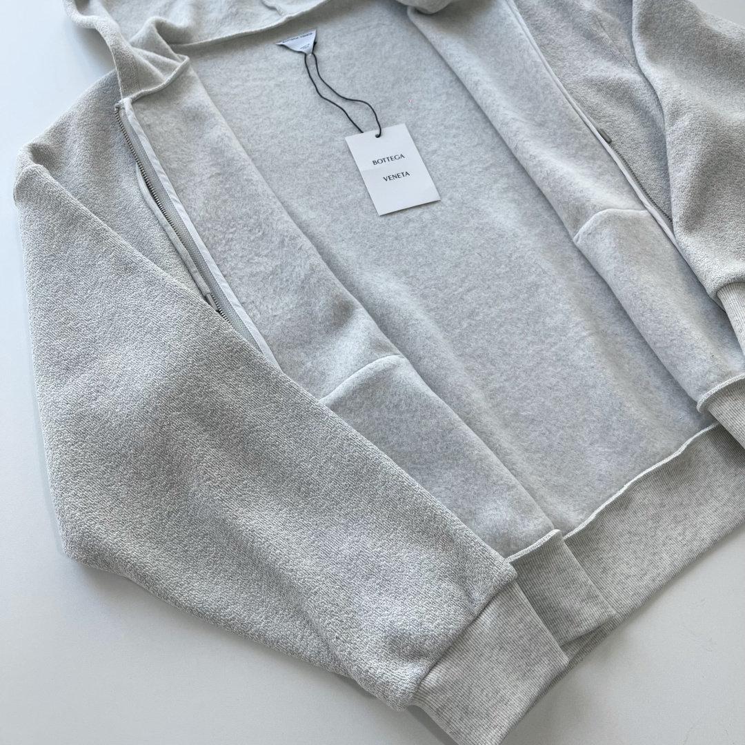 Autumn and winter new arrivals Bottega Veneta BV zippered jacket, top-grade knitted fabric 410g coarse wool, cellulose cotton, super high-quality materials. Dare to say few people use such good knitted fabric. Ordinary fleece costs tens per kilogram (this one is 180/kg, the most expensive knitted material I've used). The face fleece is very special, wool fleece is indeed different, smooth and skin-friendly (wool fleece is not recommended to be worn with black innerwear, as it easily attracts lint). Custom V-shaped Ykk zipper, four sizes S M L XL, in stock.