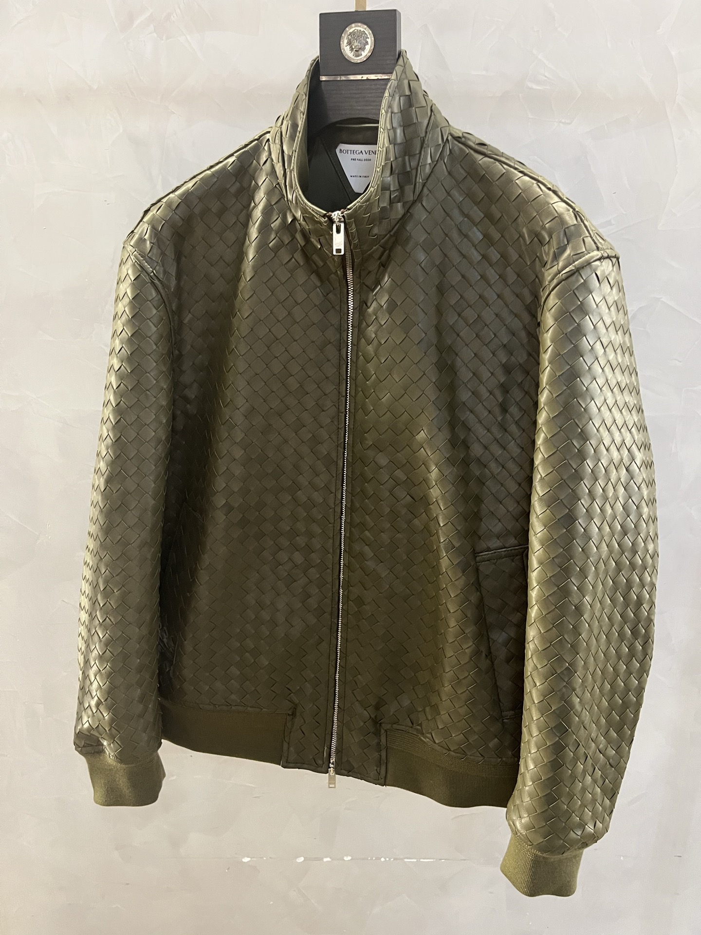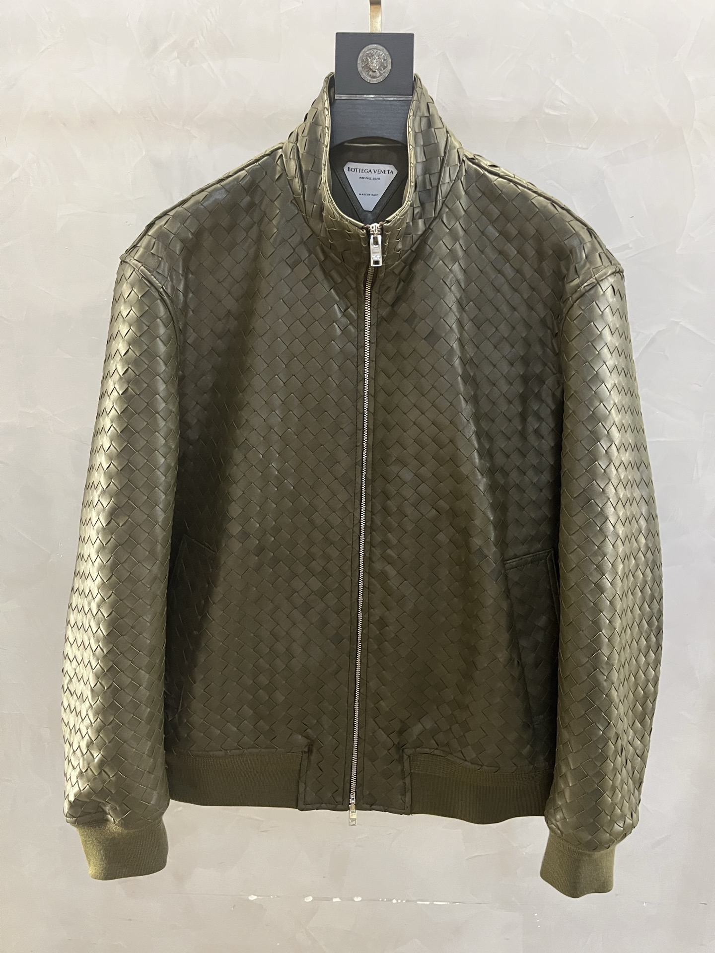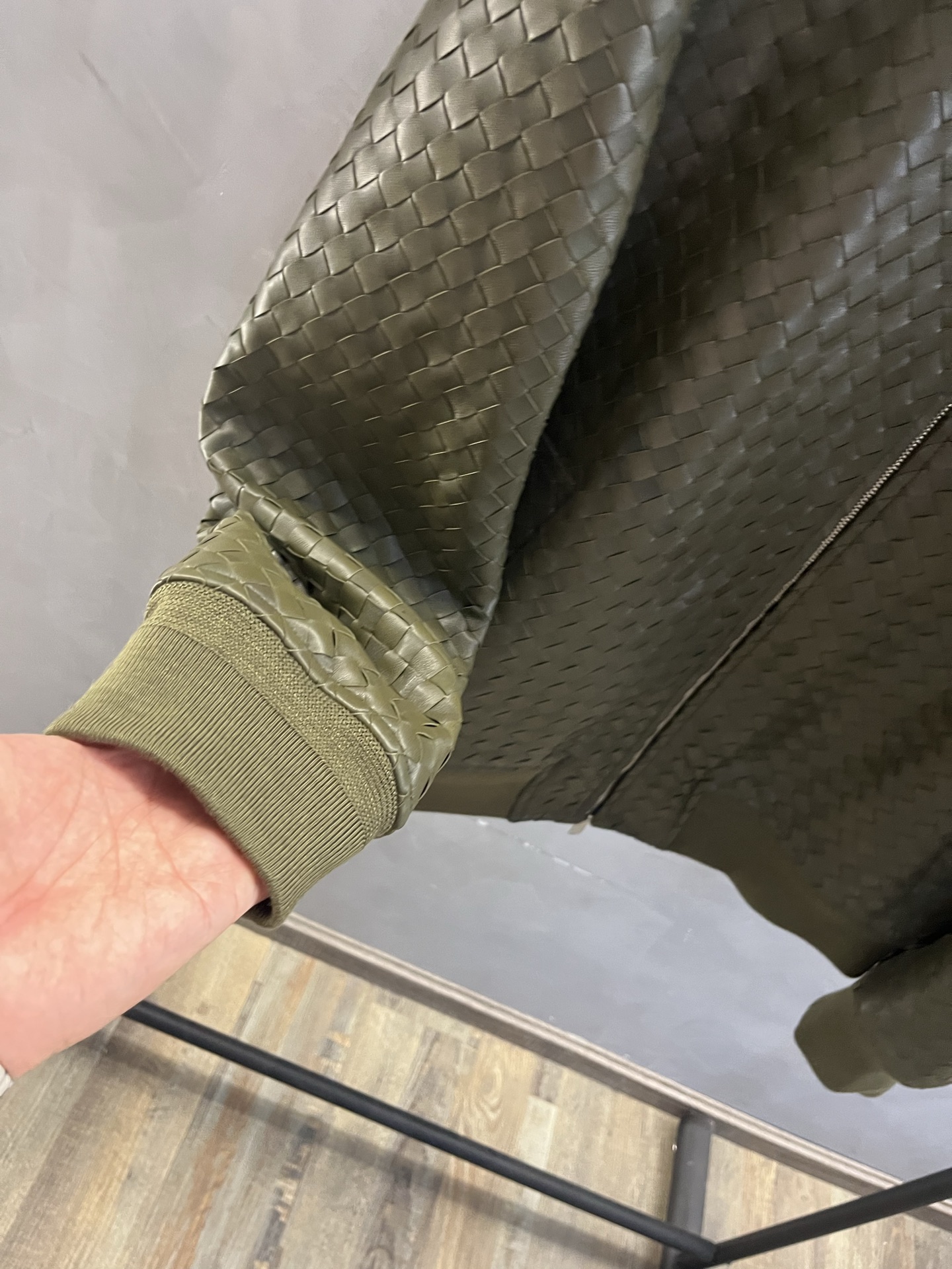 Hong Kong counter authentic synchronized pure handmade stand-up collar lambskin woven leather jacket. BV's bulk hardware and washing are all 1:1 replicas. The entire garment pieces use handmade weaving craftsmanship, which is time-consuming as expected, testing craftsmanship skills during idle time. The ribbing also uses lambskin ribbing, matching the garment itself to enhance its texture. This style is very time-consuming, with three colors available in stock.