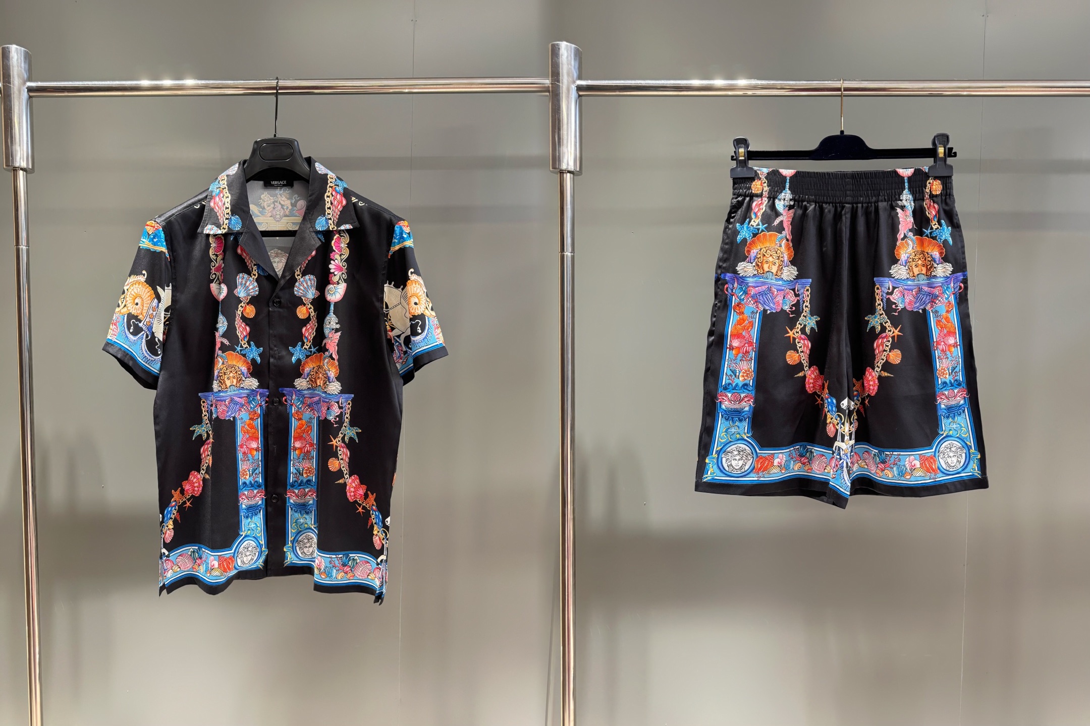 This short-sleeve regular-fit shirt is meticulously crafted from silk twill fabric, adorned with a Coral Theatre print depicting dramatic corals, shells, and mermaids. The exaggerated and playful elements reflect the brand's eclectic artistic taste.