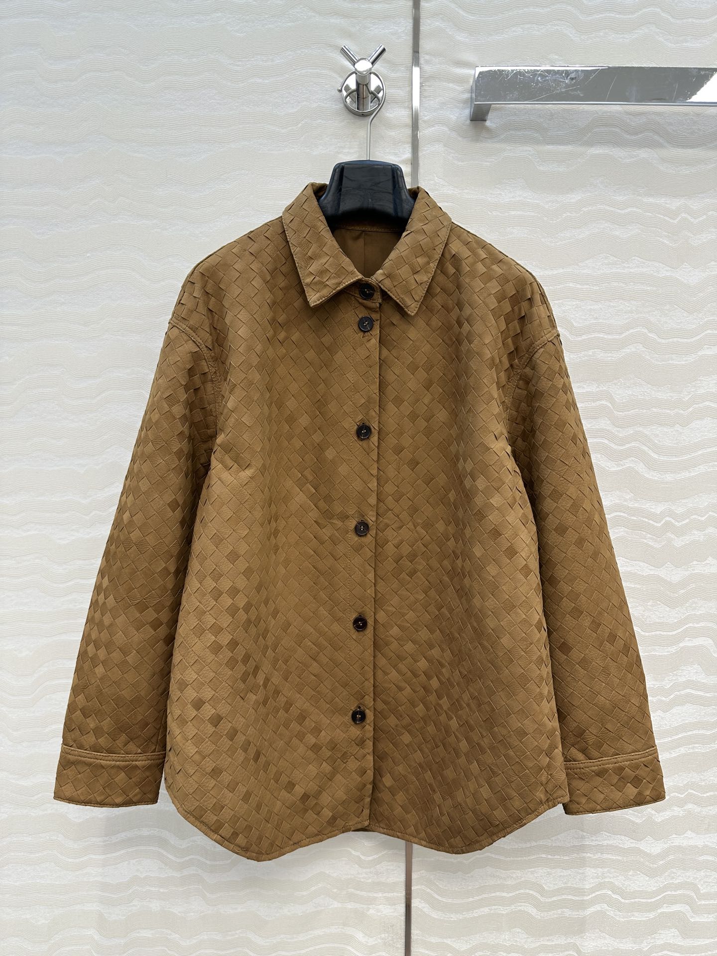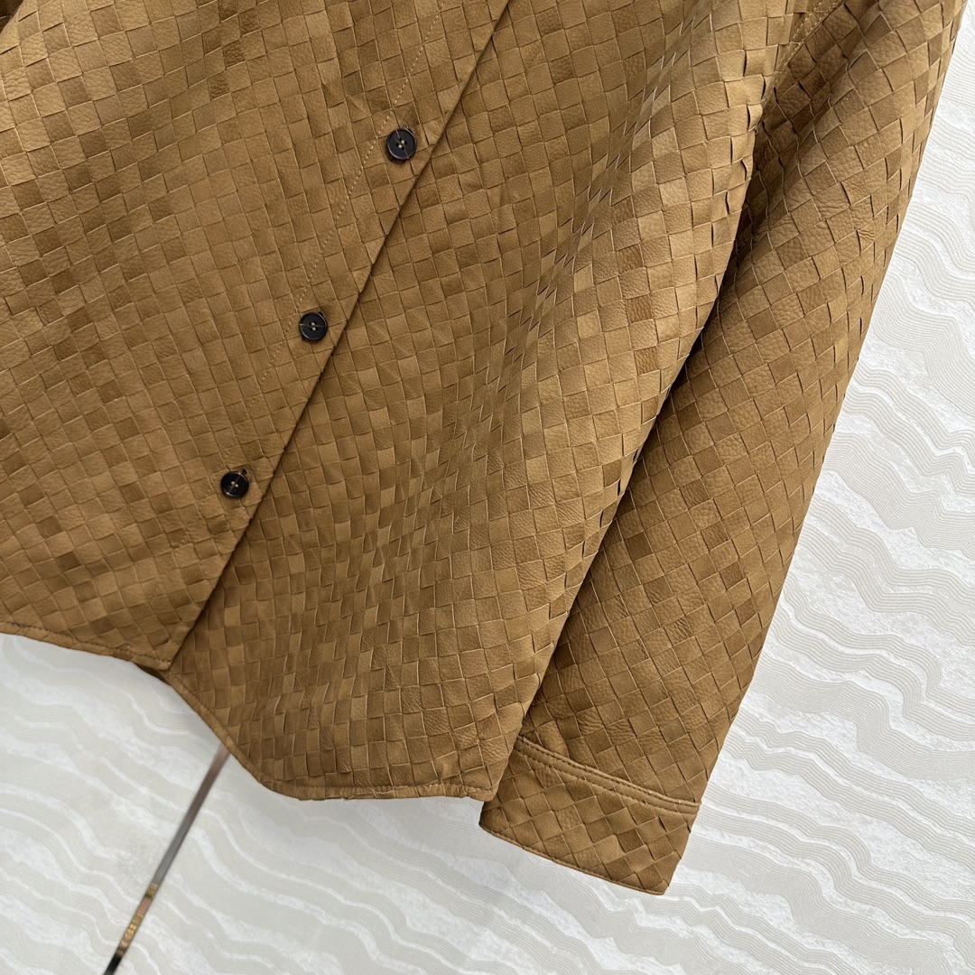 BV woven craftsmanship retro modern fashion must-have leather jacket! Oversized shirt jacket! Top imported 100% calfskin suede. Hand-woven craftsmanship, the leather is rich, oily, soft, and delicate! Retro American academic style classic design, super loved! Both edgy and chic, casual lazy style, elegant, fashionable, and high-end! Perfect silhouette, looks both edgy and chic when worn! Strongly recommended to keep for yourself! Two colors, sizes S-L. Size M: shoulder width 53, bust 110, length 76.