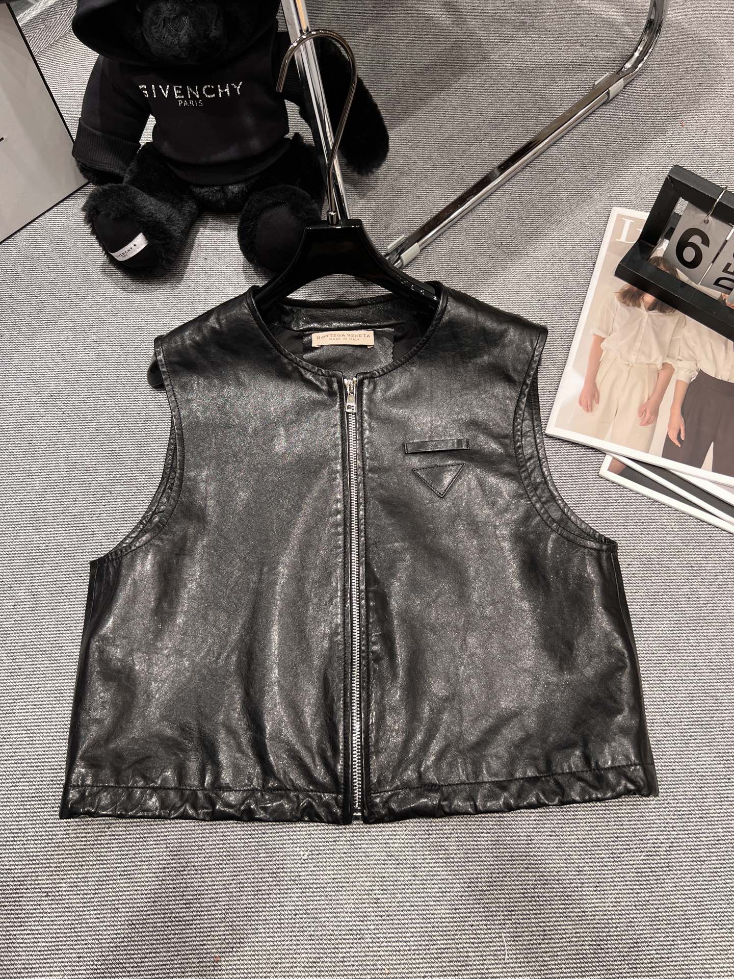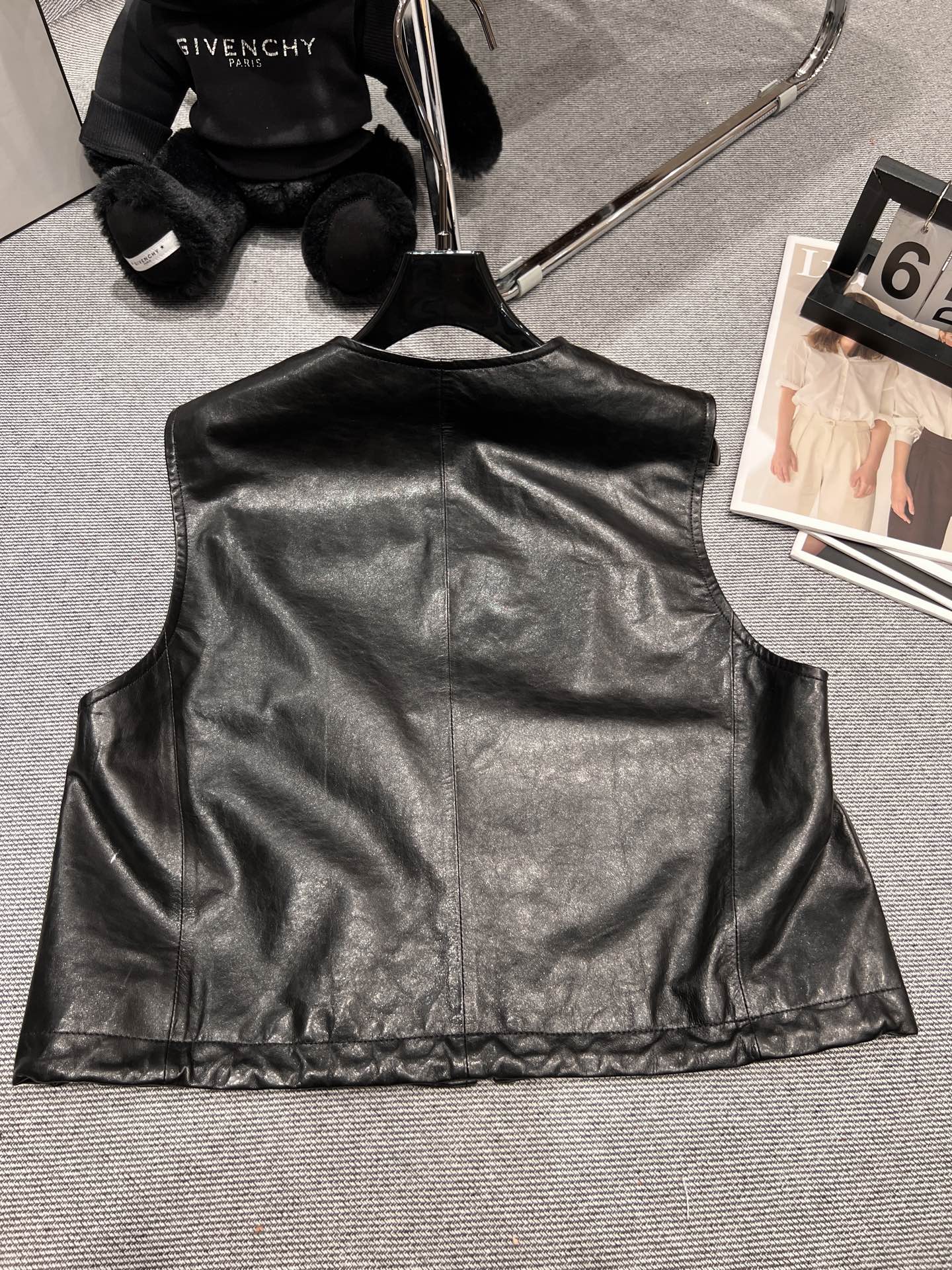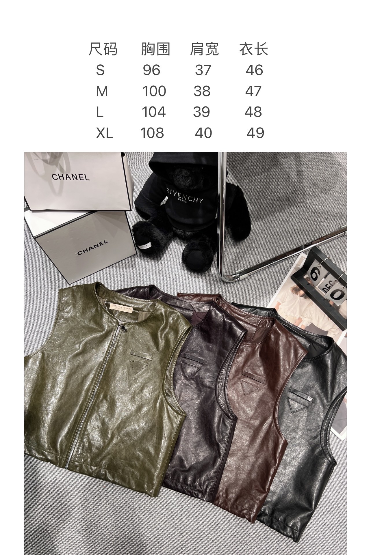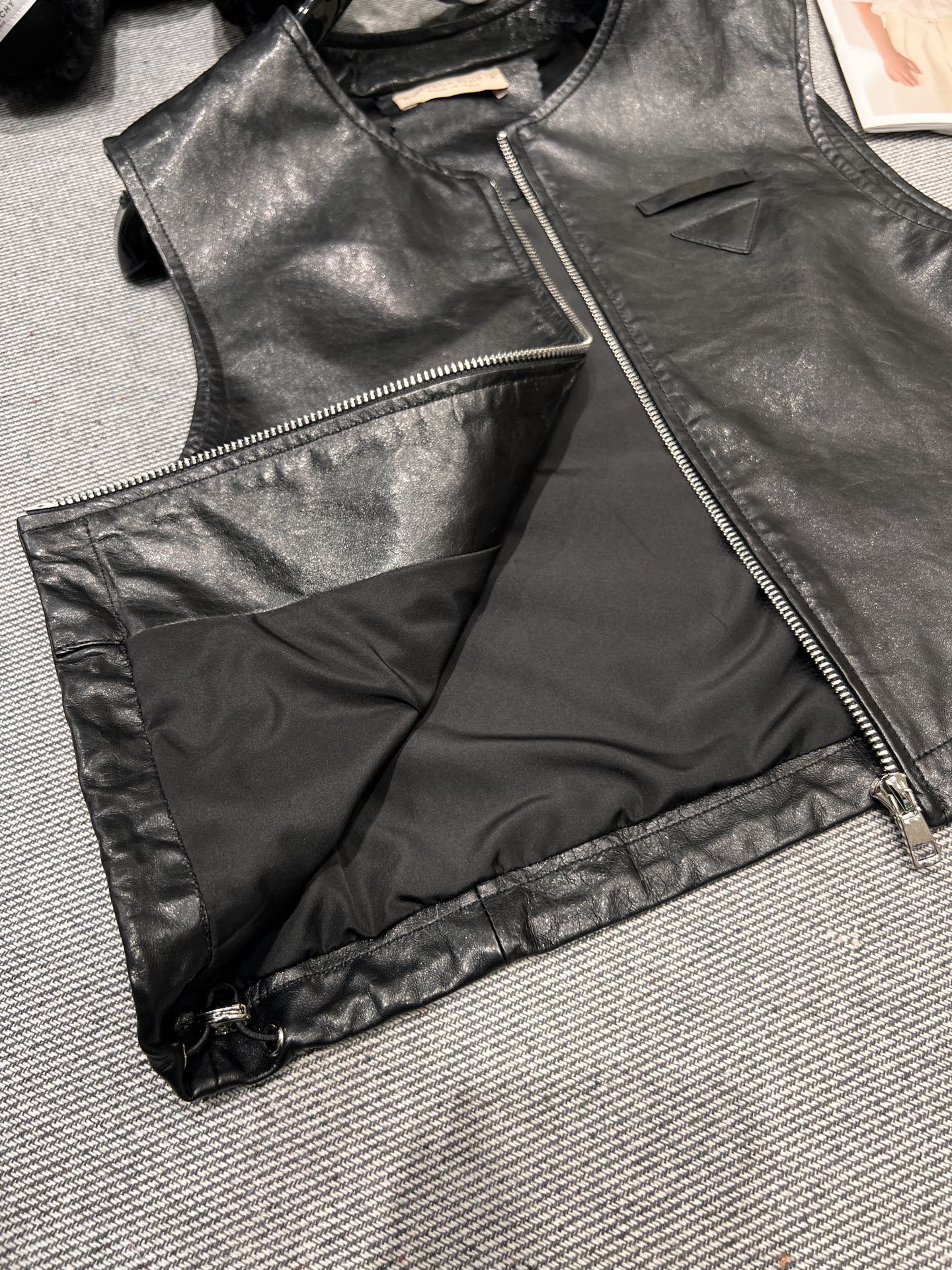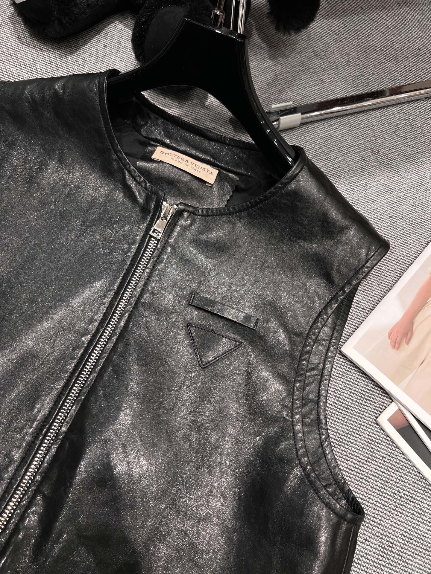 ——BV——2025 Early Autumn New Zipper Leather Vest, made of high-quality imported lambskin, also known as cold emerald leather, with delicate and soft texture, adjustable drawstring hem design S M L XL