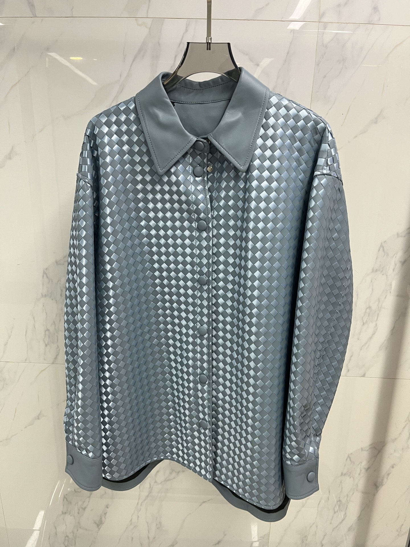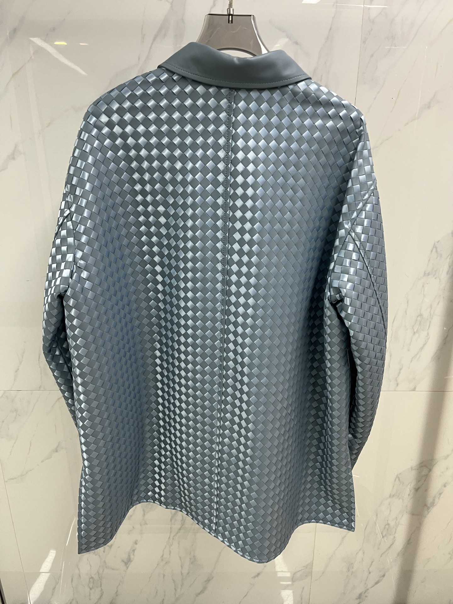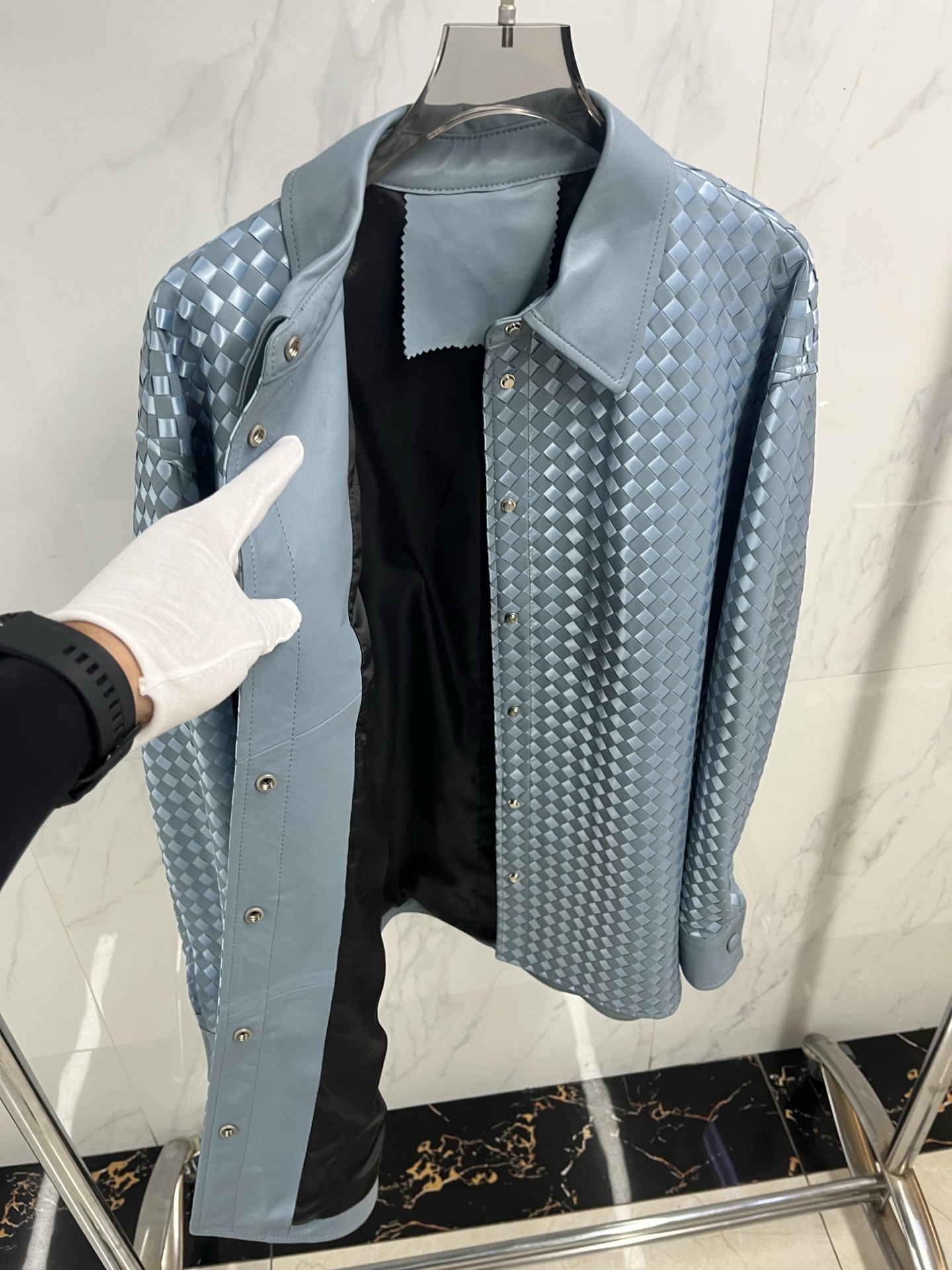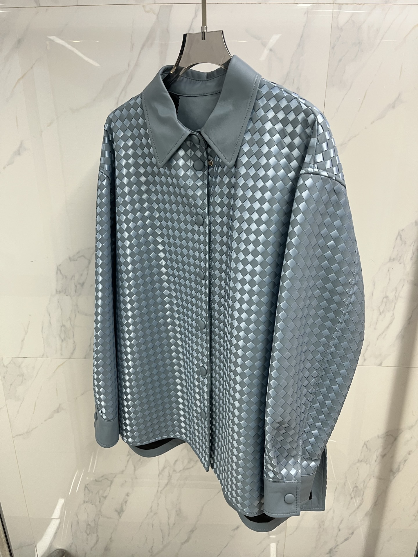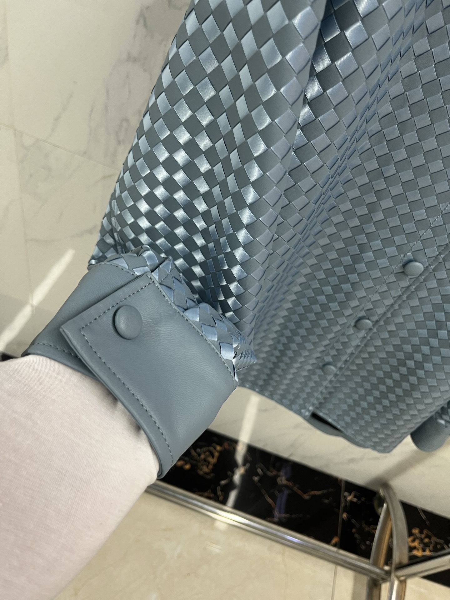 BV's woven fabric with leather Bottega Veneta woven leather jacket is the epitome of the brand's craftsmanship and design philosophy. Whether in material selection, production, or design, it reflects the brand's pursuit of perfection and respect for tradition. The most experienced artisans also need several days to weave a Bottega Veneta leather jacket, ensuring its exquisite craftsmanship. Three colors: blue, caramel, black. Highly recommended.
