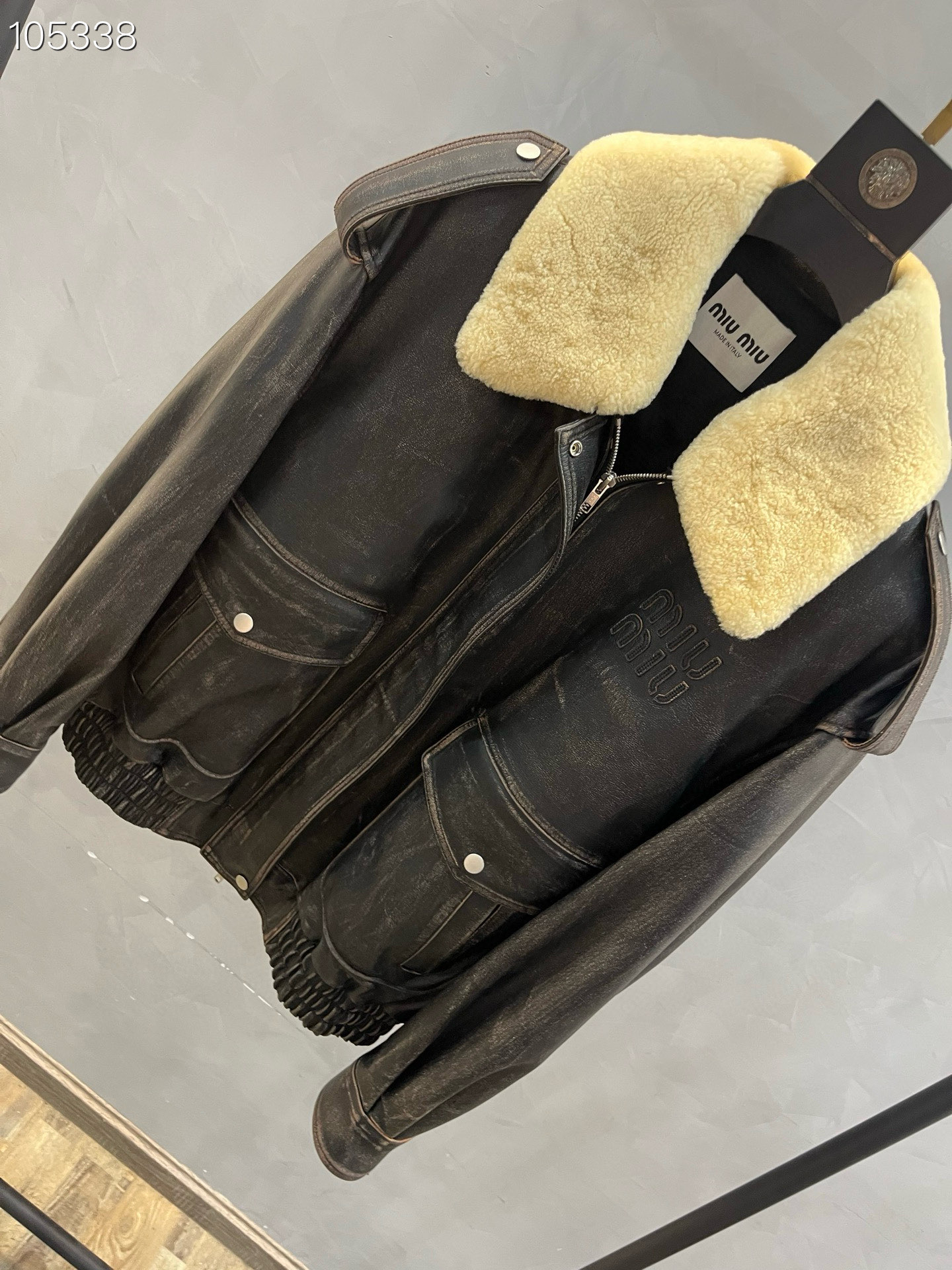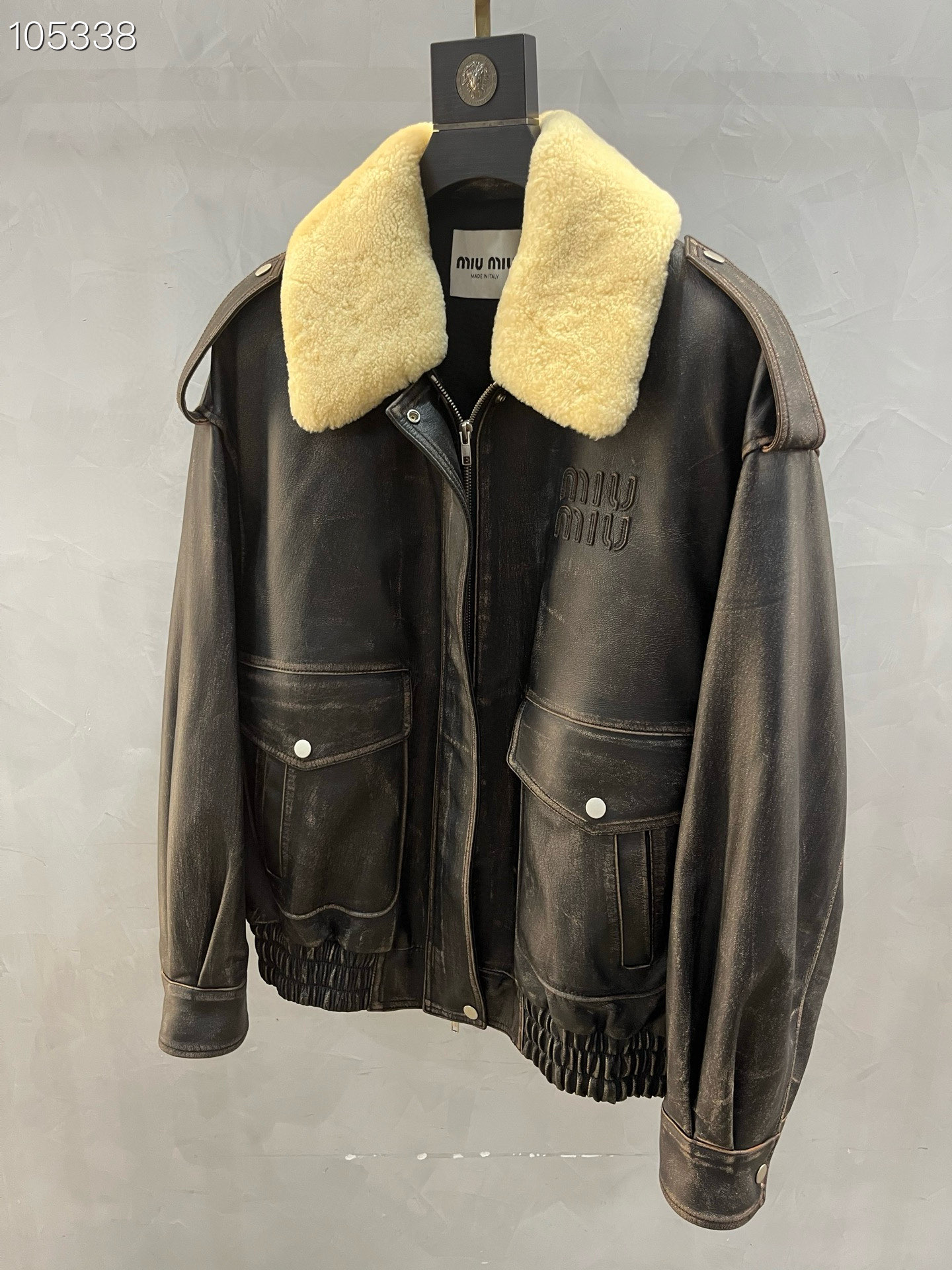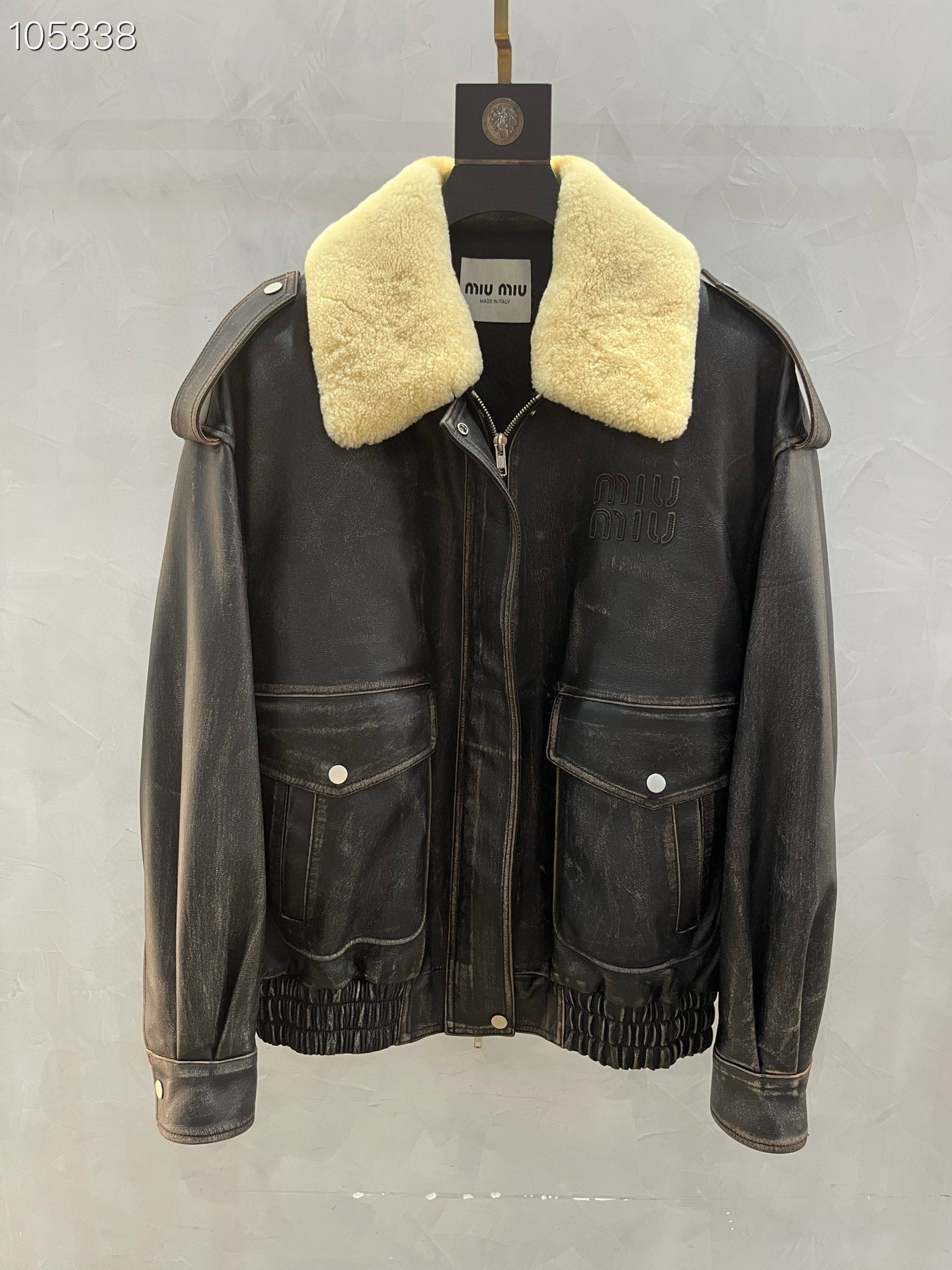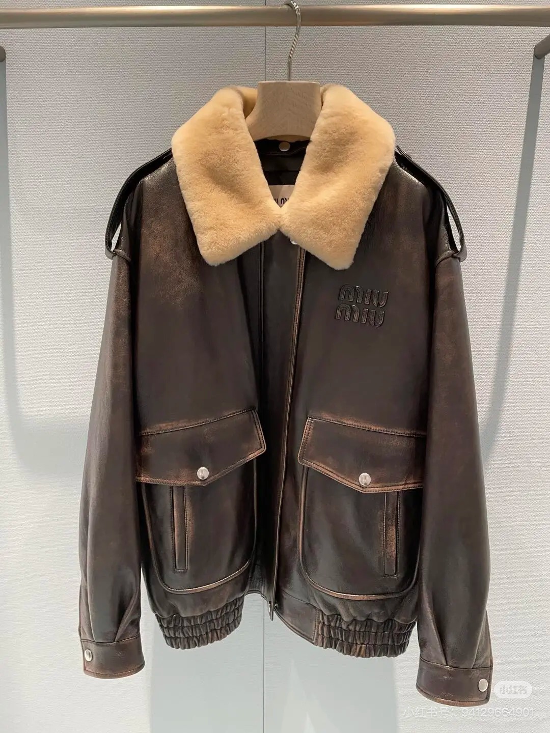 2025 Hong Kong same as in-store MIUMIU autumn/winter removable lamb fur collar imported washed cowhide leather jacket series lapel jacket. Selected high-quality imported cowhide, replicated original version, oversize fit.