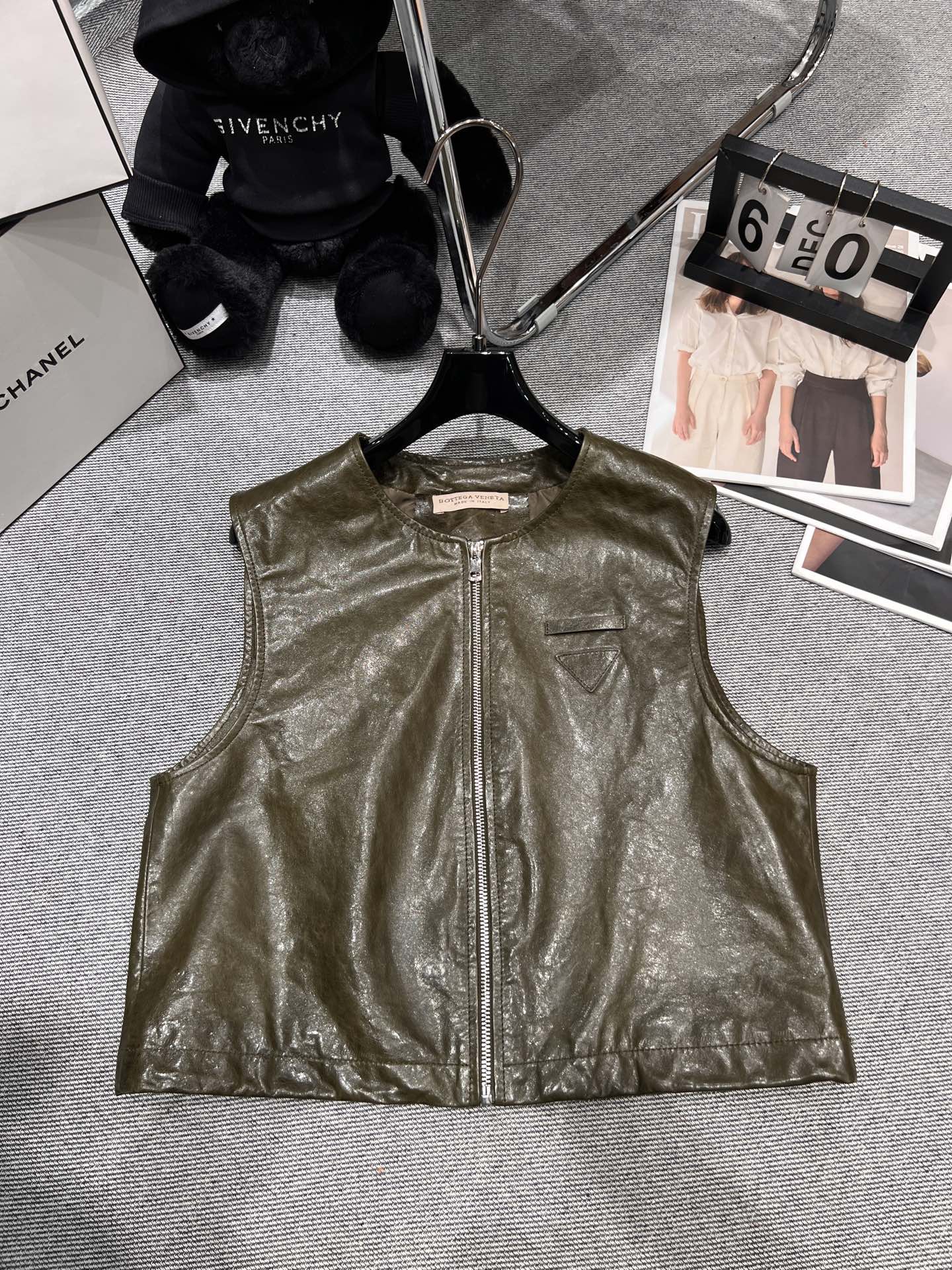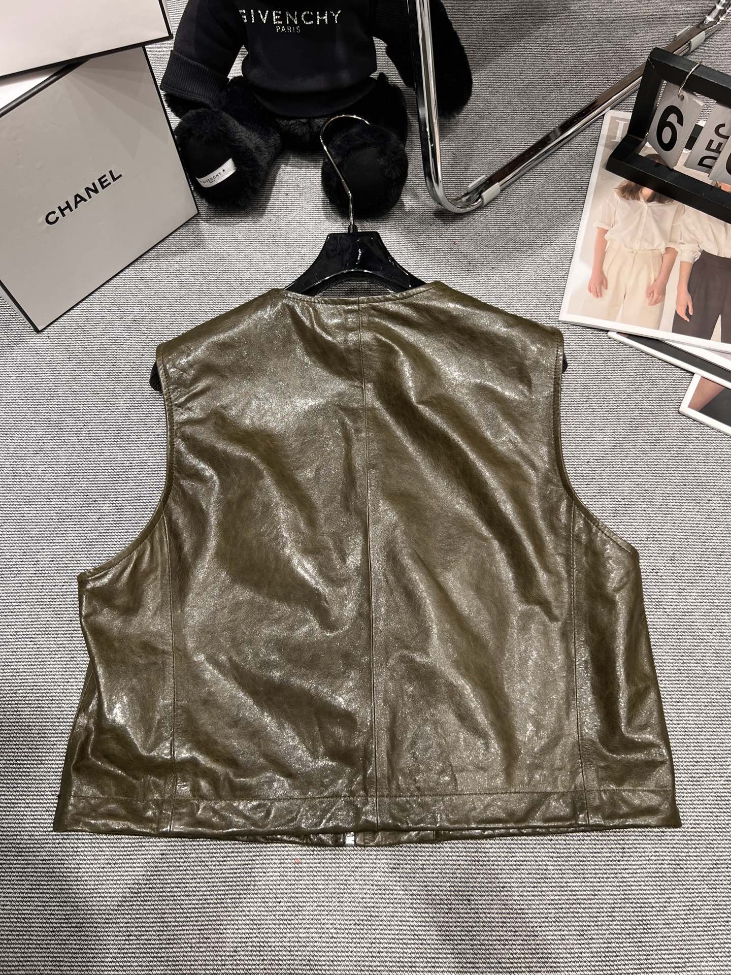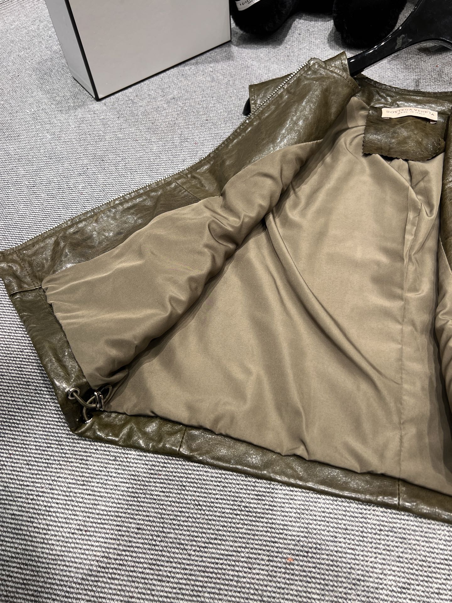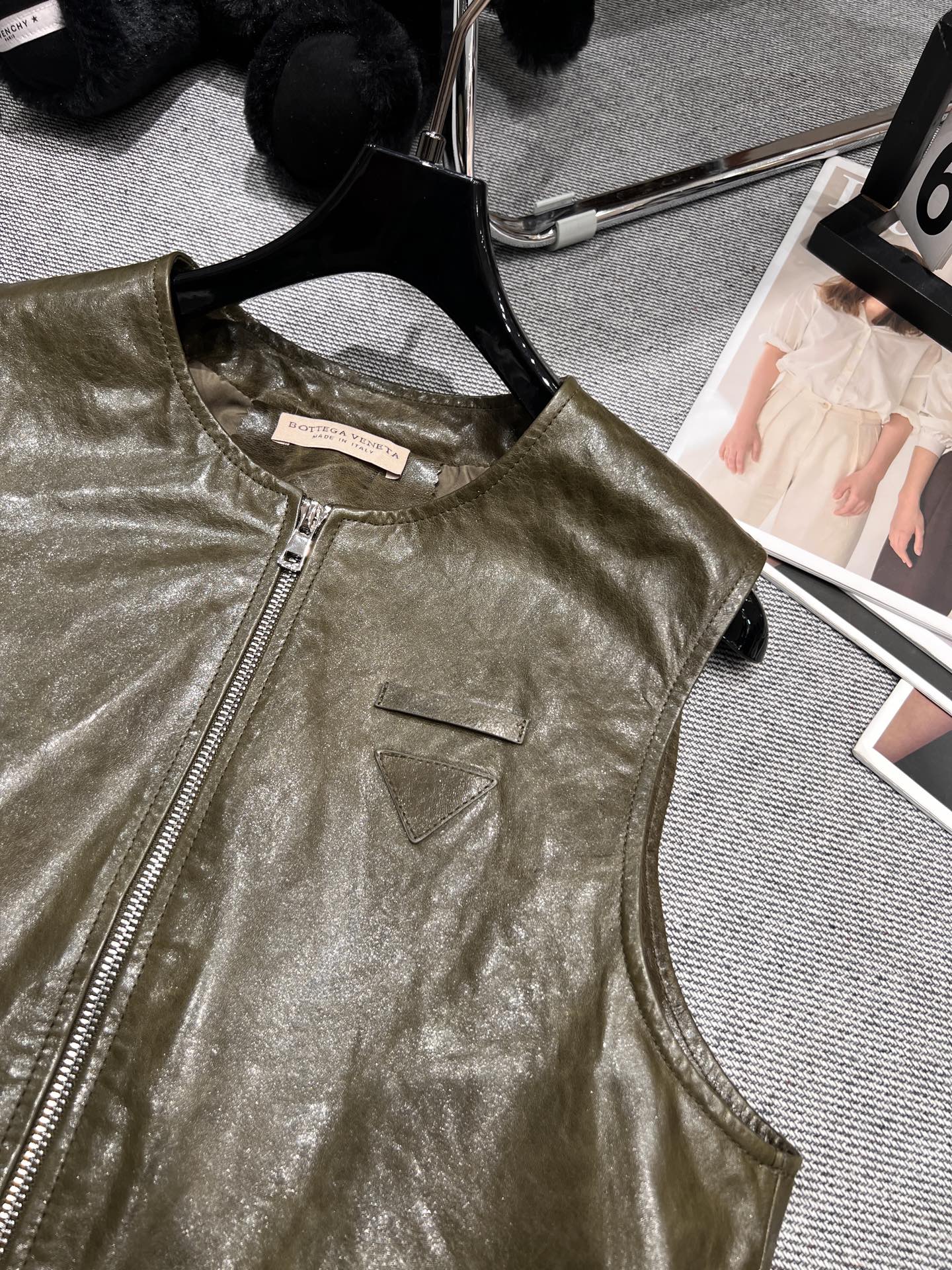 ——BV——2025 Early Autumn New Zipper Leather Vest, made of high-quality imported lambskin, also known as cold emerald leather, with delicate and soft texture, adjustable drawstring hem design S M L XL