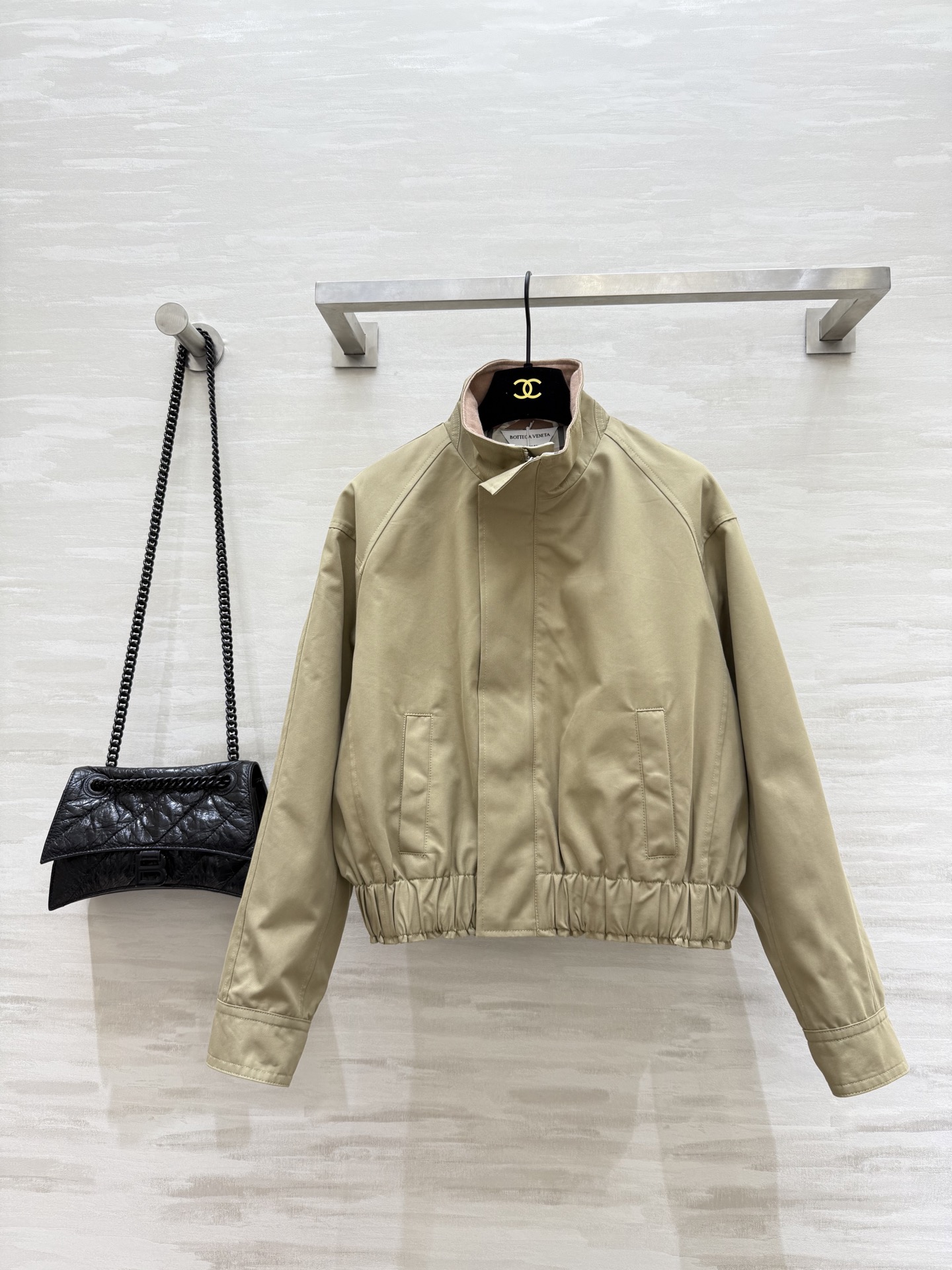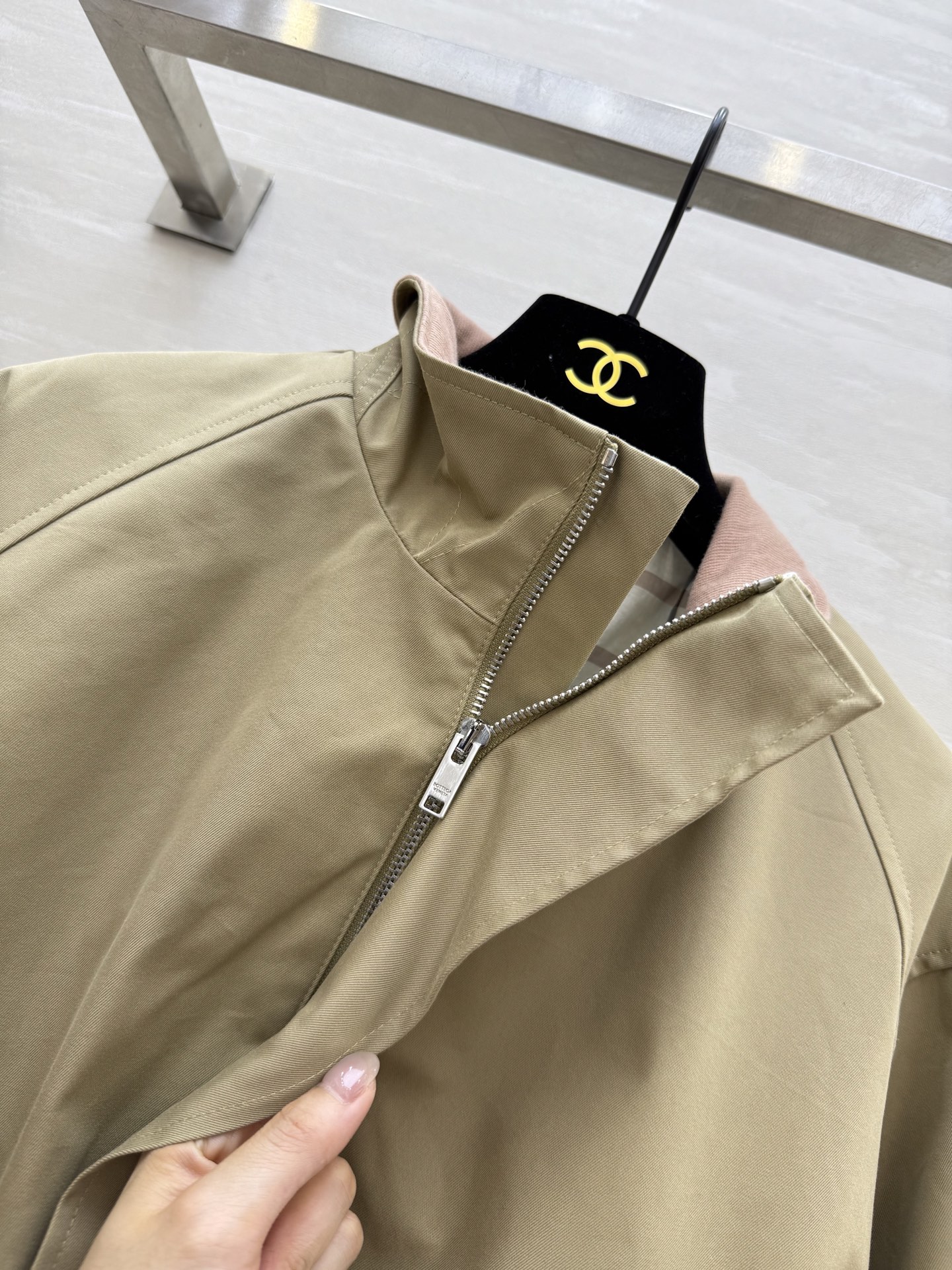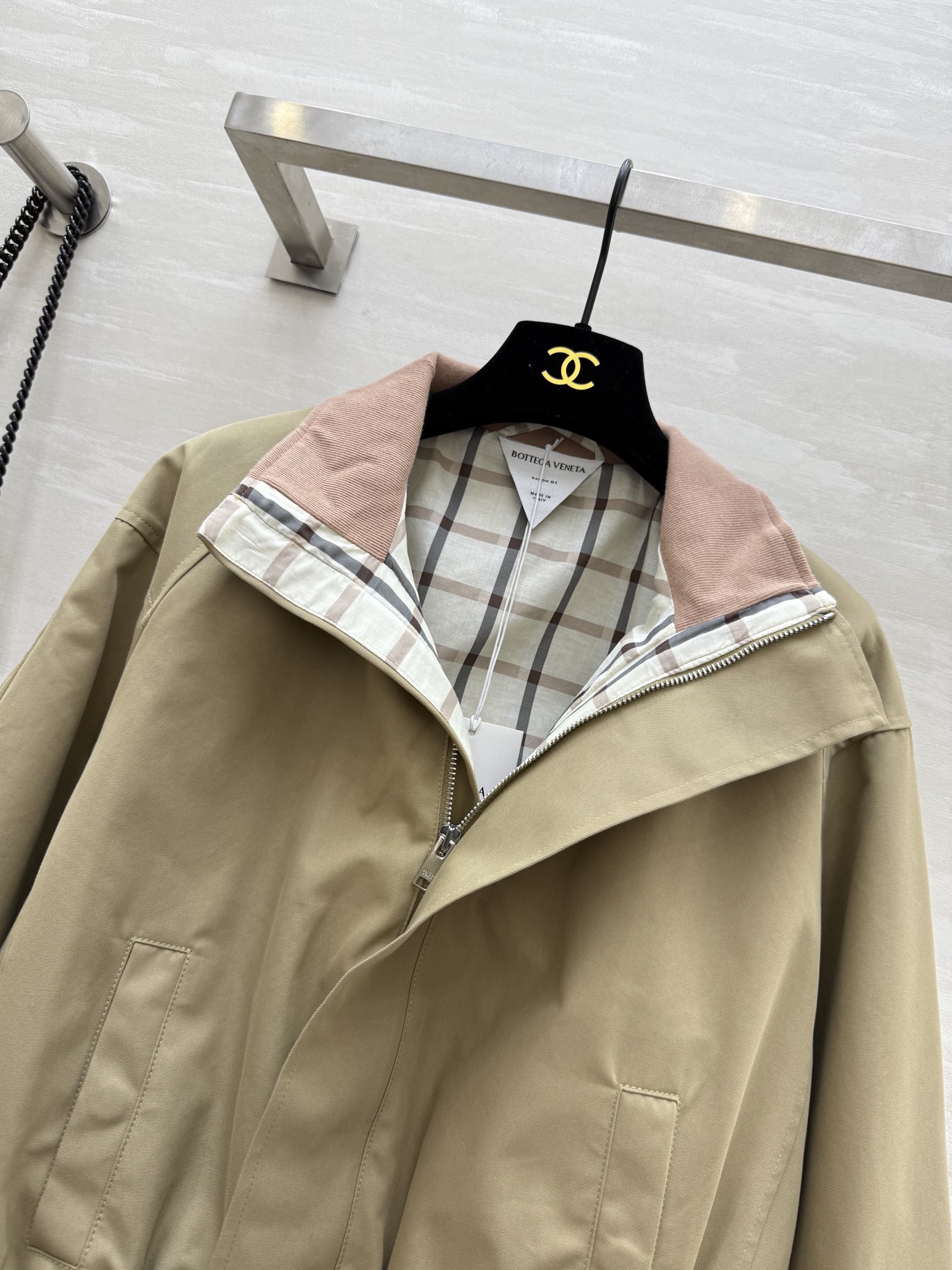 #Bv²⁵ Early Autumn New Arrival Plaid Lined Jacket Outfit Fashionable Wear Custom Imported High-Twill Cotton Fabric Crisp and Structured Ribbed Collar Design Retro Modern Tailored Silhouette Sophisticated and Stylish Drop Shoulder Elastic Waist Versatile and Flattering Slimming Fit Custom Plaid Lining Rich Details High-Quality Customization Ready to Ship Size: S/M/L (S Size Drop Shoulder Bust: 110, Length: 48)