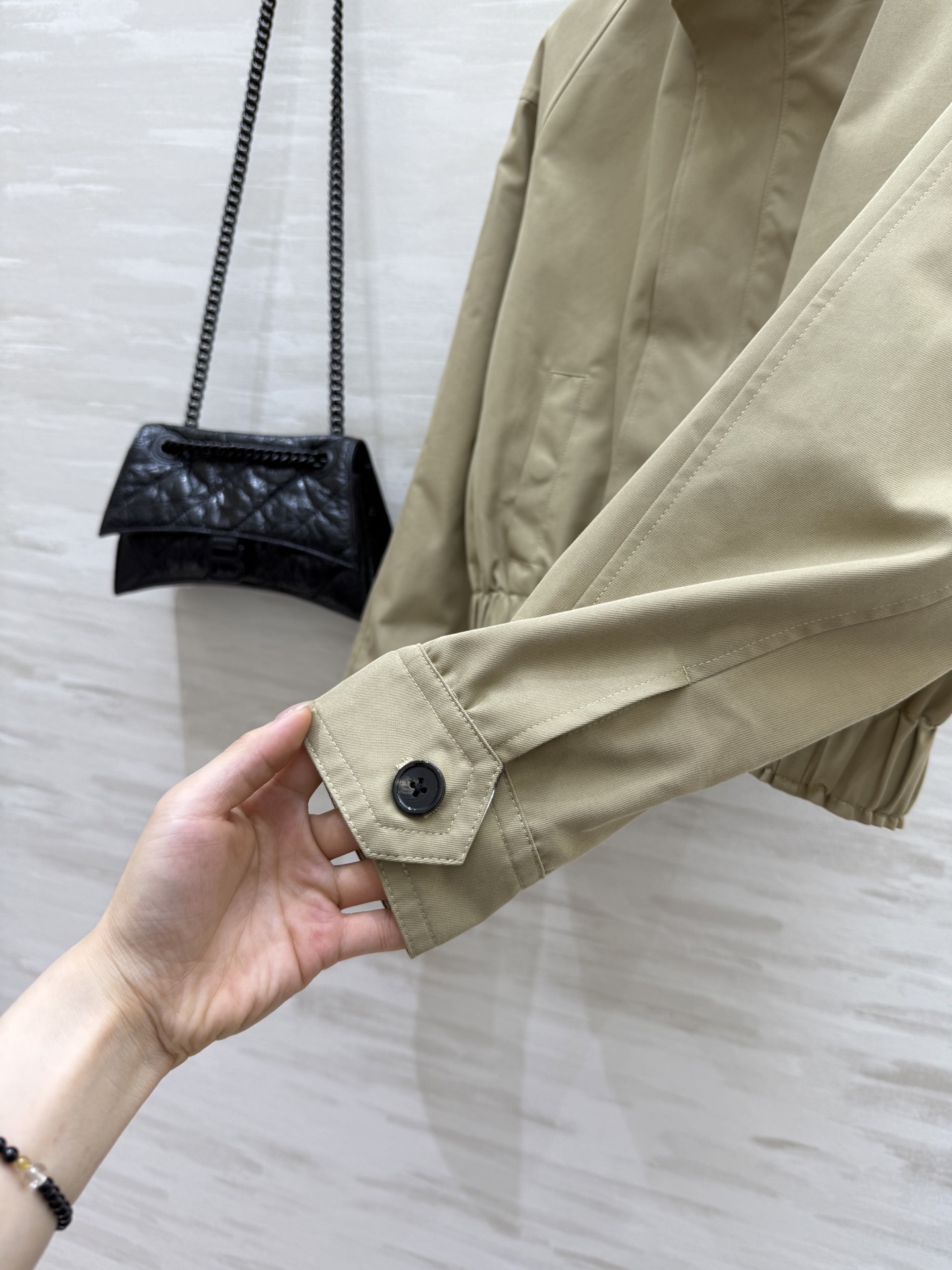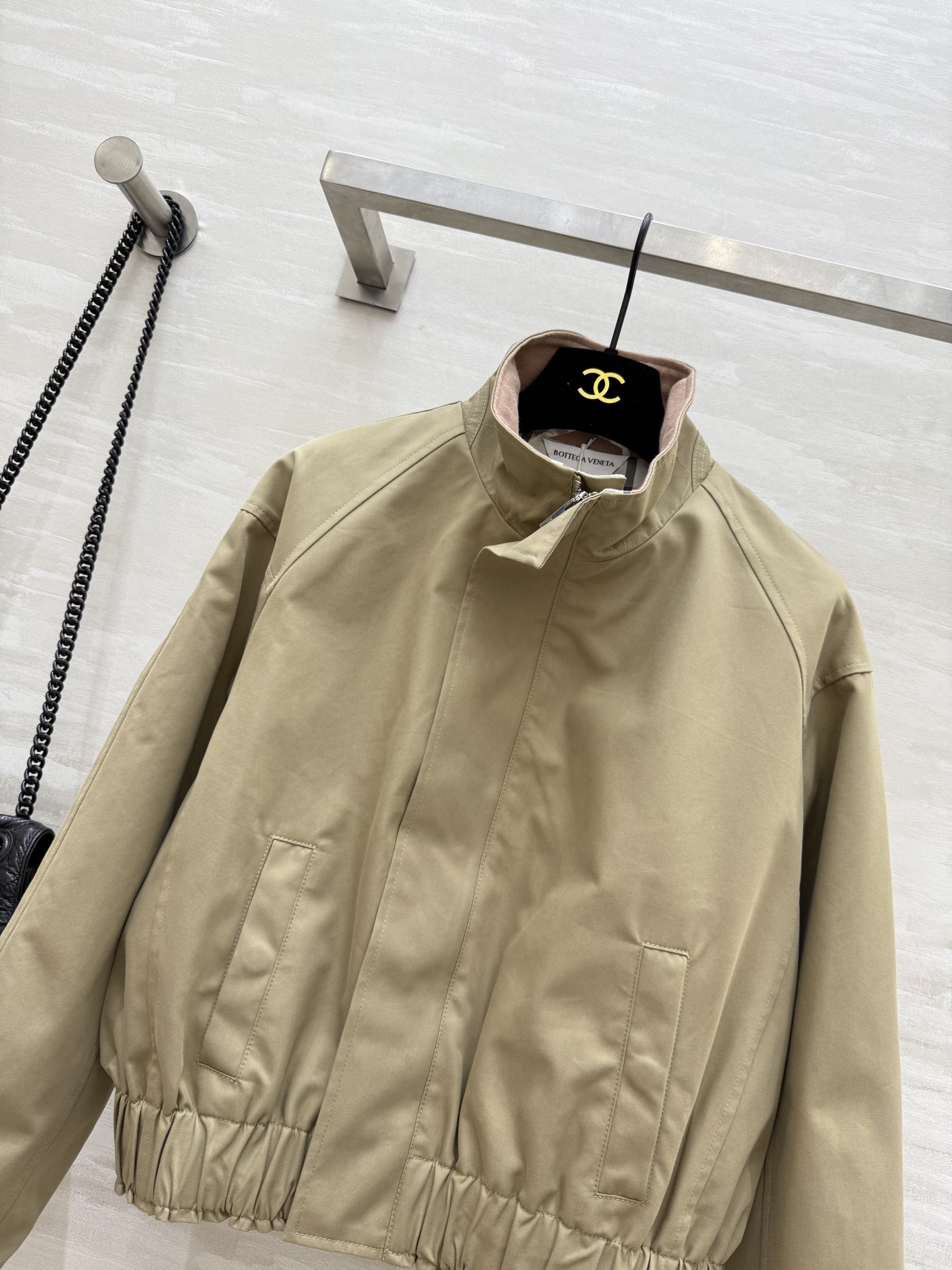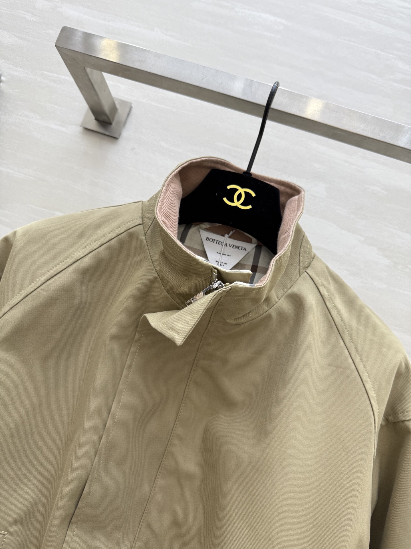 #Bv²⁵ Early Autumn New Arrival Plaid Lined Jacket Outfit Fashionable Wear Custom Imported High-Twill Cotton Fabric Crisp and Structured Ribbed Collar Design Retro Modern Tailored Silhouette Sophisticated and Stylish Drop Shoulder Elastic Waist Versatile and Flattering Slimming Fit Custom Plaid Lining Rich Details High-Quality Customization Ready to Ship Size: S/M/L (S Size Drop Shoulder Bust: 110, Length: 48)