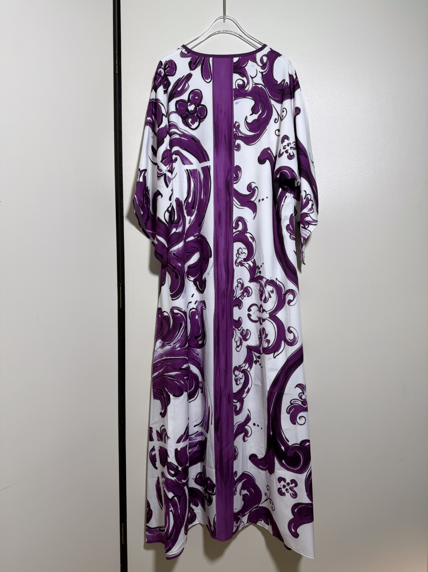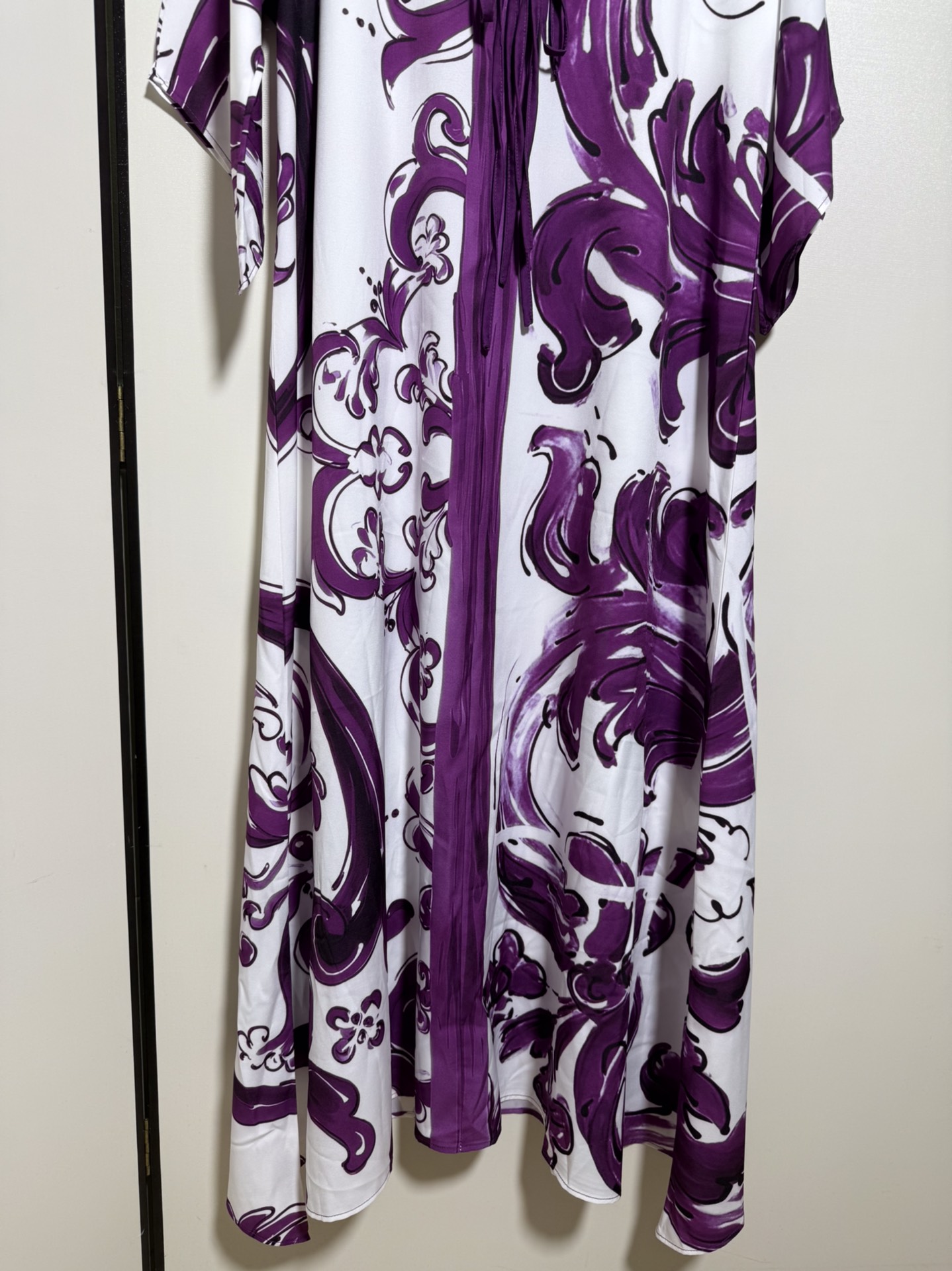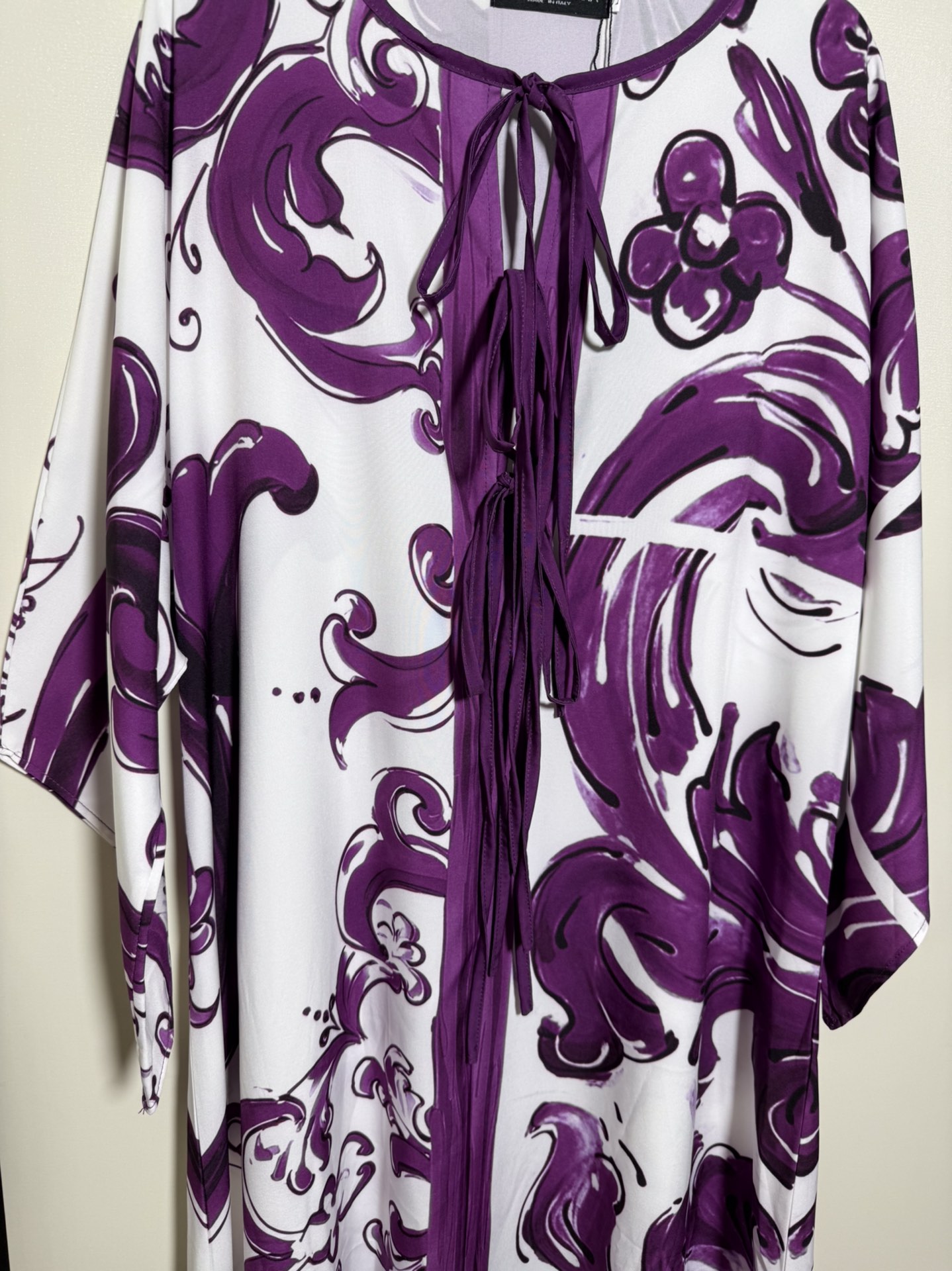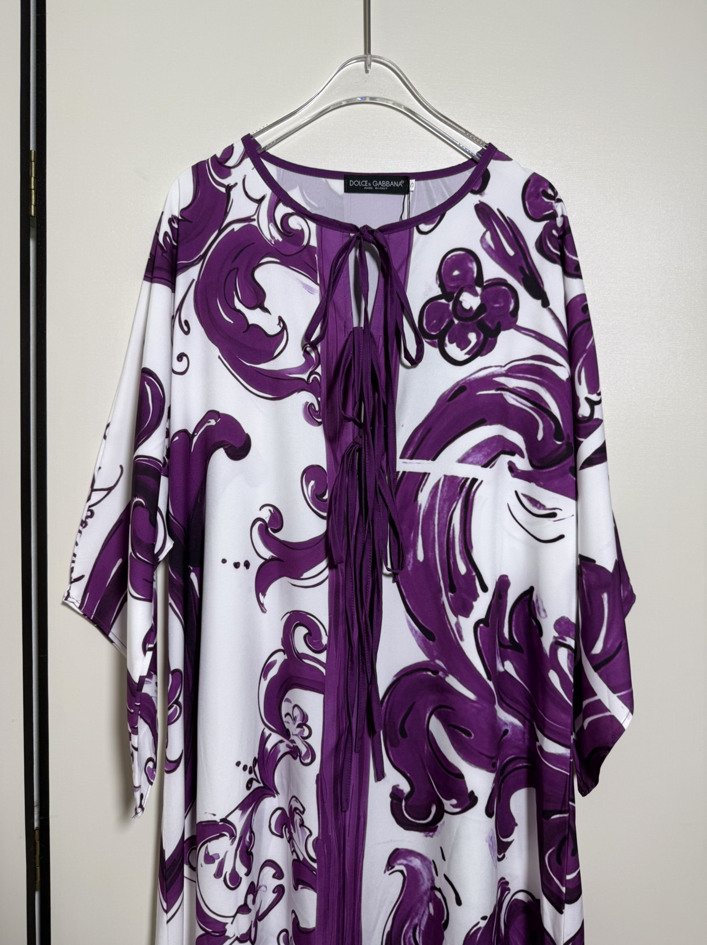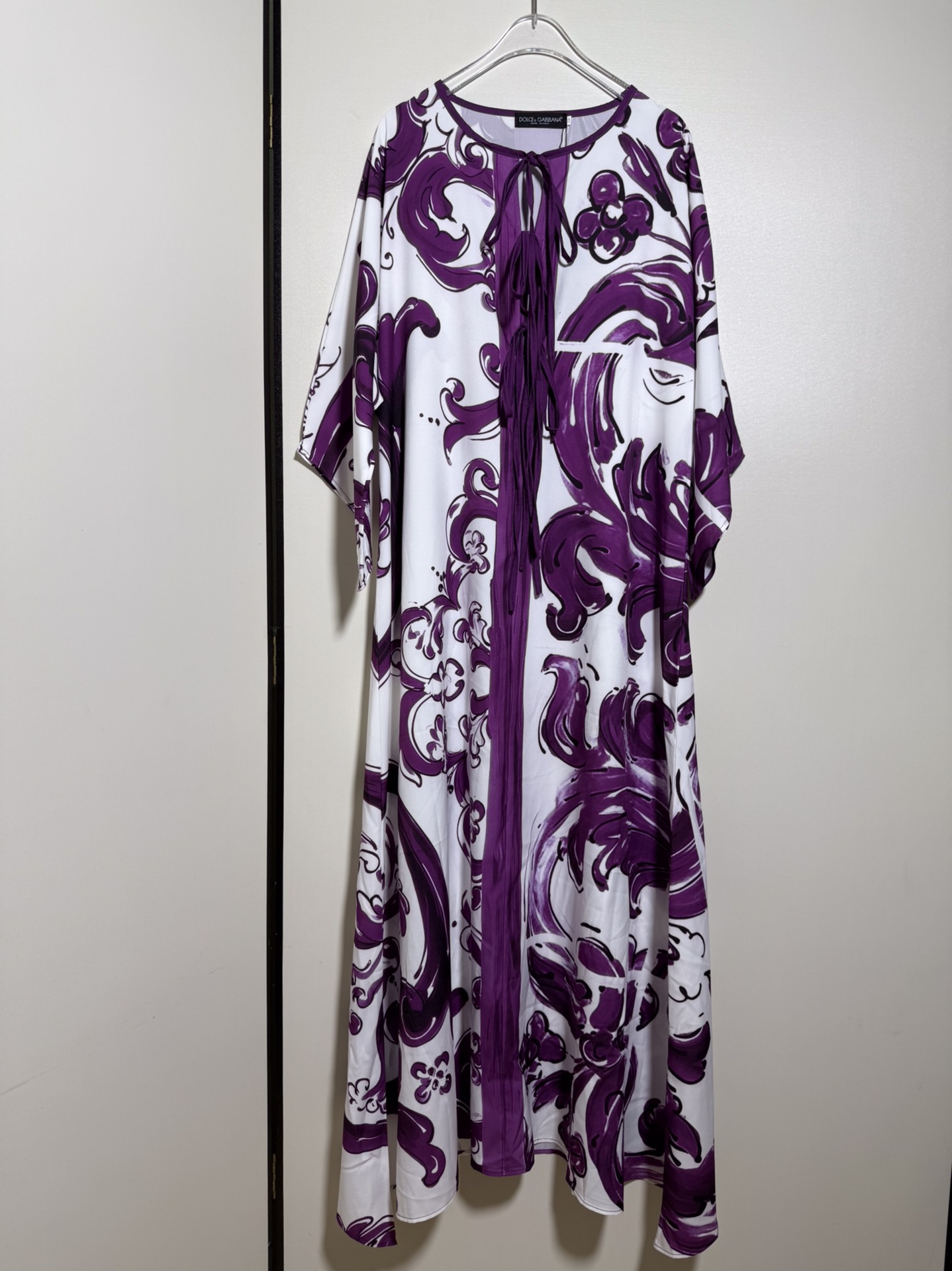 D&G/Dolce&Gabbana Women's Floral Porcelain Print Purple Blue and White Porcelain Tie-Dye Fringe Bow Loose Casual Long Dress. Sizes S, M, L, XL