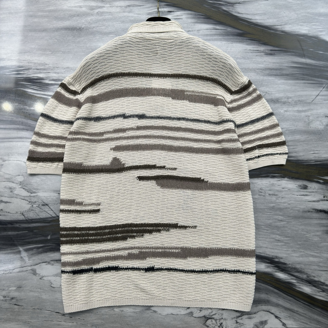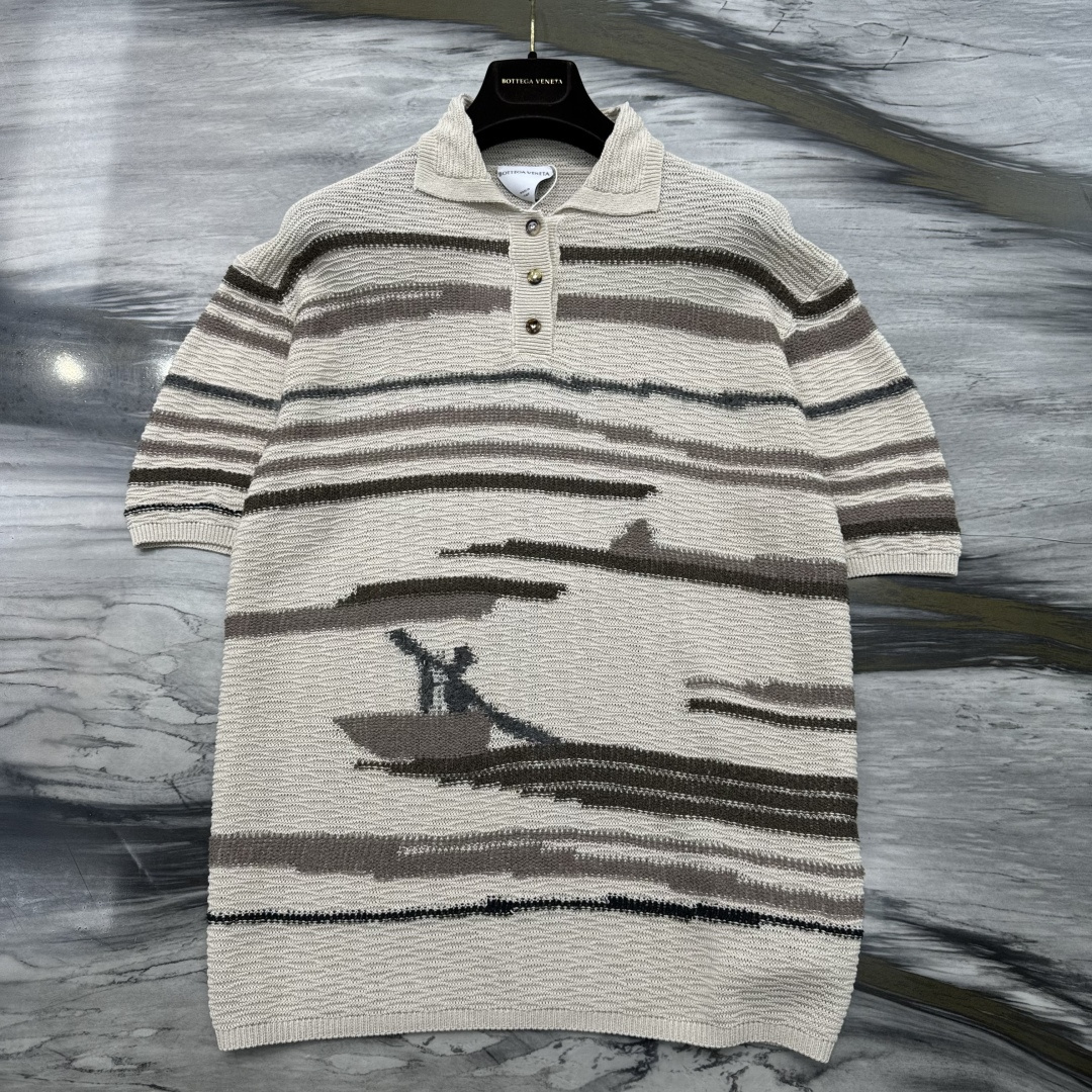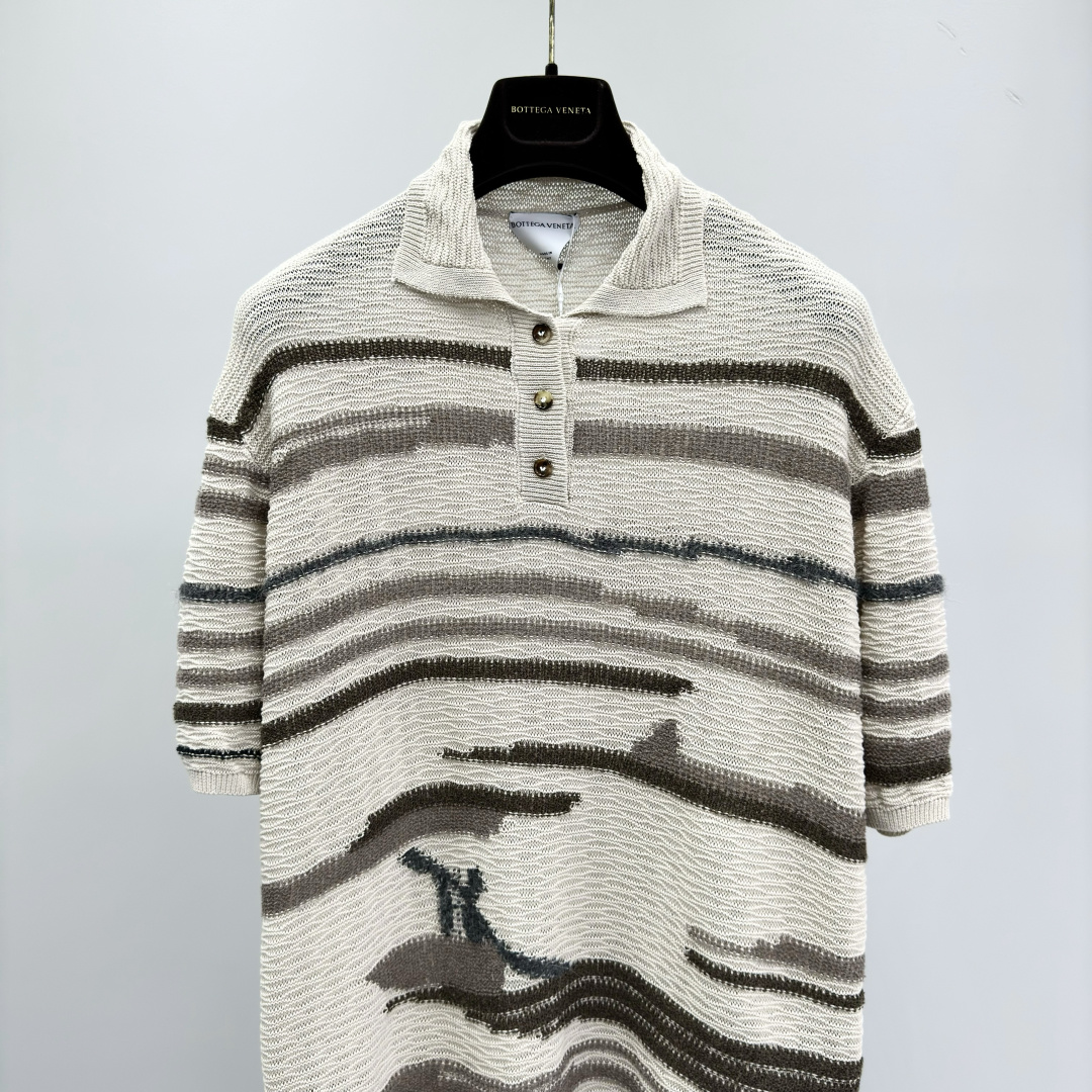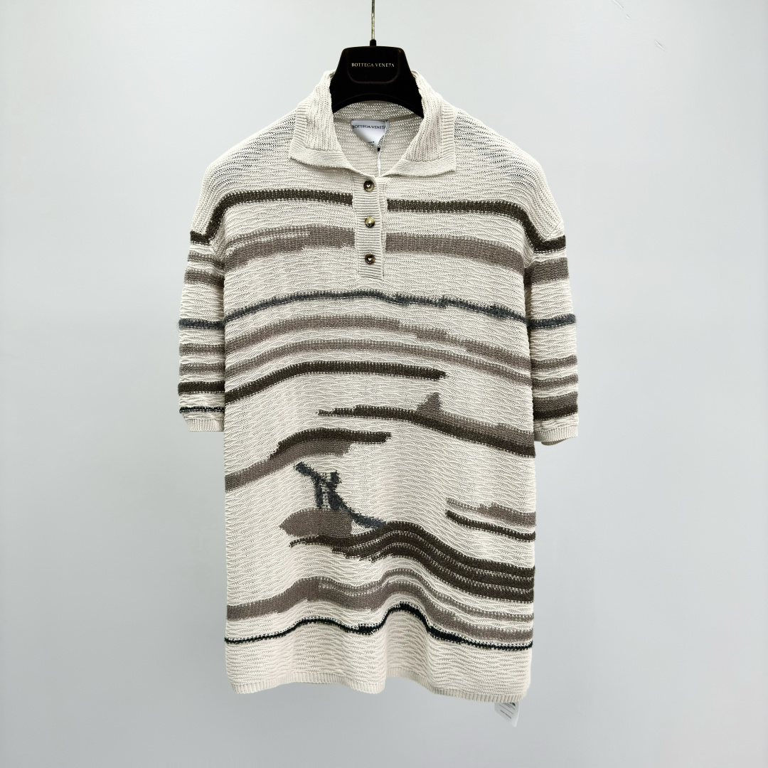 Bottega Veneta SS25 Intarsia Pattern Short-Sleeve Polo Shirt Men's Multi-Color