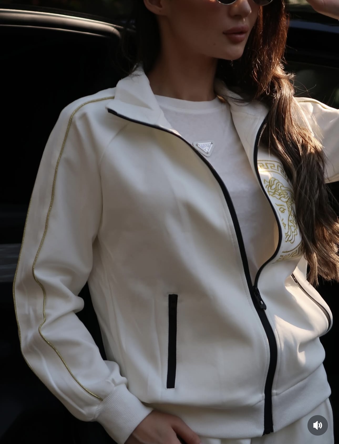 Style No. 20223641 Versac* new sportswear set, Medusa embroidery pattern, stand-up collar long sleeve zippered jacket + elastic waist casual trousers, white, red, black, S-XXL, [L size; bust 102, sleeve length 68, garment length 61; waist 68 elastic, length 96]