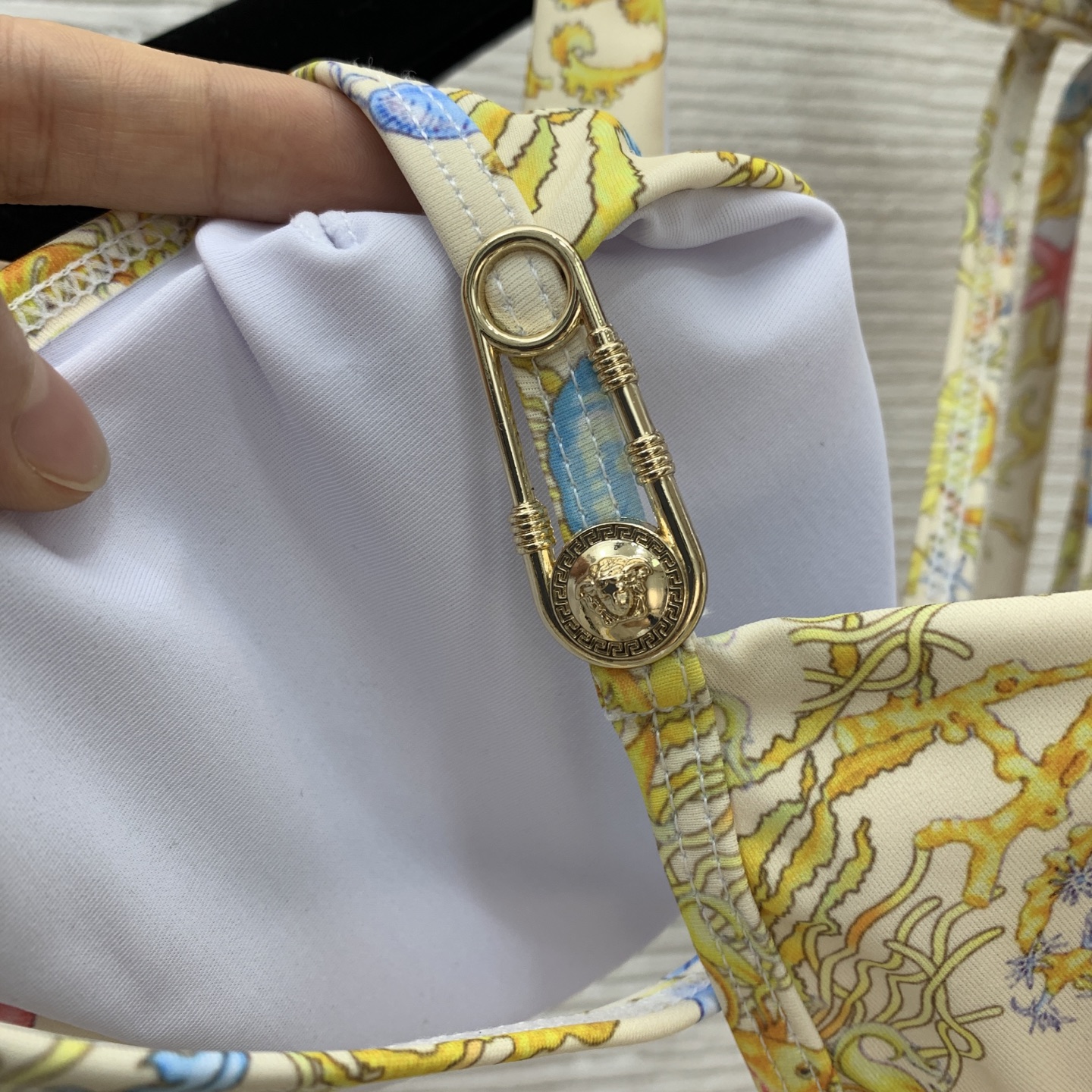 Style Number D25080543 VERSAC New Style Medusa Brooch Clip Accessory Decorative Sexy Lingerie Set! Strap Halter Triangle Cup Bra Underwear + Triangle Panties Bikini Separate Swimsuit! Essential for Beach Vacation Hot Spring Pool! Blue, Yellow, S M L XL