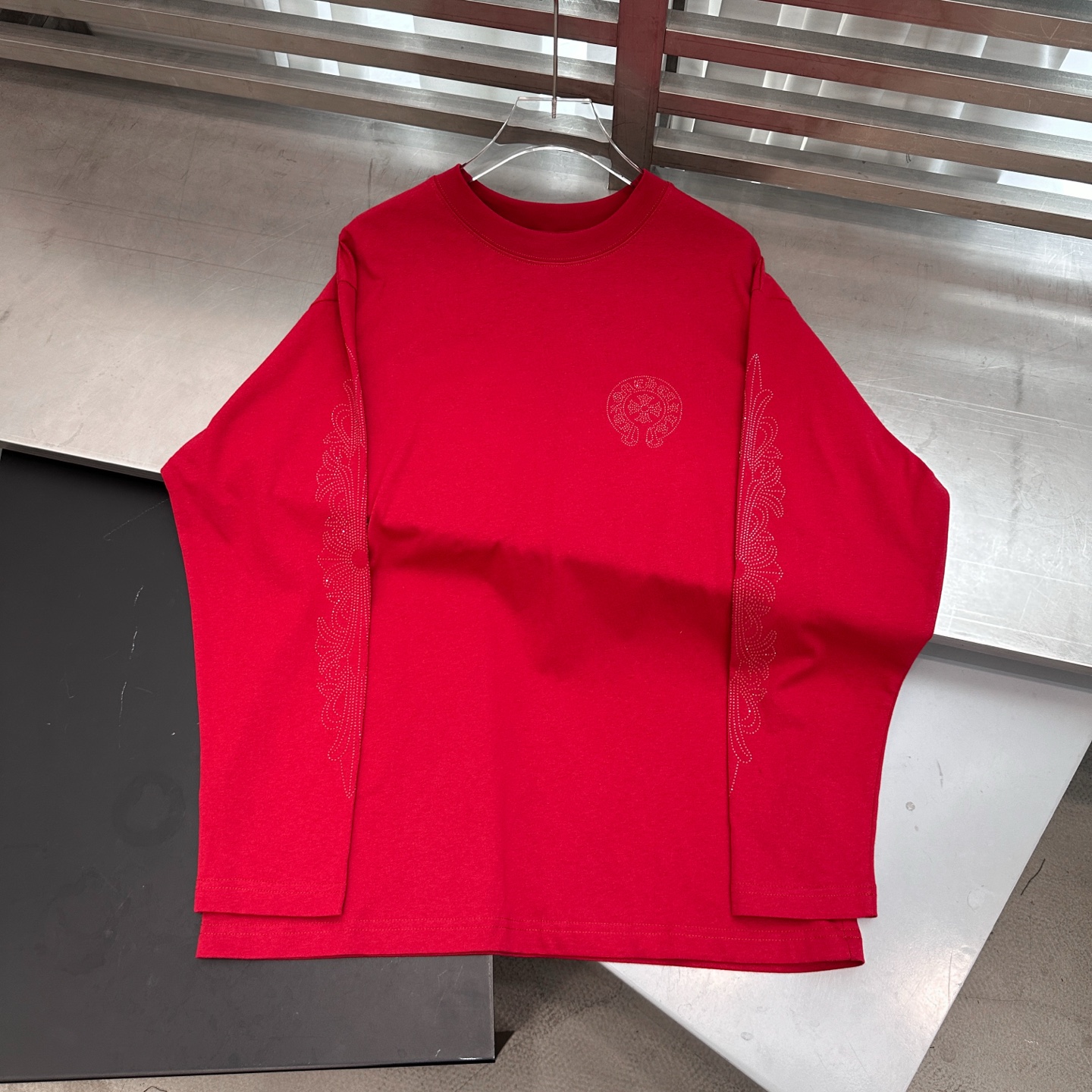 200 Cross Heart | New long sleeve T, garment washed and hot fix rhinestone craftsmanship, casual fashion, sizes S M L