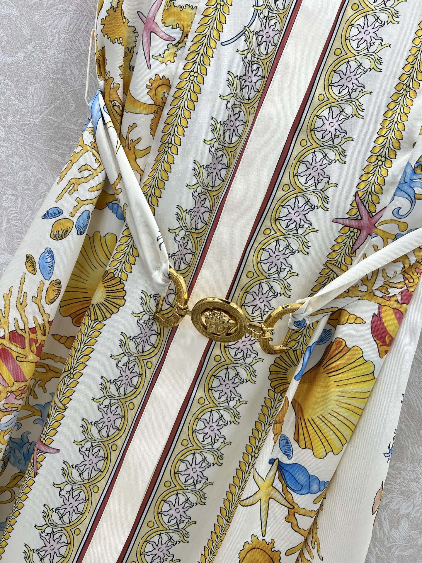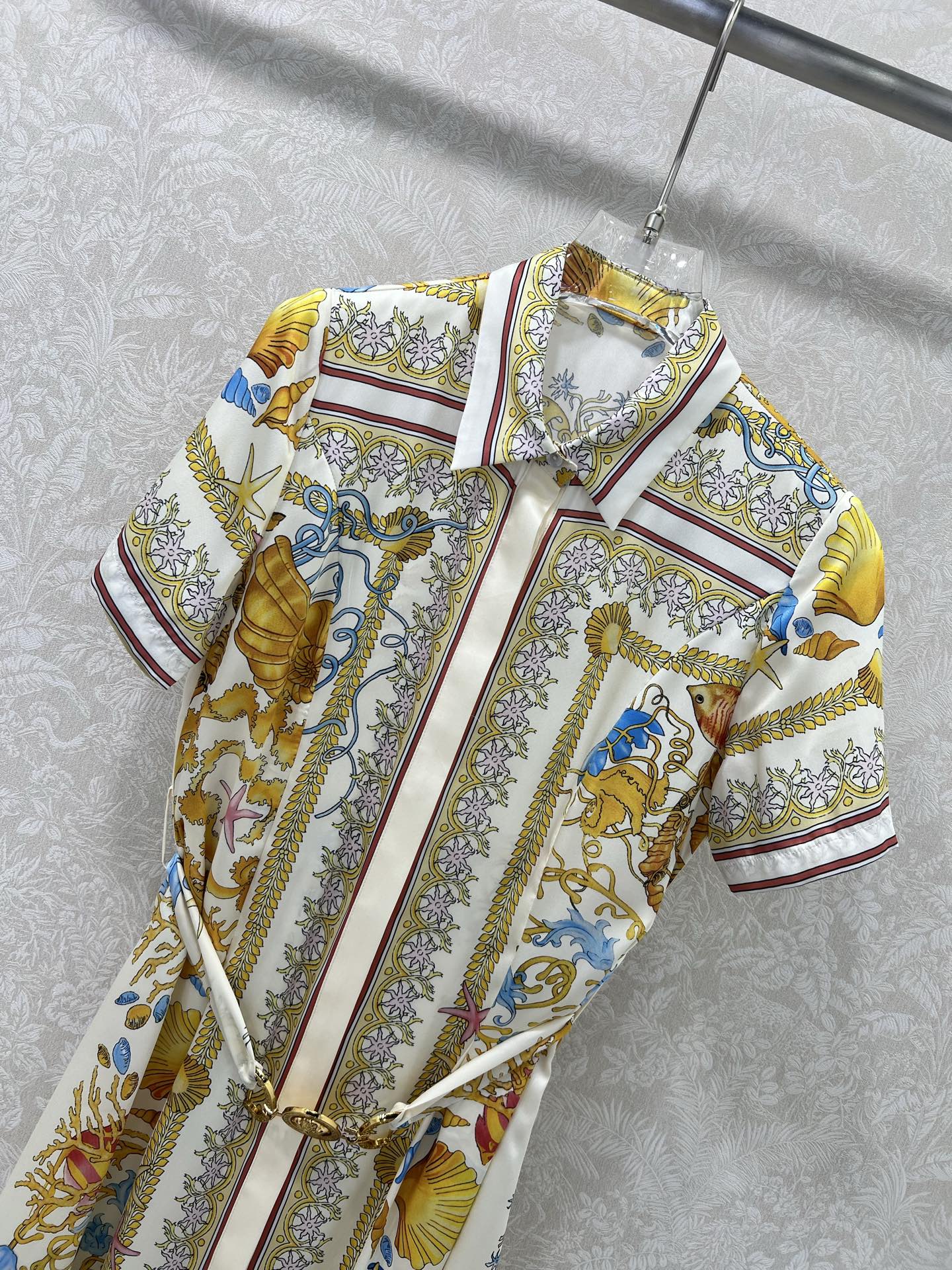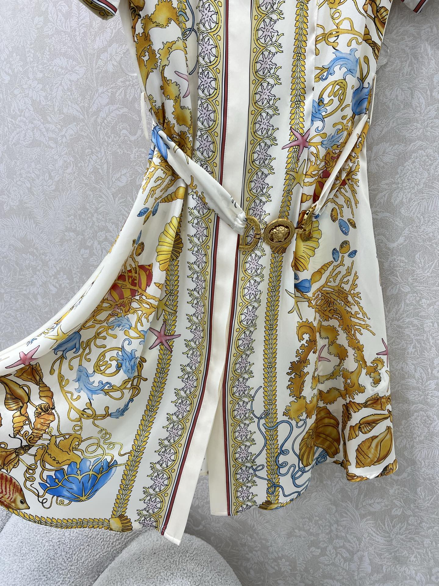 VERSAC*25 new floral short sleeve dress with classic Medusa gold accessory belt. Overall brand tonal printed dress with back letter logo. Super high-end feel, perfectly tailored to accentuate the waistline. Suitable for any body type! Creates a chic and sophisticated look. Single color, 3 sizes SML.