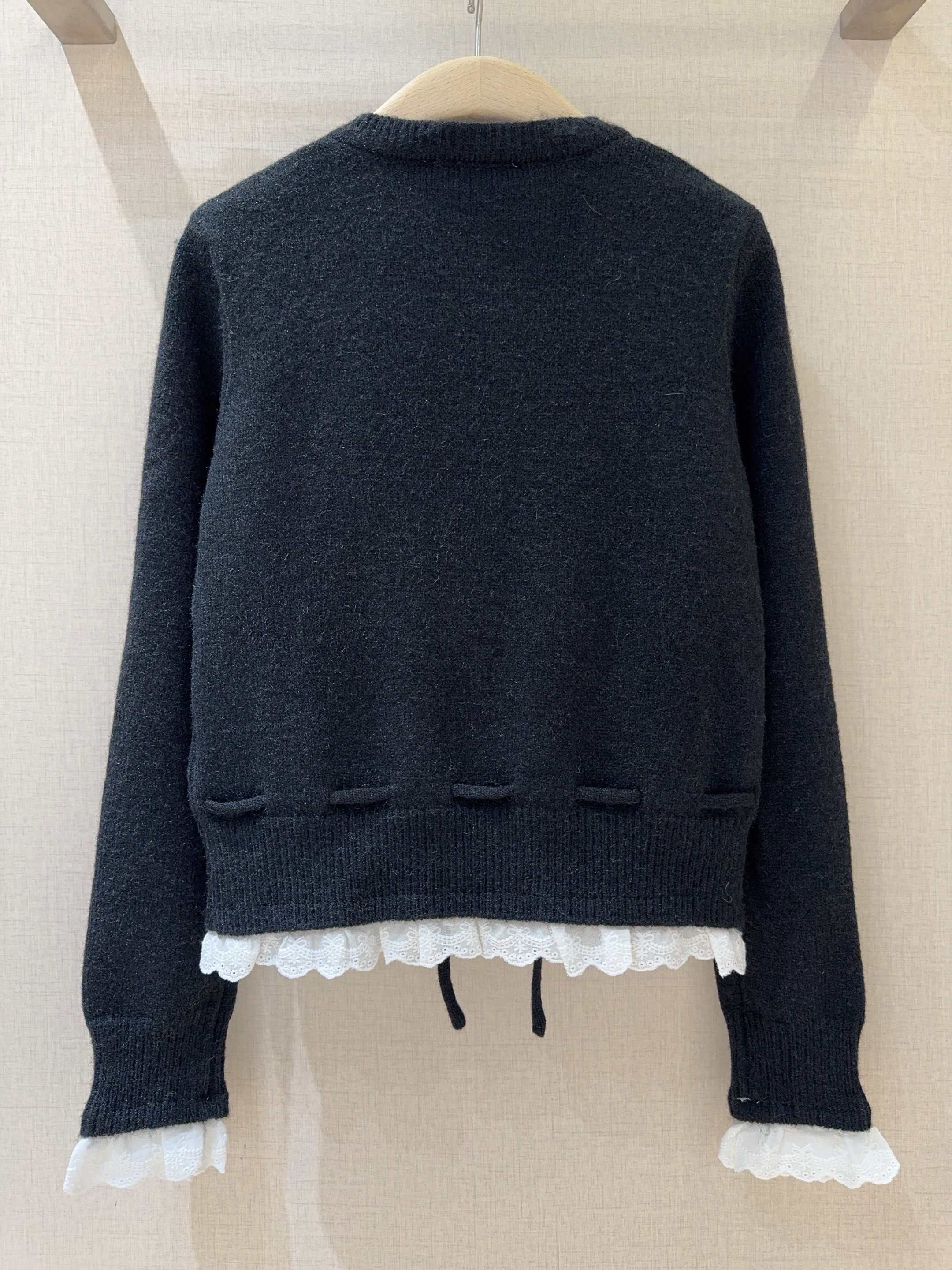 Round neckline with single-row button design, hem and cuffs are adorned with white lace trim, enhancing the sweet vibe. Drawstrings on both sides of the hem allow adjustable tightness for different styling effects.