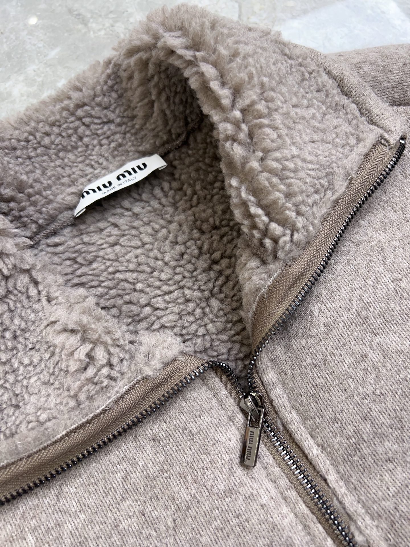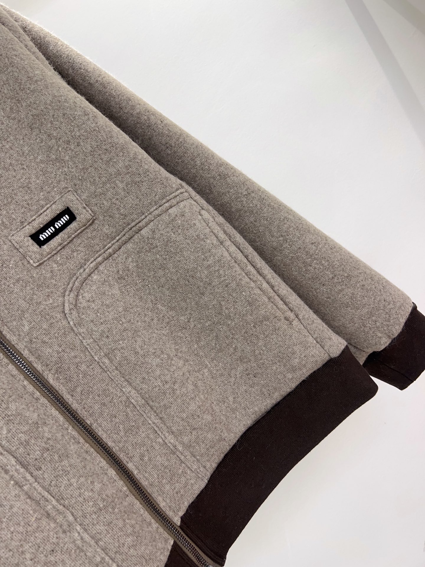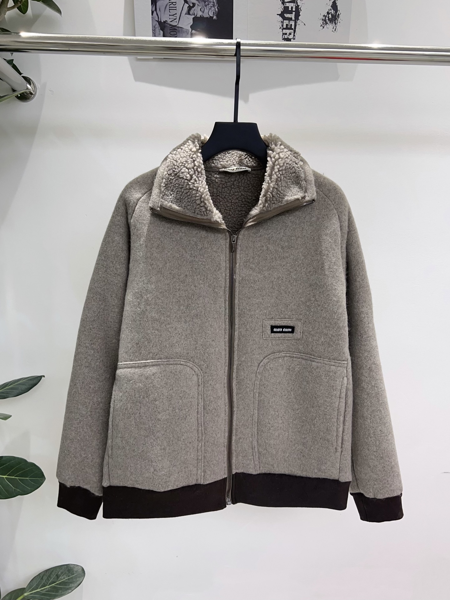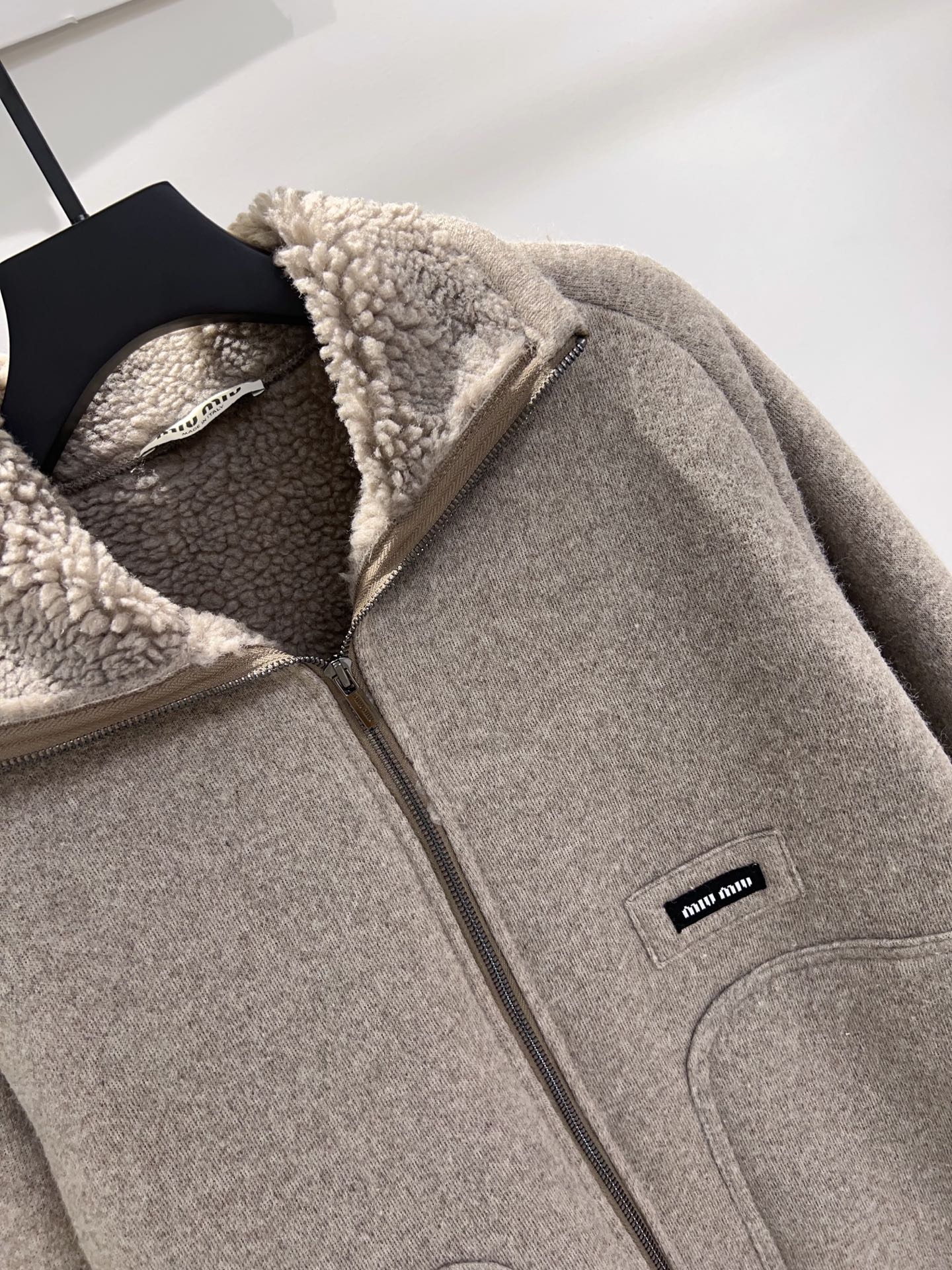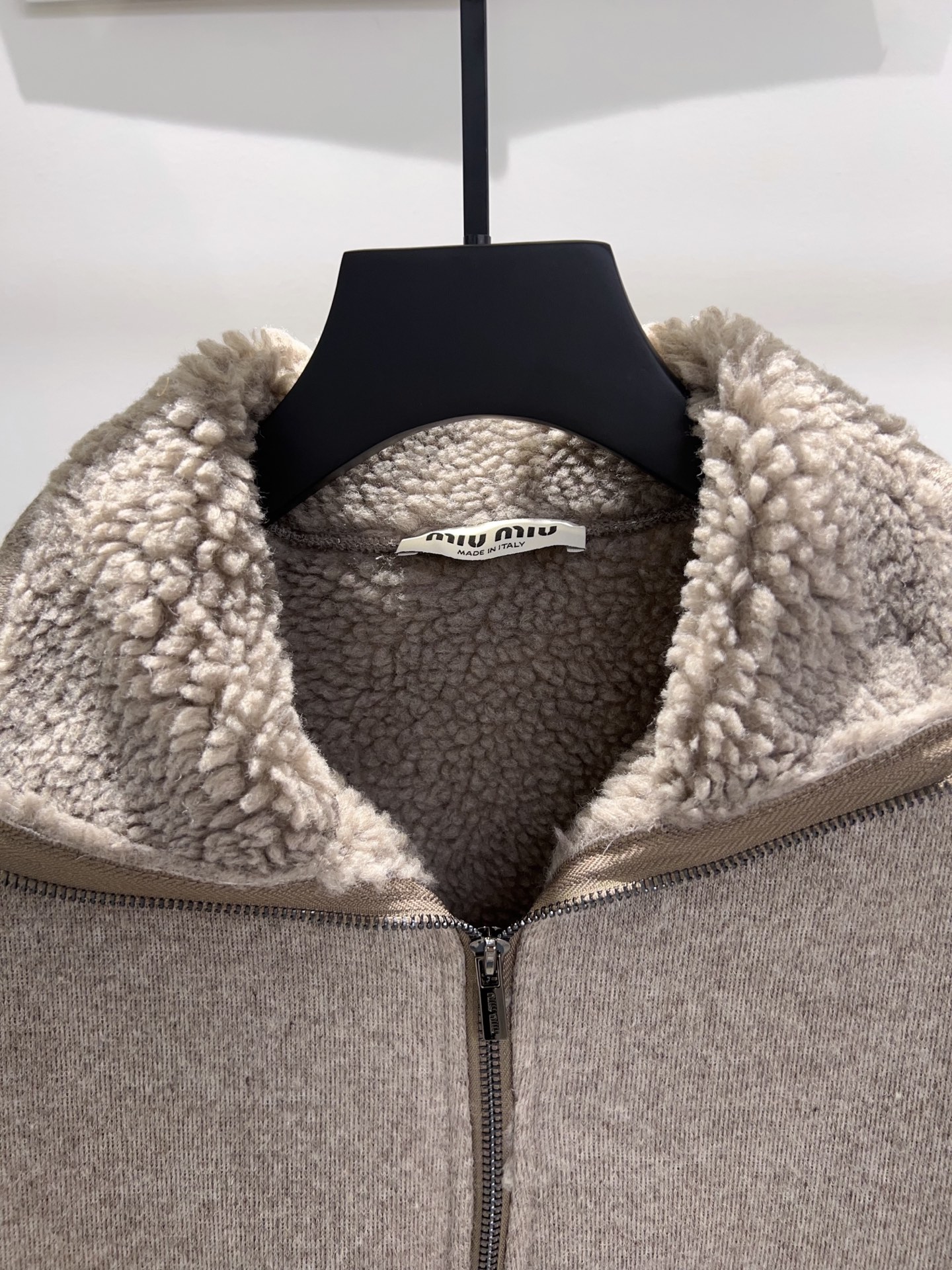 Miu 2025 Autumn/Winter New Lamb Wool Blend Outerwear! Featuring a retro rich-girl style, with dark brown lamb wool collar, super soft texture and warmth. Practical and detailed, a must-have for autumn and winter outfits. Pair with plaid skirts or high-waisted pants to easily achieve a high-end vibe, suitable for both work and casual occasions. Sizes S, M, L