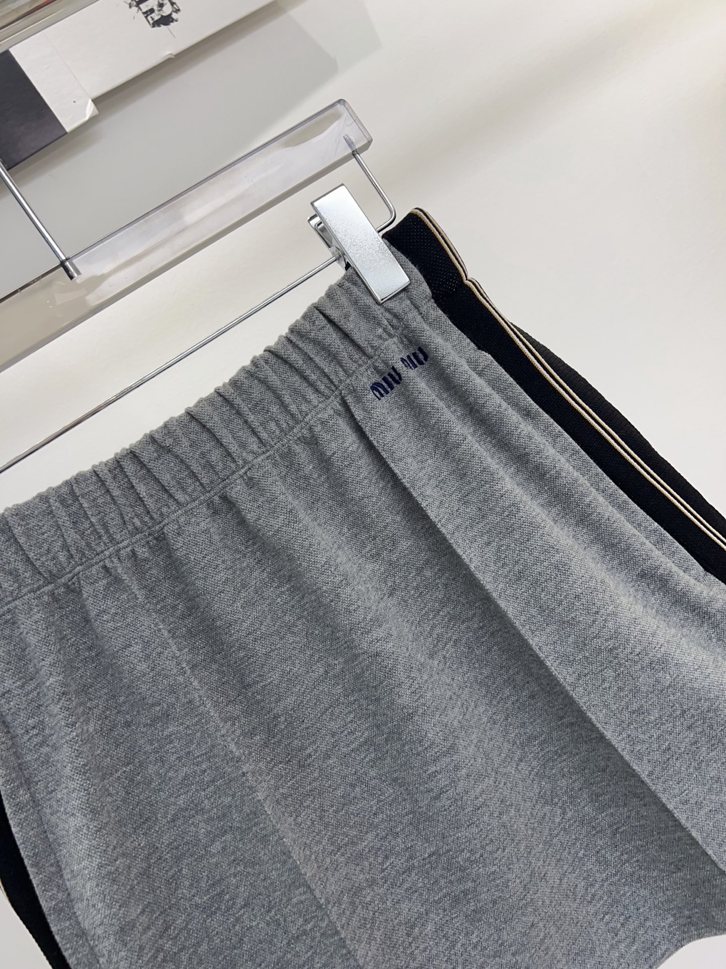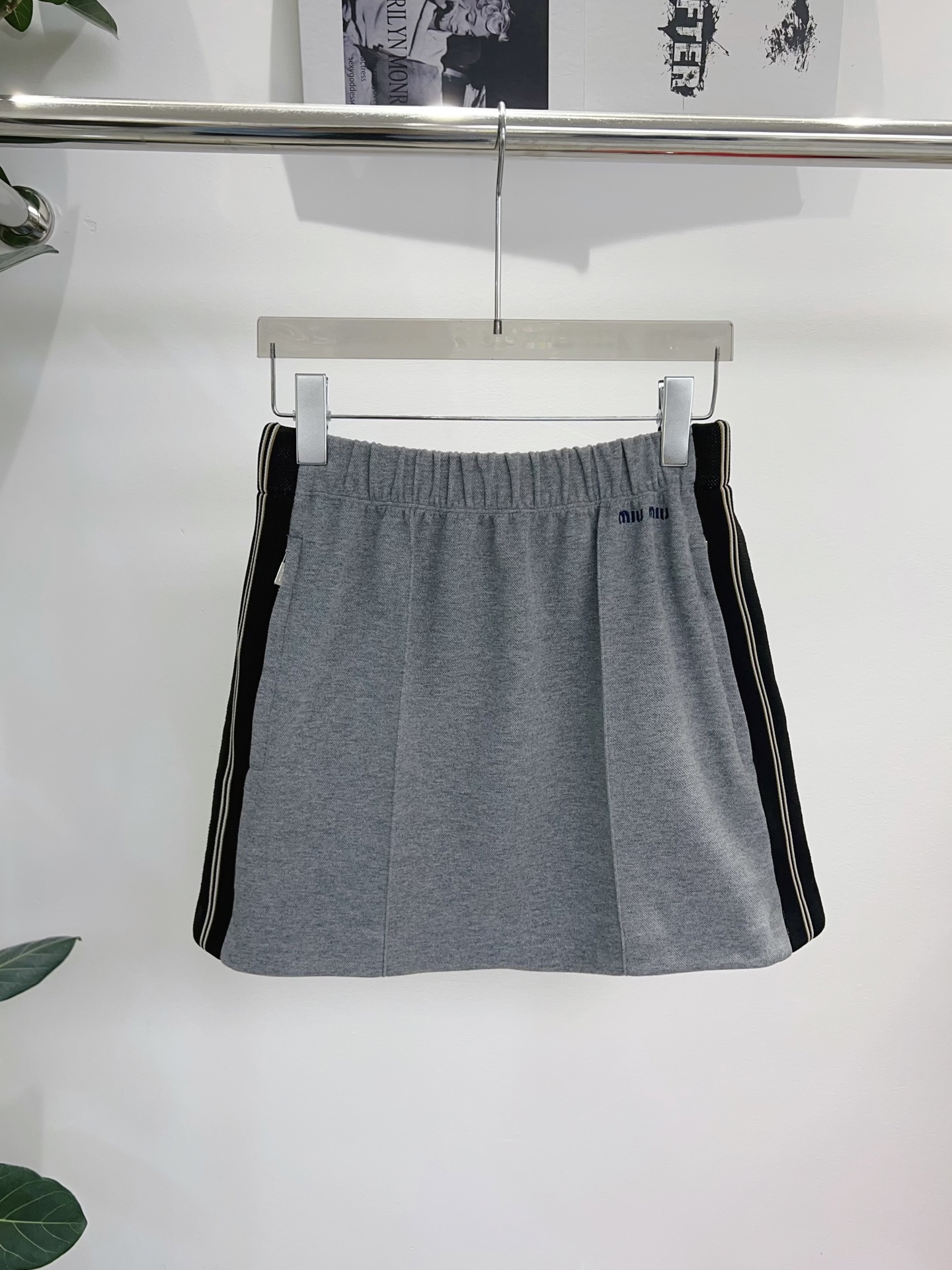 Miu M* 25/New Sporty Skirt! Gray cotton fabric with black stripes, simple yet full of energy! Elastic waistband, super versatile for daily wear, with small pockets, easily achieve a youthful and vibrant look~SML