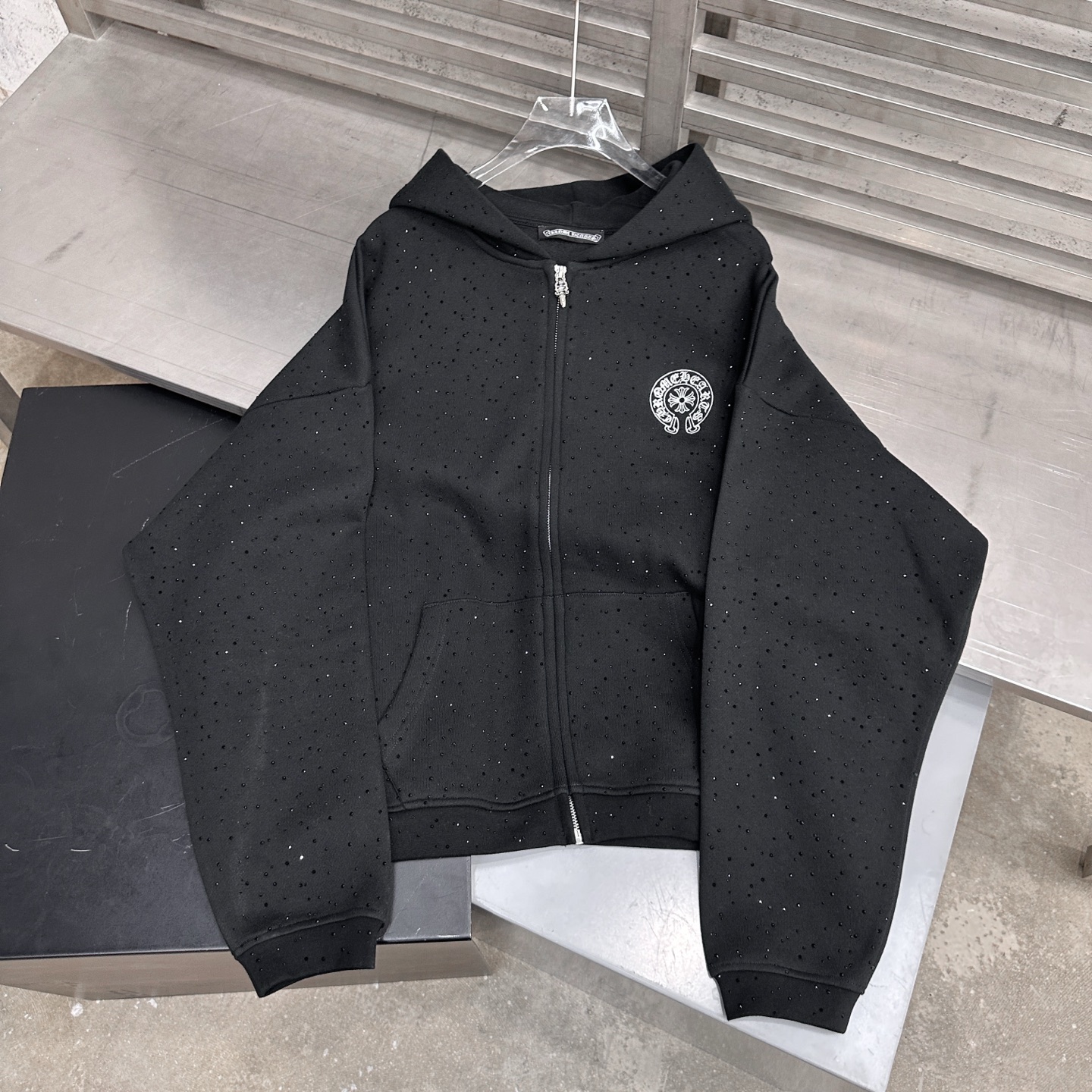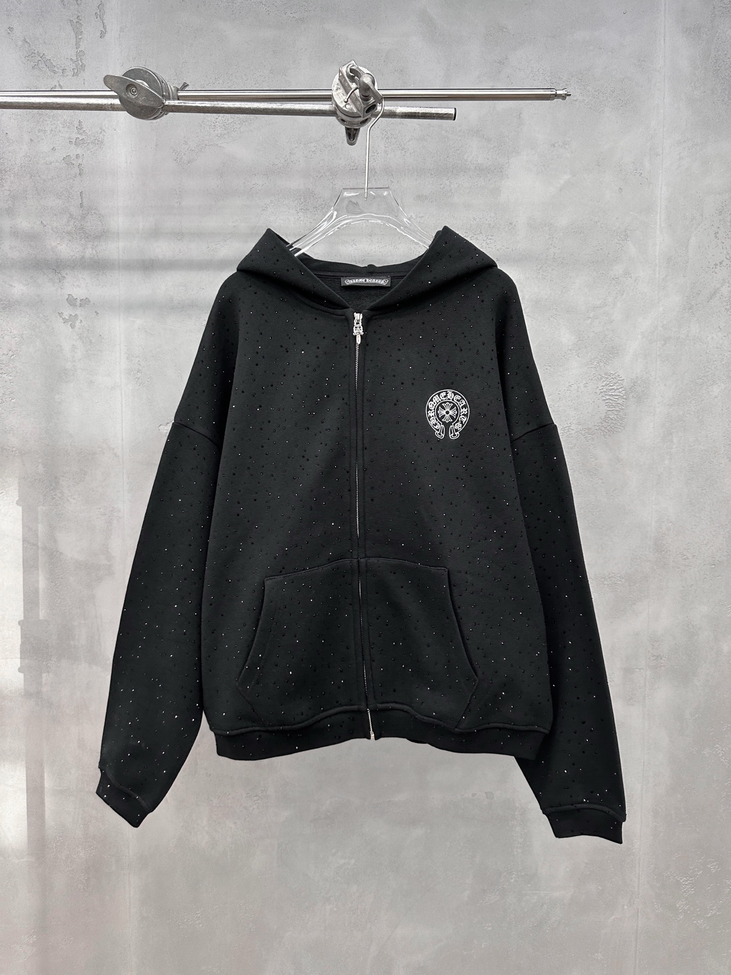 380 Chrome Hearts | New hoodie cardigan, classic silicone glitter print logo, full garment rhinestone process, casual fashion, sizes S M L