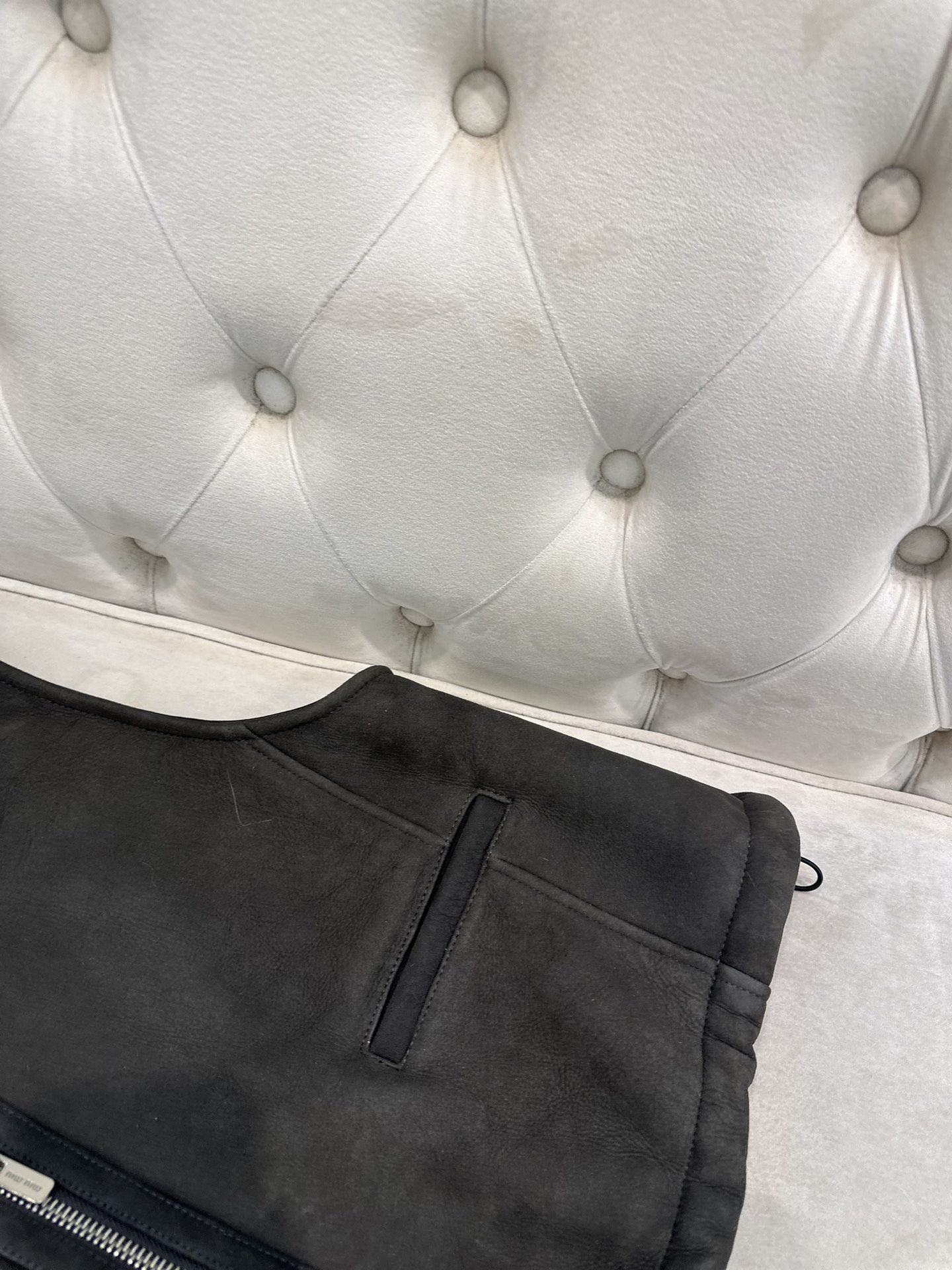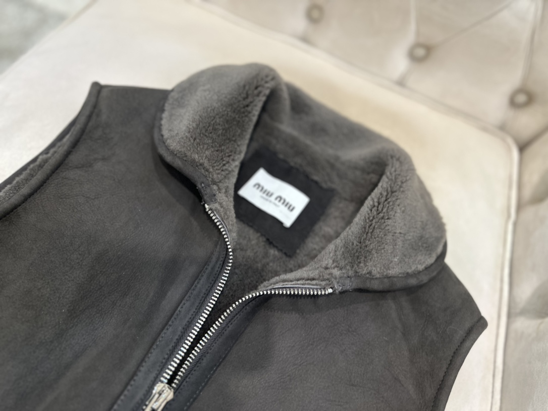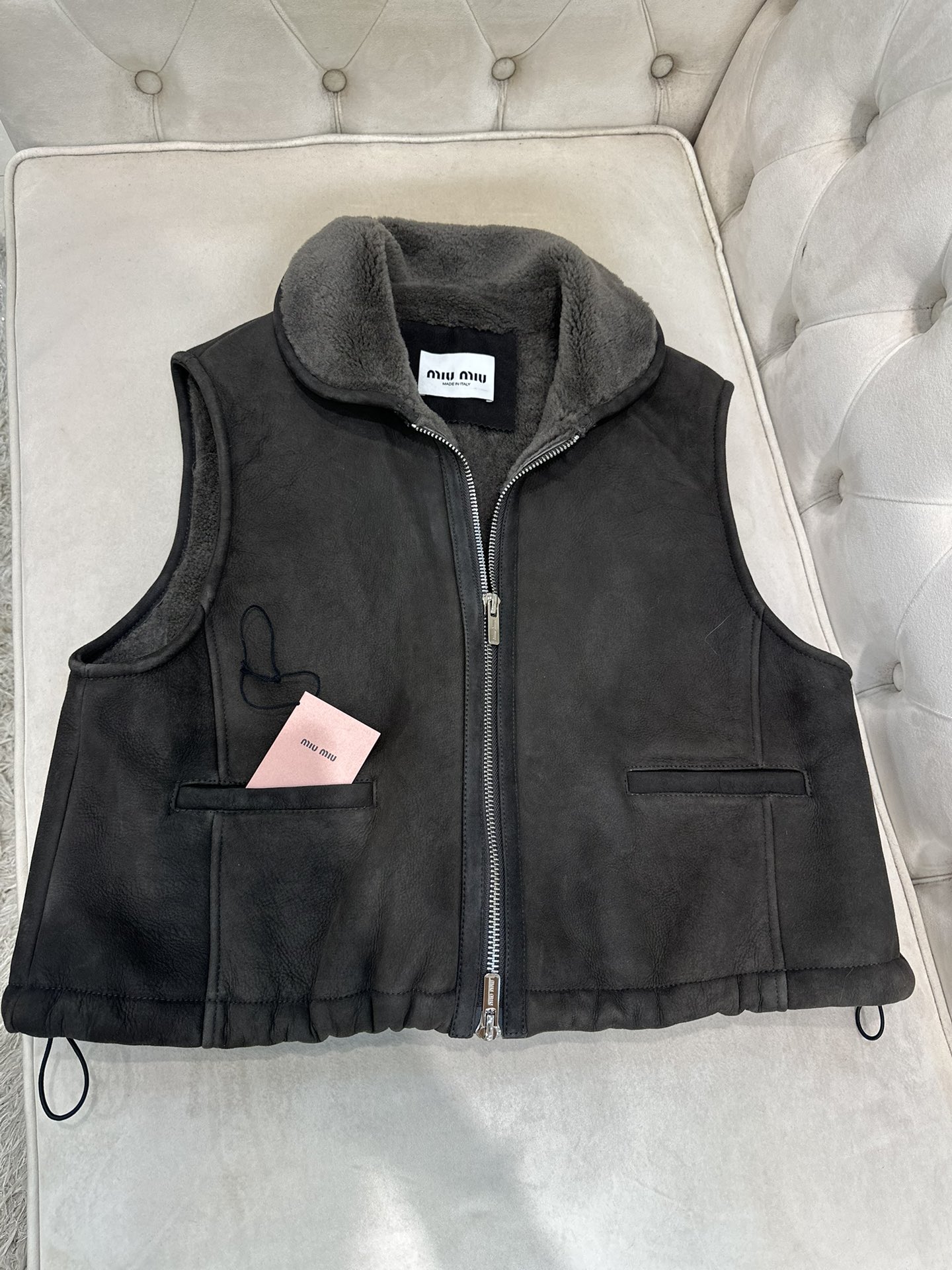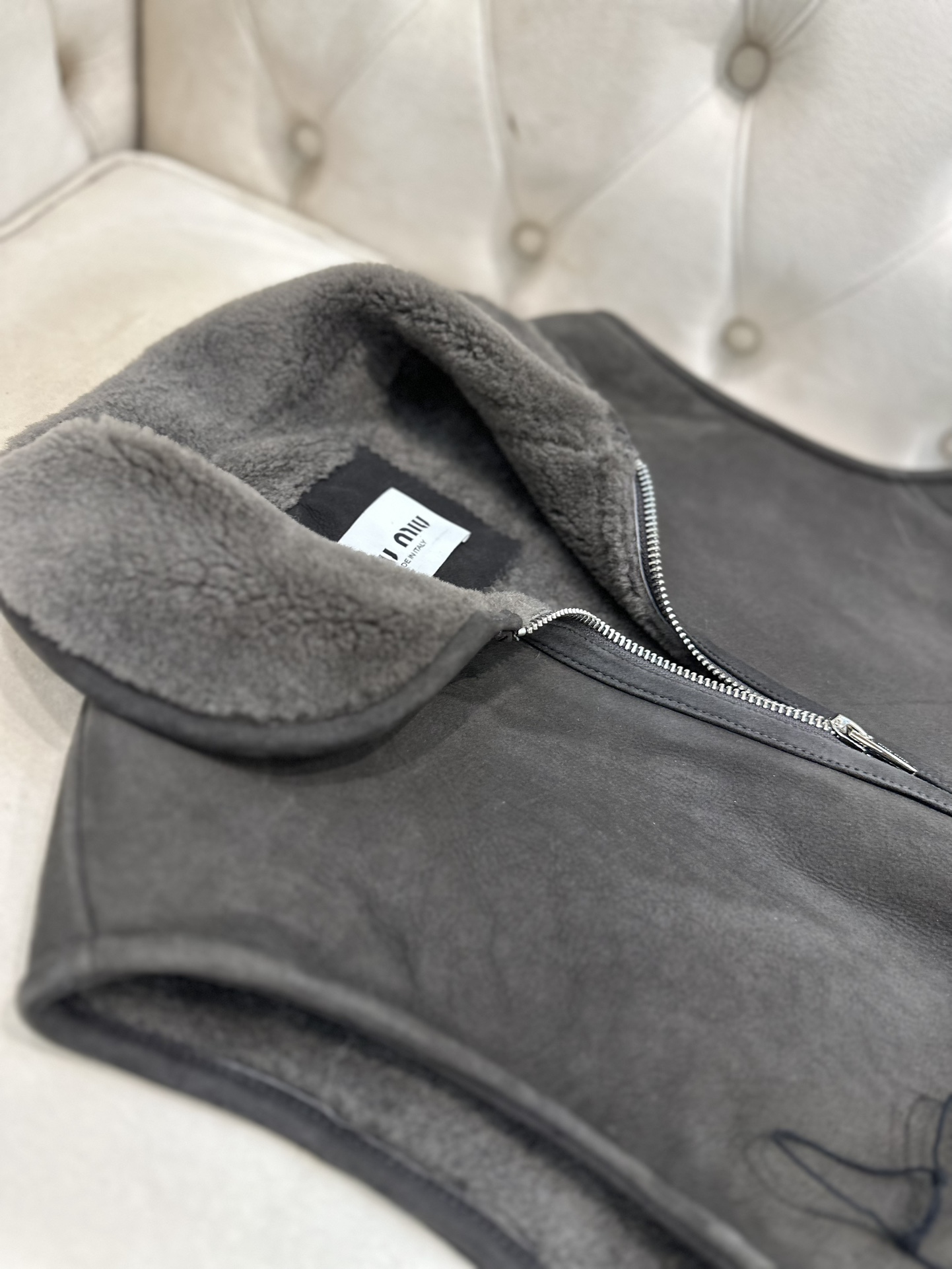 Miumiu 2025 AW German imported suede shearling vest with Peter Pan collar. Sizes S/L.