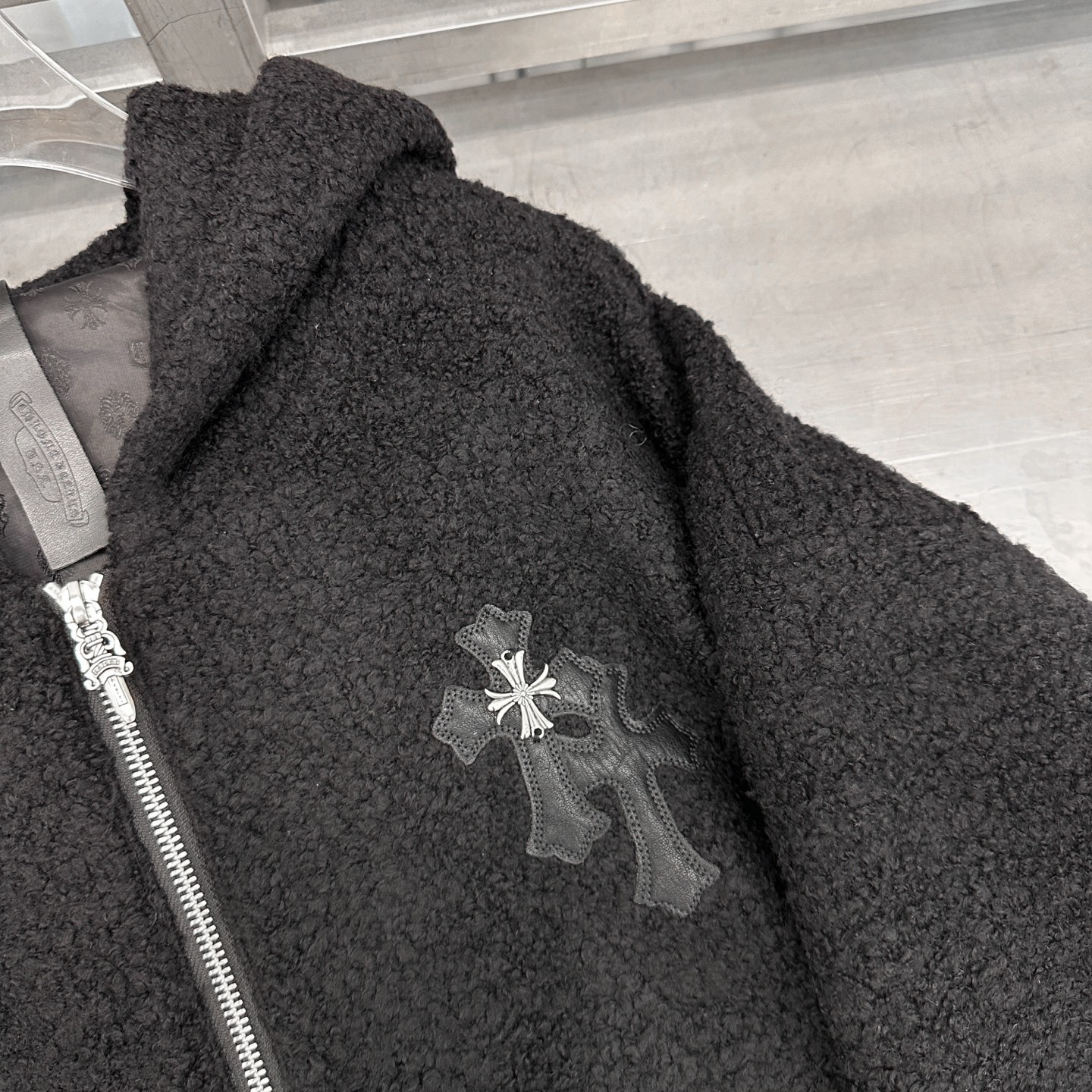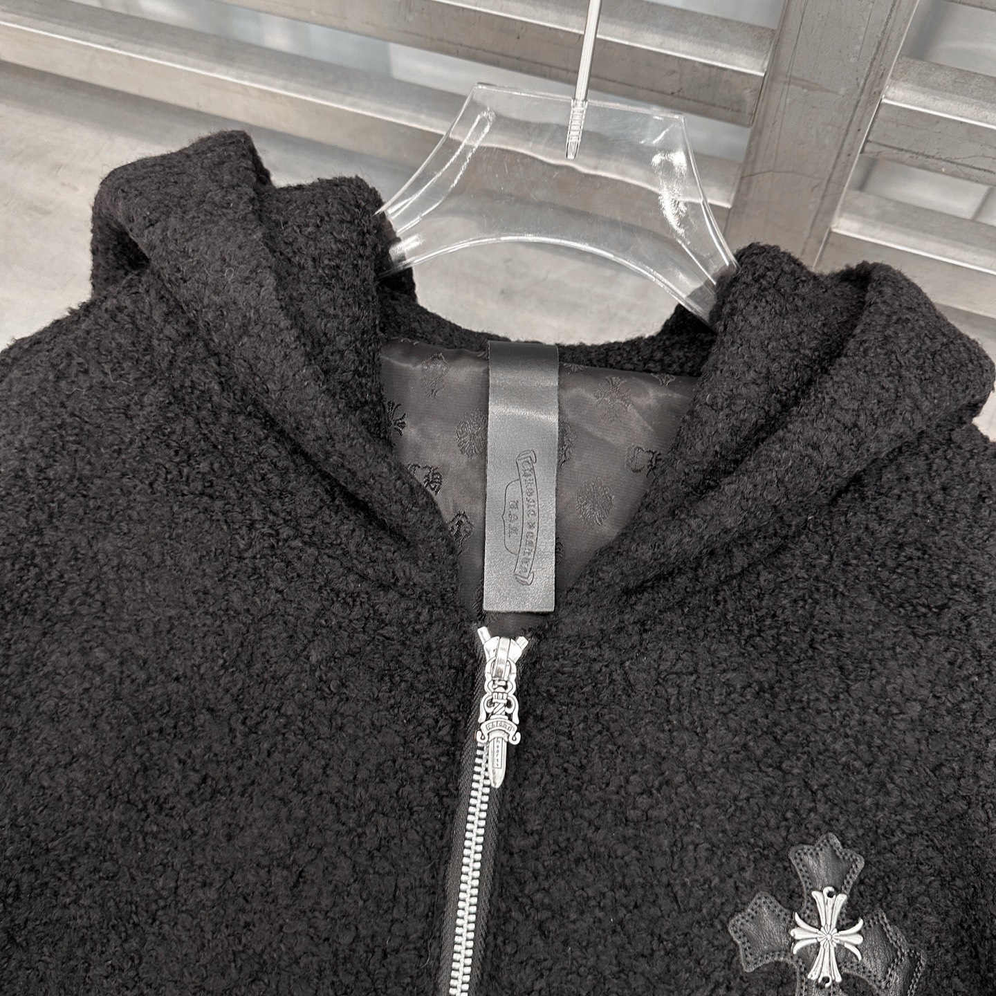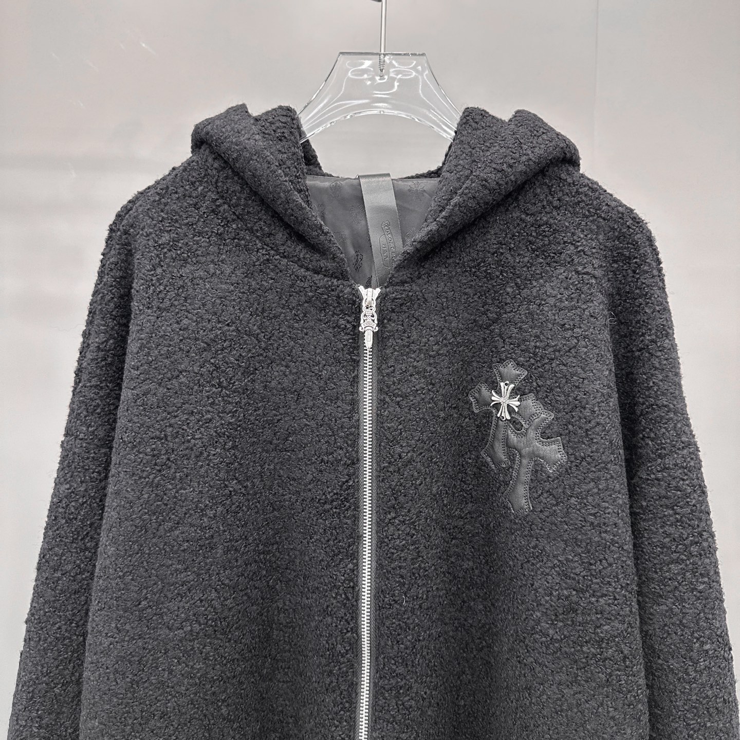 620 Chrome Hearts | New casual jacket, imported sheep wool fabric with brand-customized jacquard lining, hand-stitched cross logo, unisex, sizes S/M/L