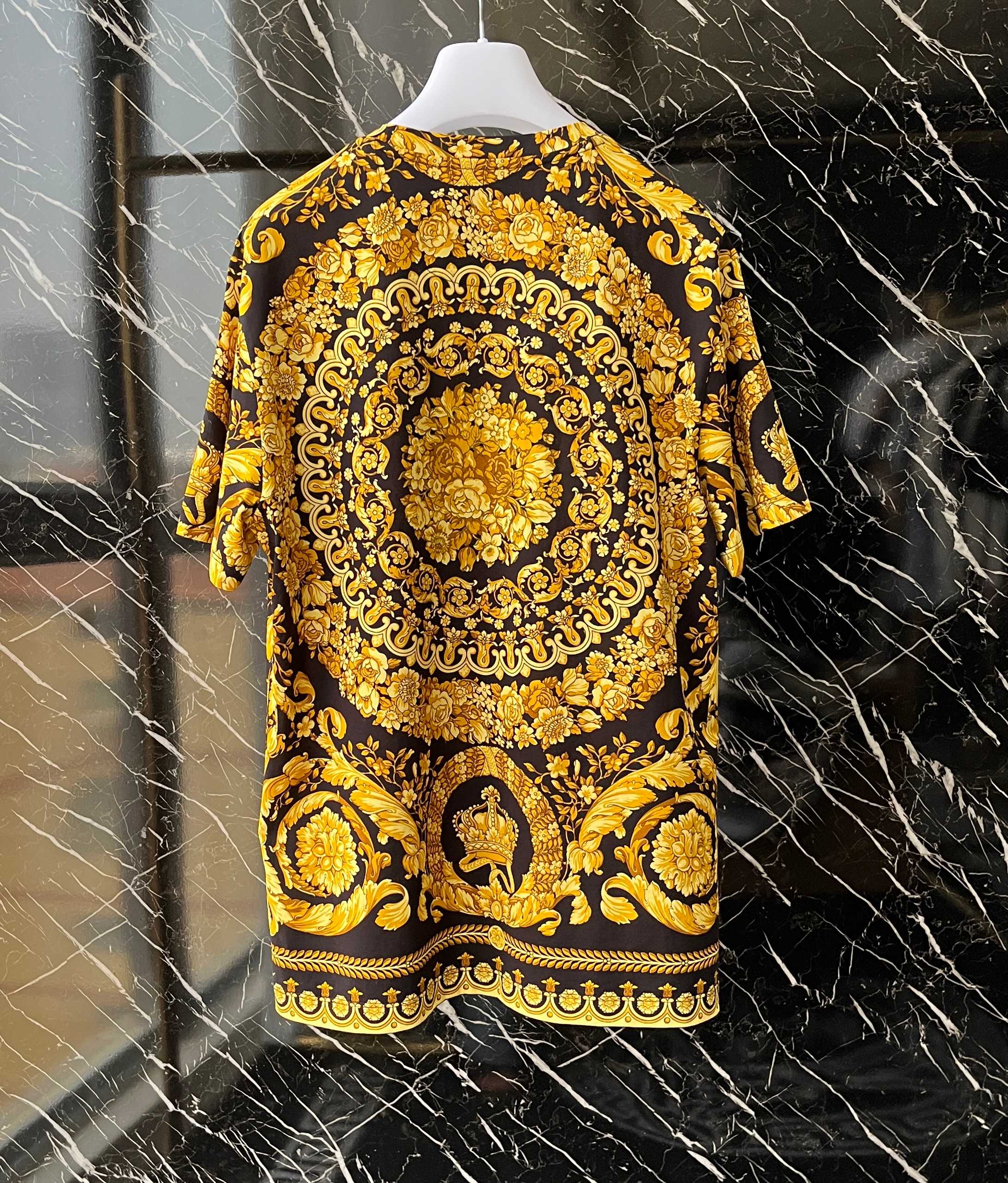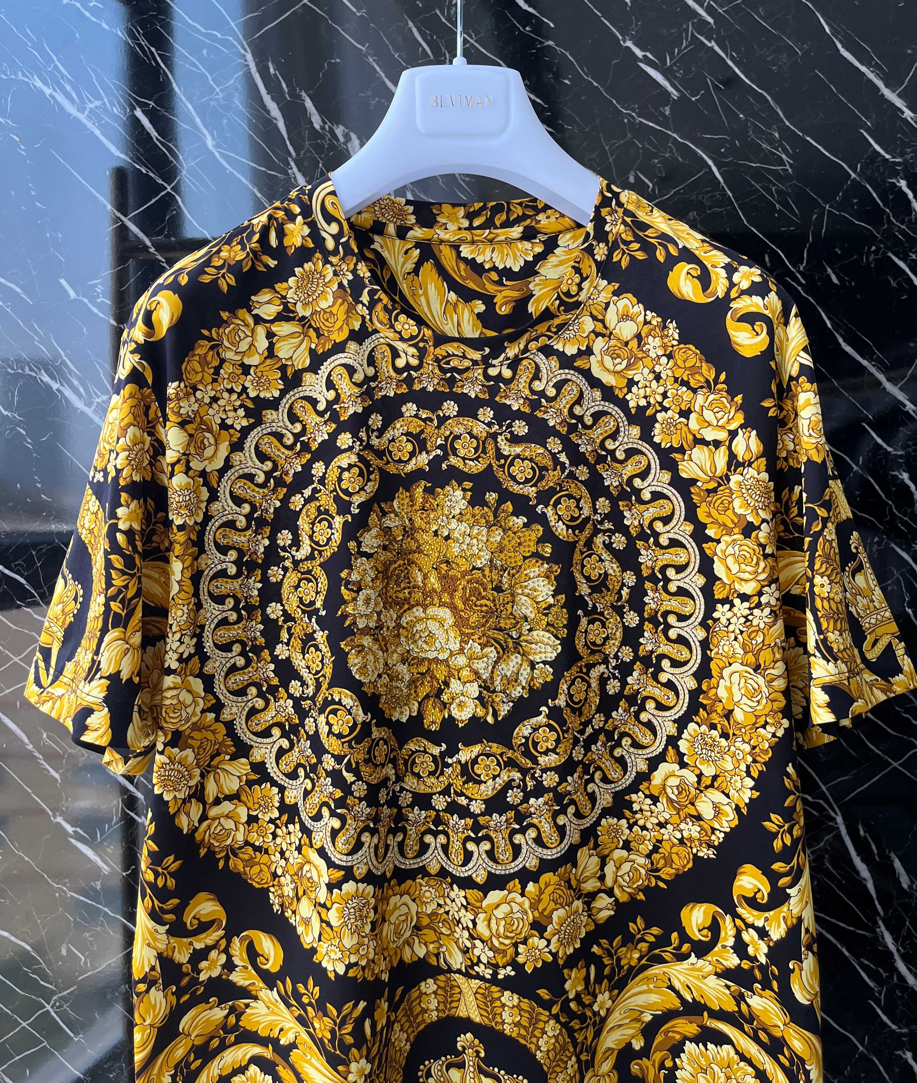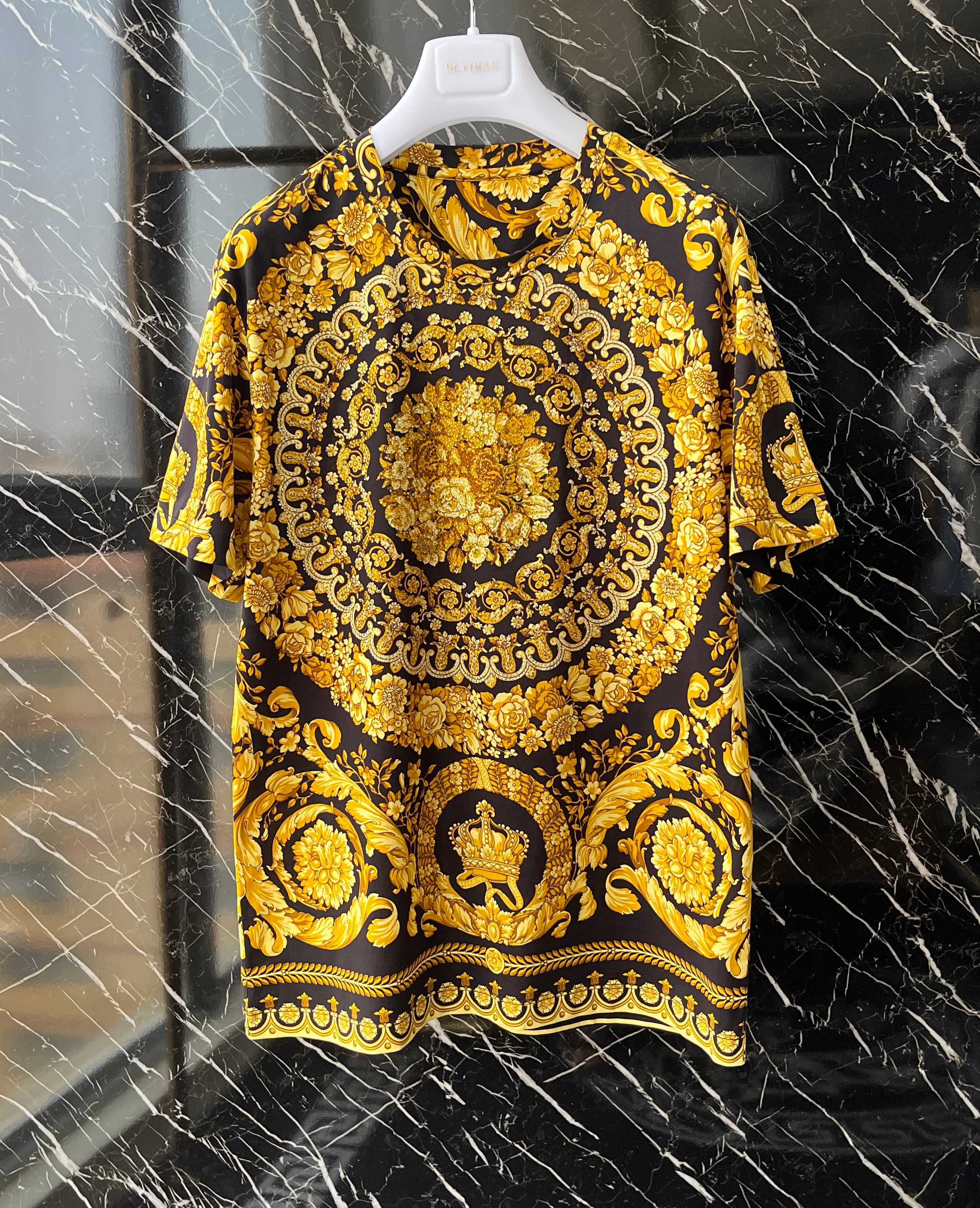 Original Title: VS Black Gold Baroque Print Diamond Men's T-Shirt