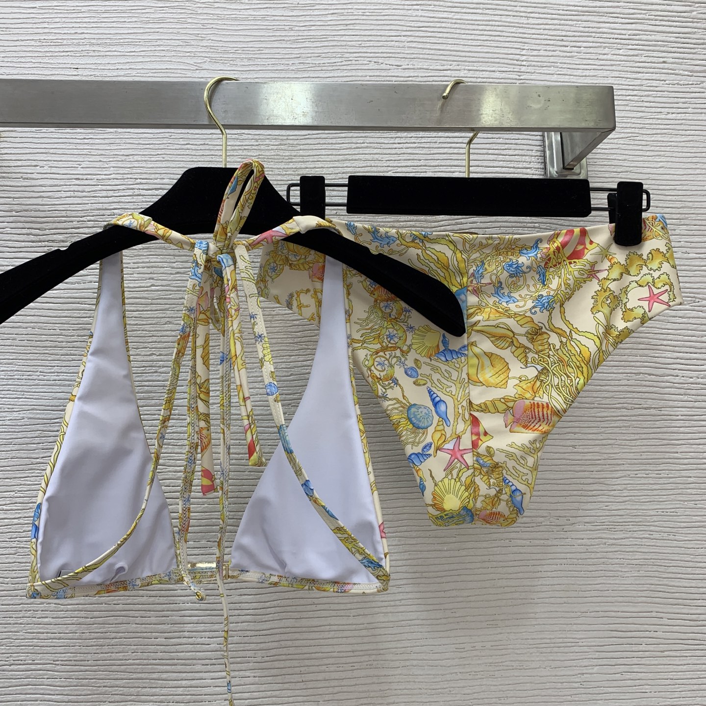 Style Number D25080543 VERSAC New Style Medusa Brooch Clasp Accessory Decorative Sexy Lingerie Set! Strap Halter Triangle Cup Bra Underwear + Triangle Panties Bikini Separate Swimsuit! Essential for Seaside Vacation Hot Spring Pool! Blue, Yellow, S M L XL