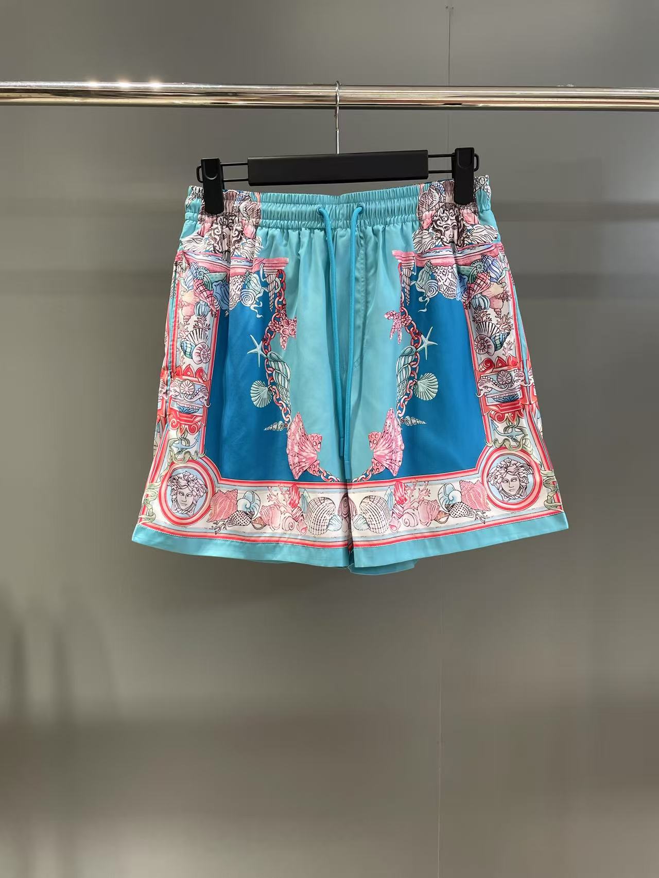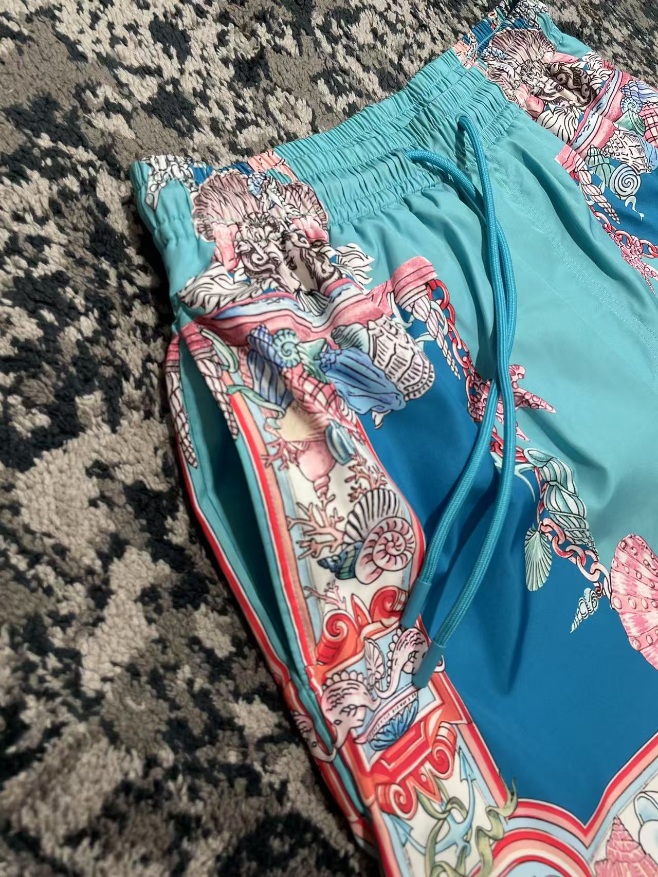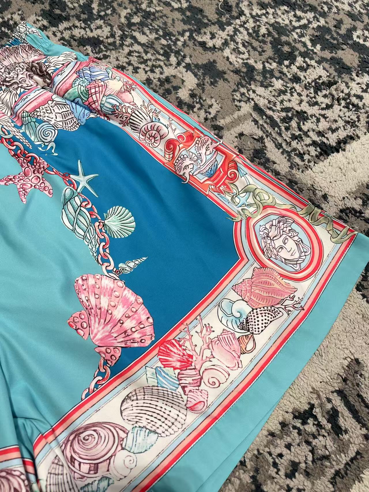 Knee-length swim trunks featuring the classic Coral Theatre print, designed with a drawstring elastic waistband.