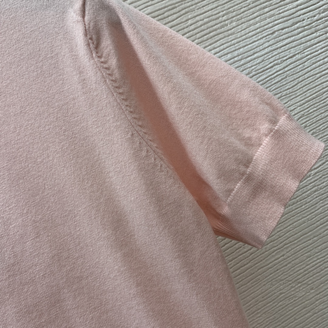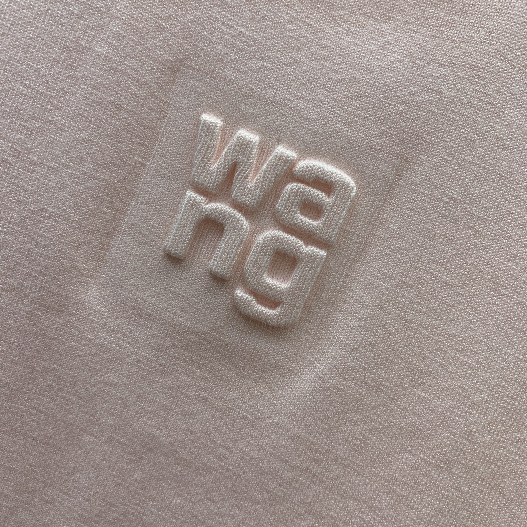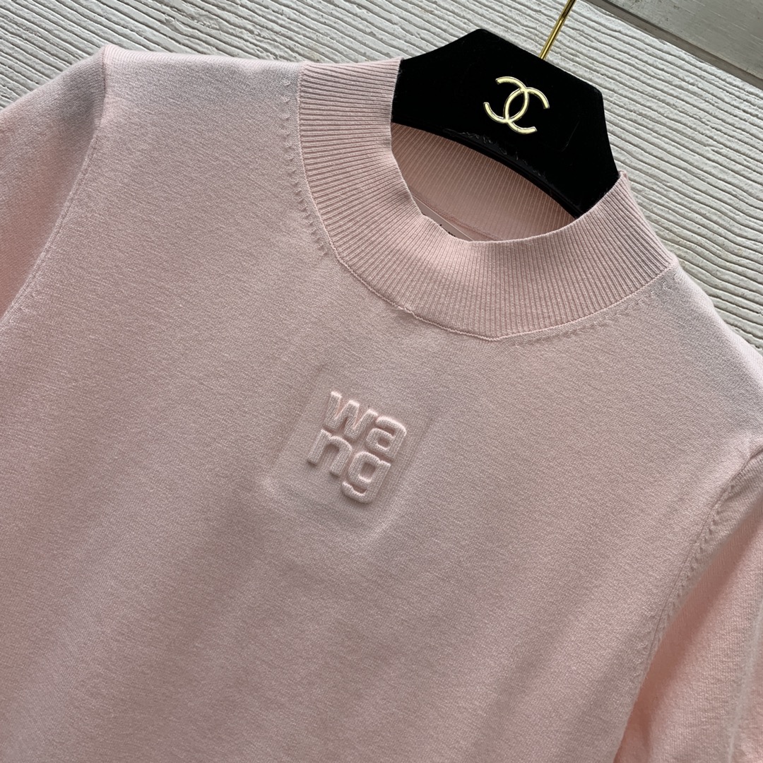 Style No. D24061668 Alexander Wan* King's new style, chest letter logo 3D embossed small emblem, slim fit, slimming, pullover short sleeve knitted top! Pink, Black, SML (Size M: Bust 76, Sleeve Length 21, Length 49)