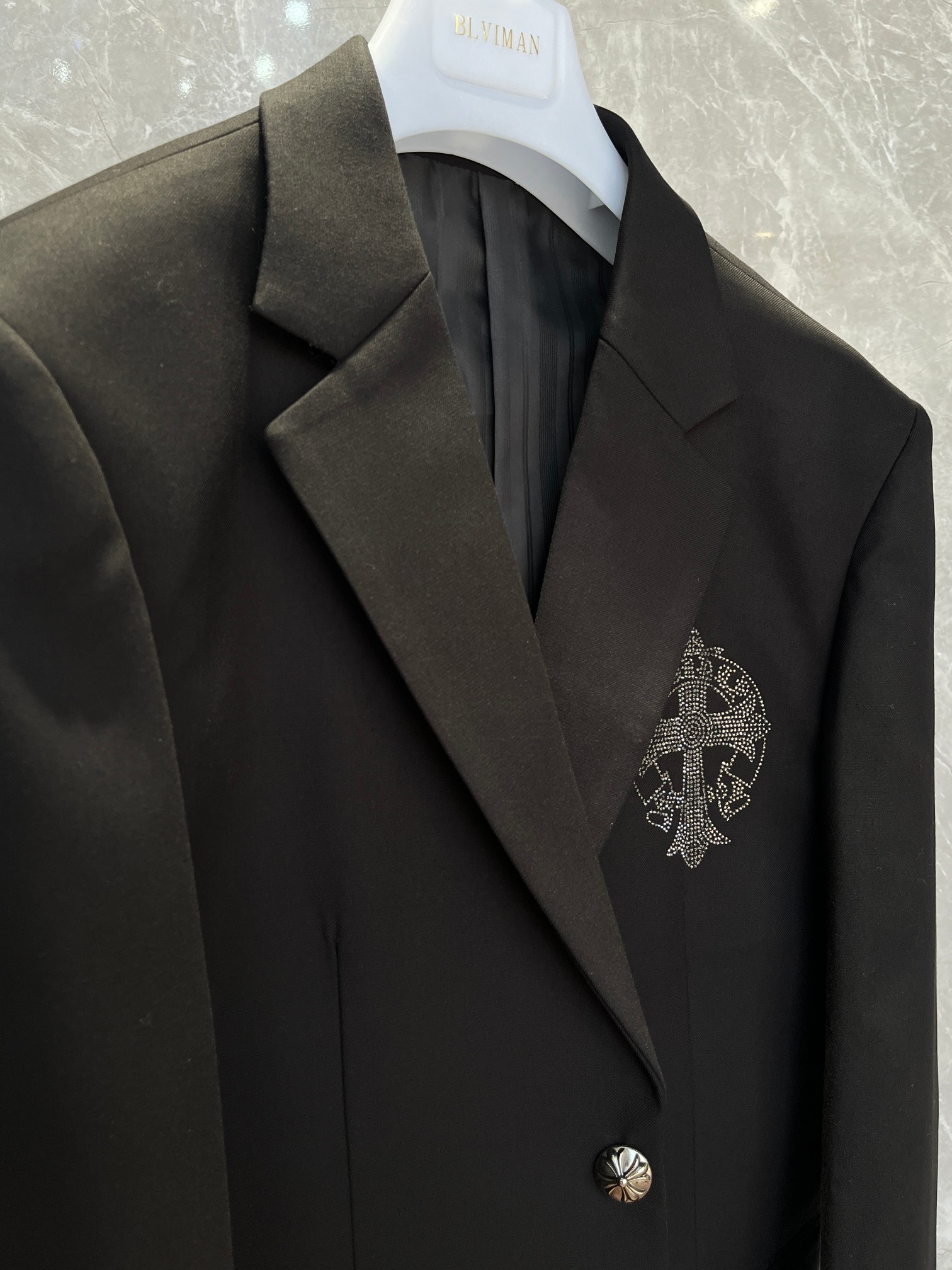 Model P570 2025 new cross crystal-encrusted blazer. Sizes: 50 52 54 56 58