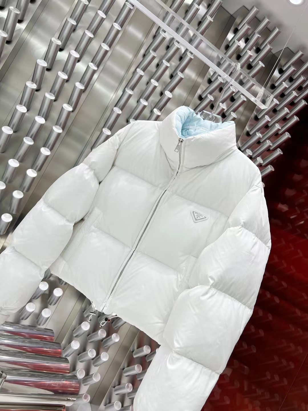 Guangzhou high version Prada short style autumn winter new down jacket original 1:1 customized hardware accessories all imported original customization welcome to compare with official stores absolutely high quality using top grade 95 duck down super soft filling volume fluffy and full super heavy duty fabric workmanship is excellent👍 perfect cut note⚠ fabric is super comfortable exclusive style not market goods women's
