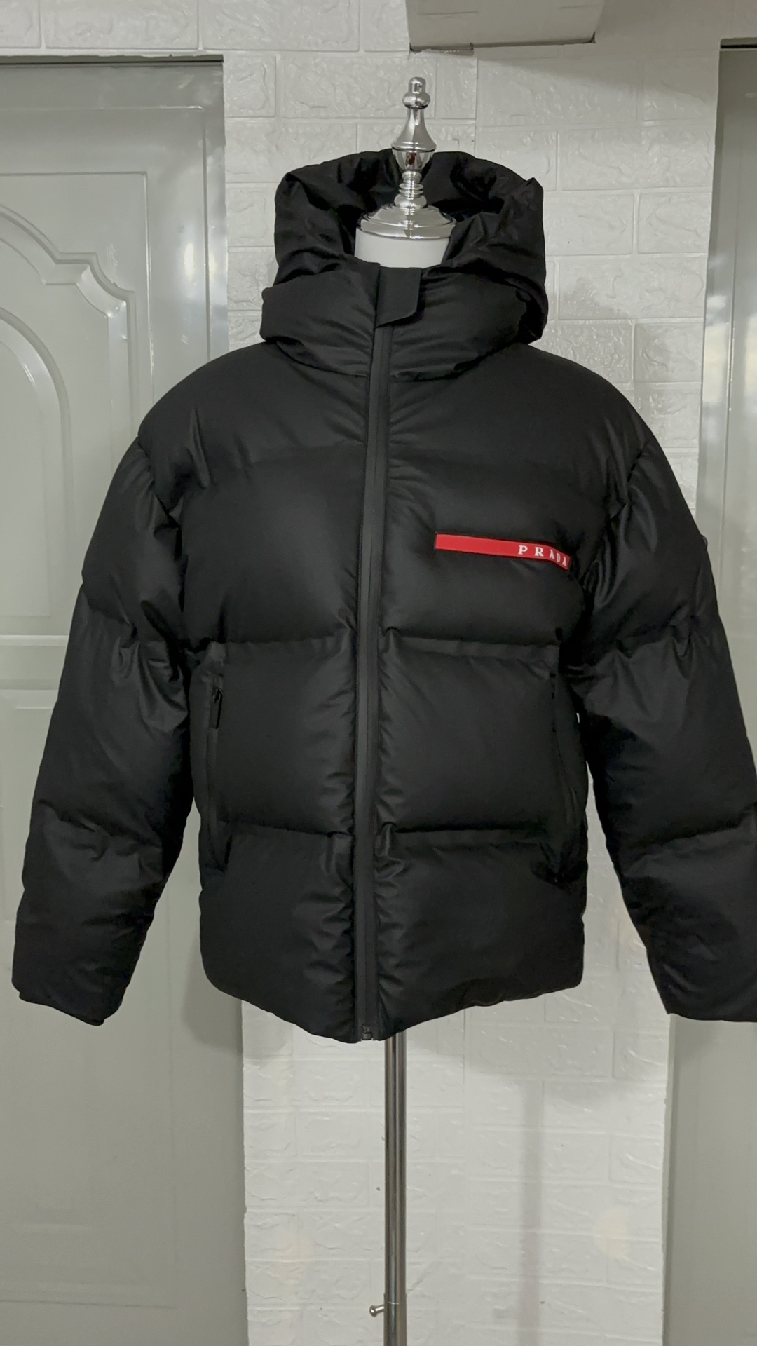 Premium Down Ultra-Fluffy PRADA Prada Black Tech Tape-Seam Down Jacket (High Version with Tape Seam) Winter New Arrival, High-End Customization! Beloved Series for Lightly-Mature Business Style, Minimalist Design with 90% Goose Down. Comfortable and Stylish Fabric! Super Handsome Look When Worn, 3D Tailoring Design for High Warmth and Good Resilience. Keeps You Warm and Stylish Without Heaviness, Highly Practical and Non-Bulky, Effectively Blocks Cold Wind Invasion! Top Quality First Choice!